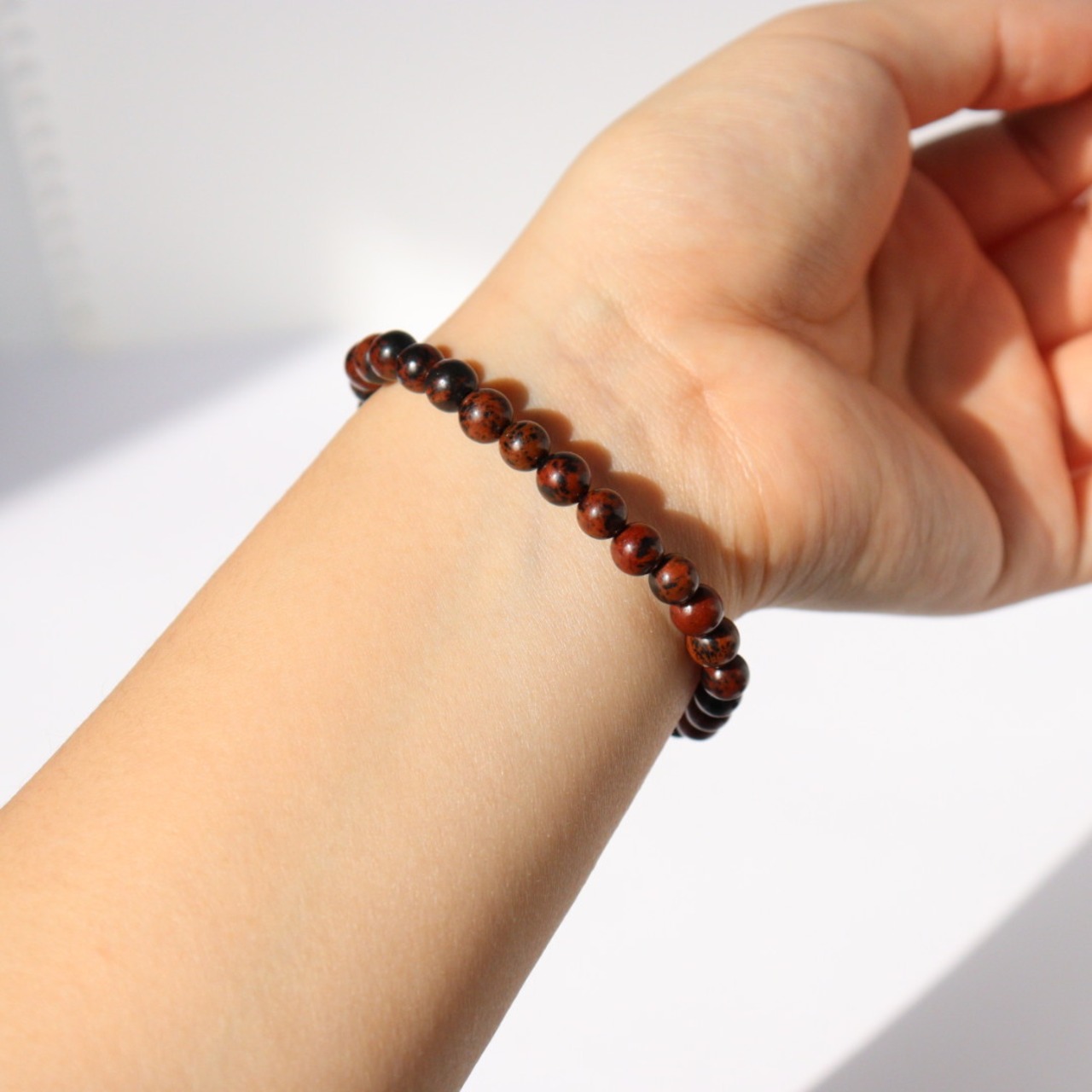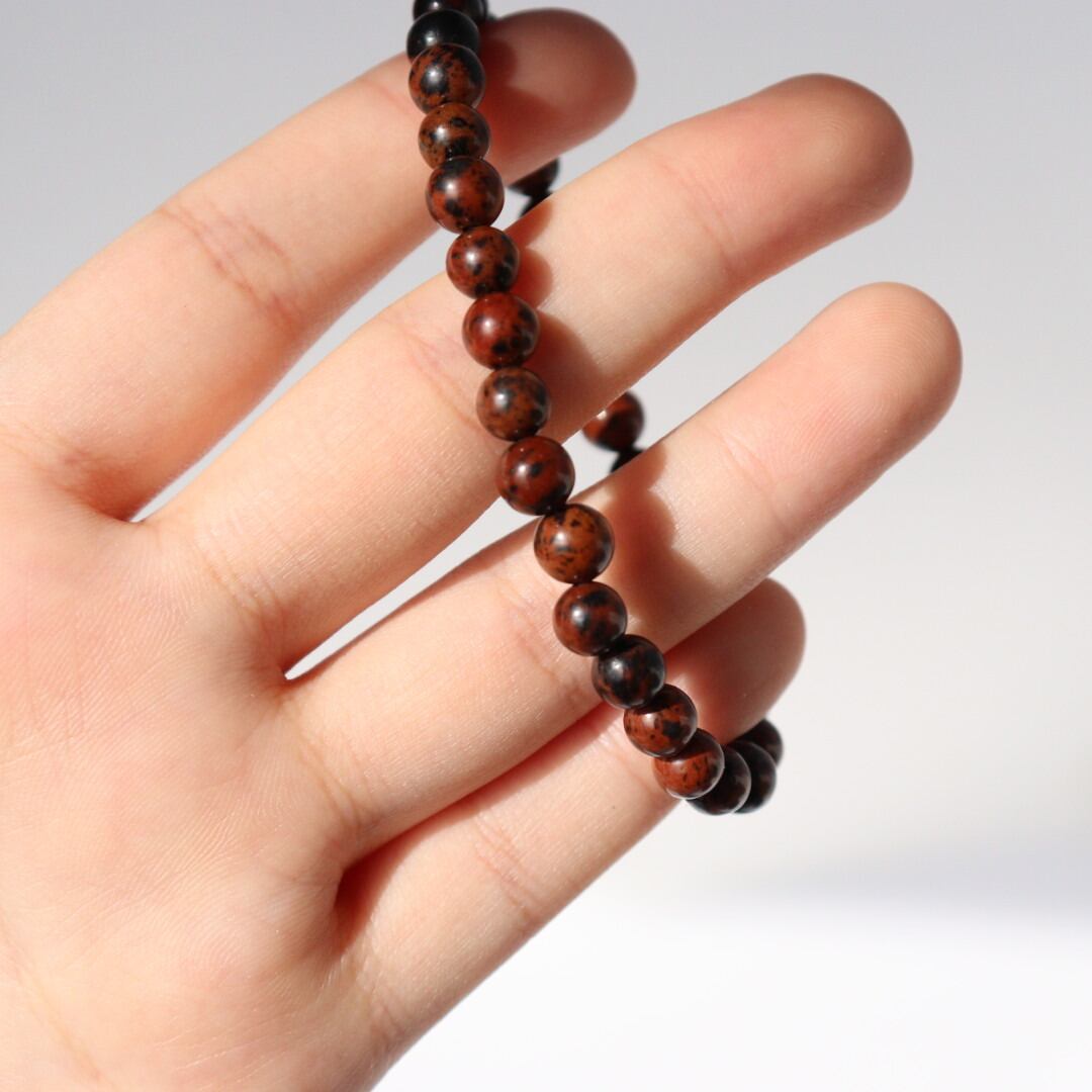 ブラックとブラウンの穏やかな模様が美しい、マホガニーオブシディアンのブレスレット。