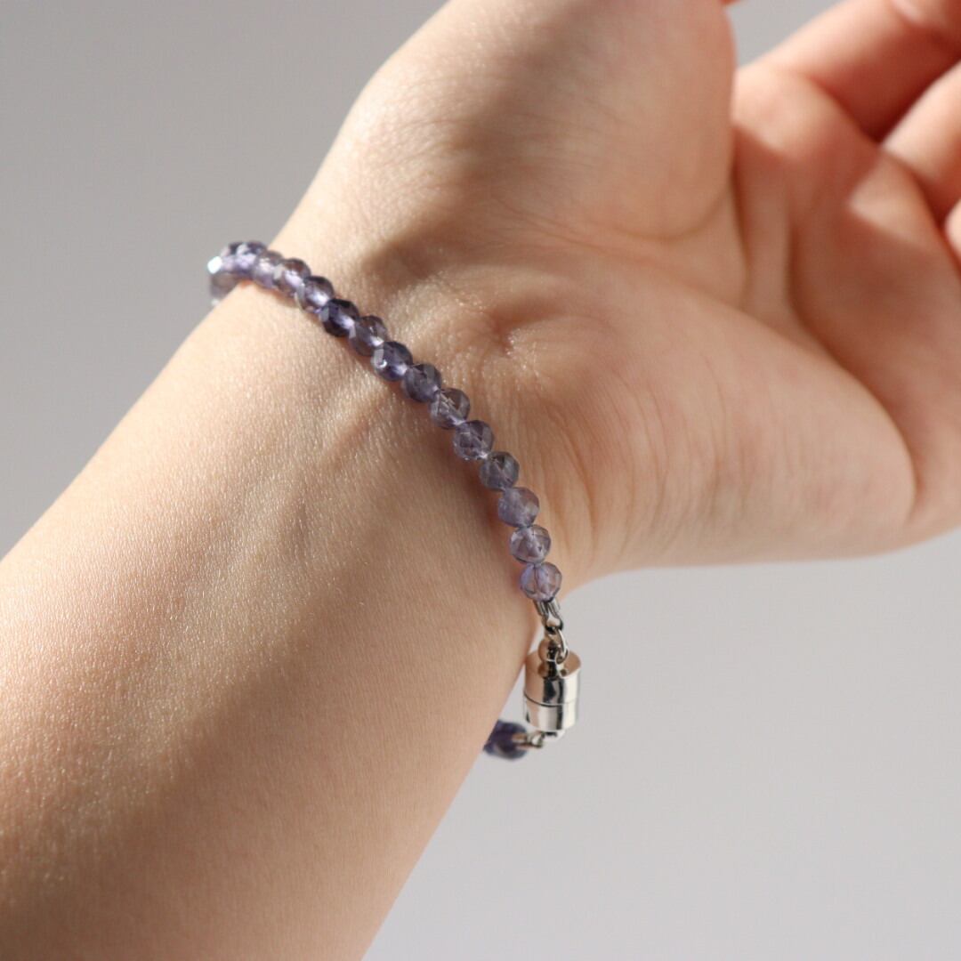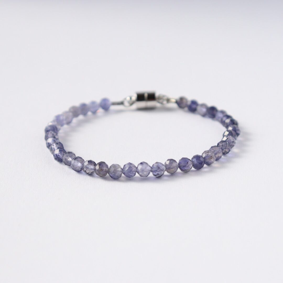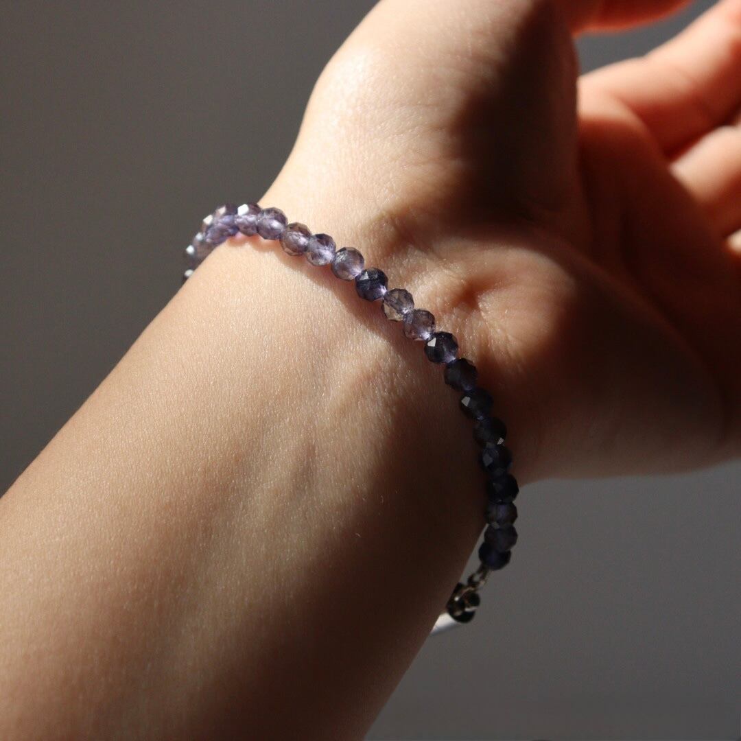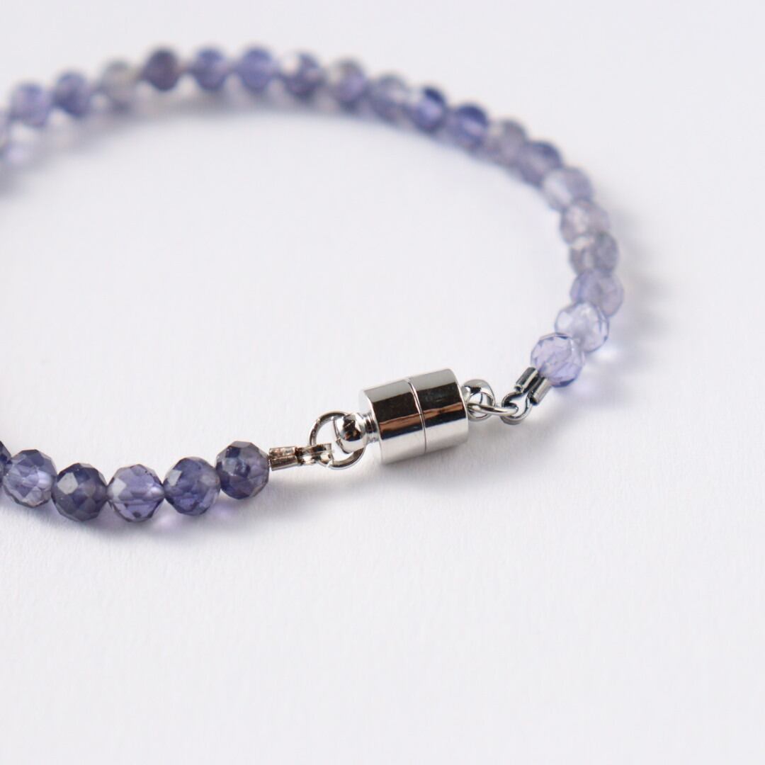 こちらは、すみれ色のミステリアスな輝きが美しいアイオライトのブレスレット。