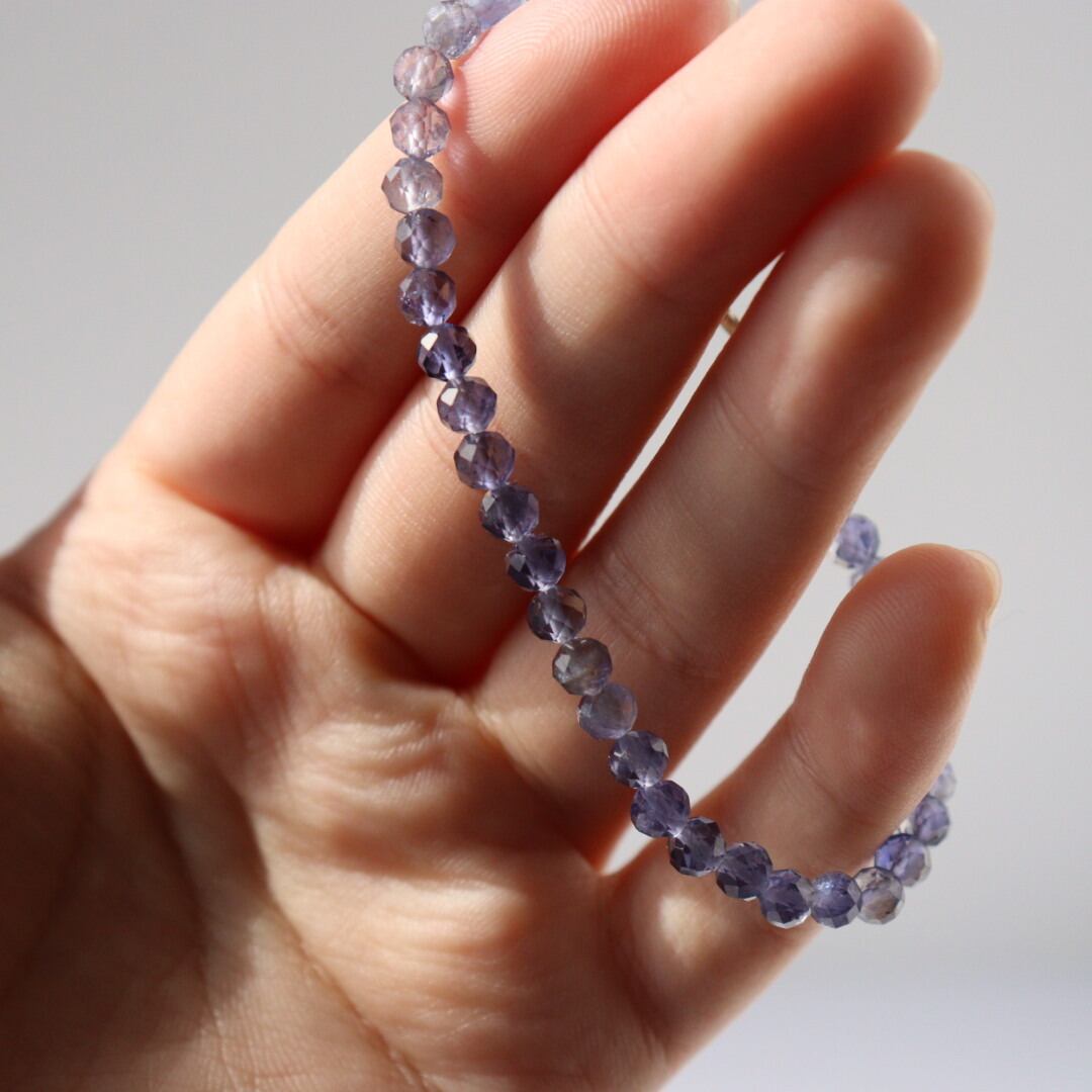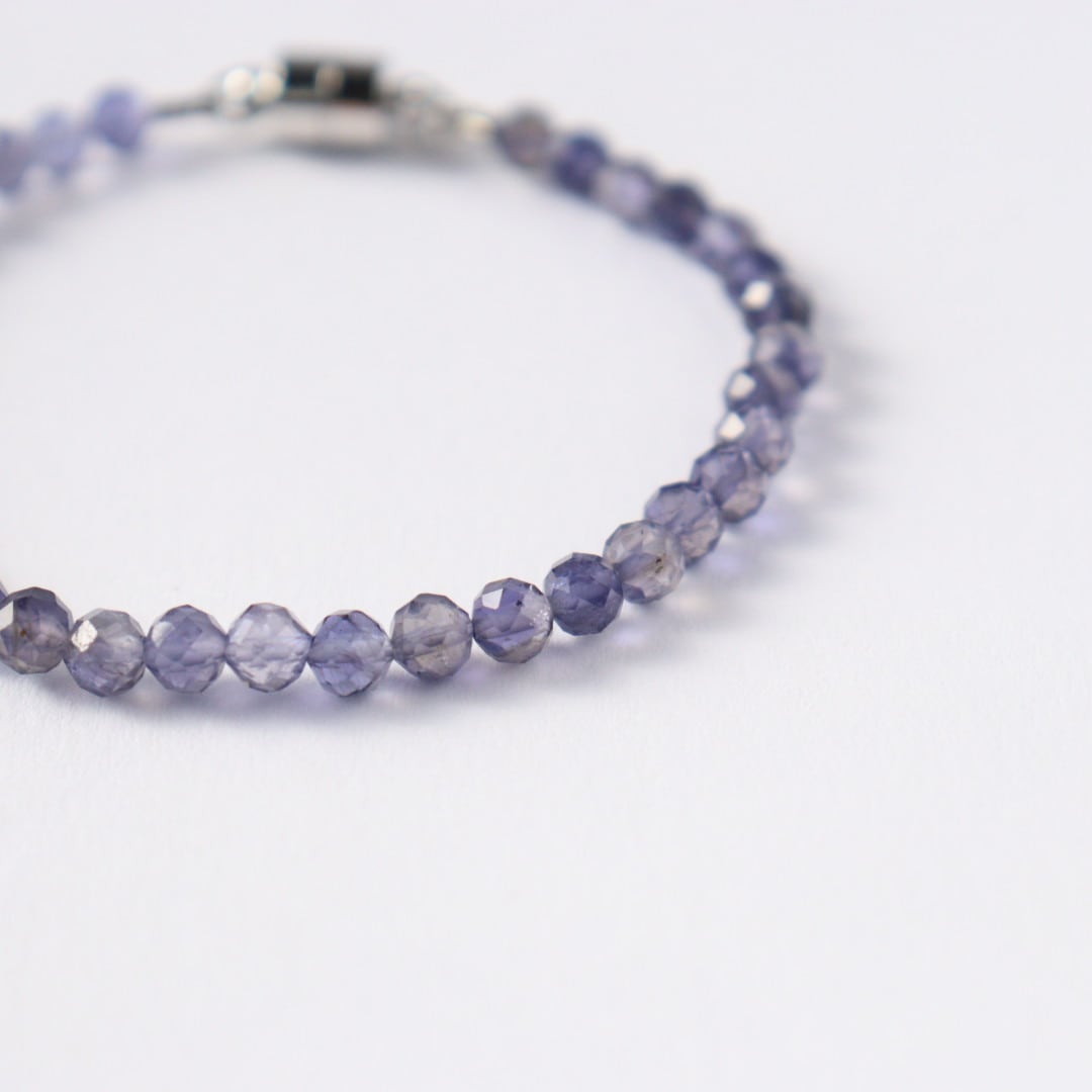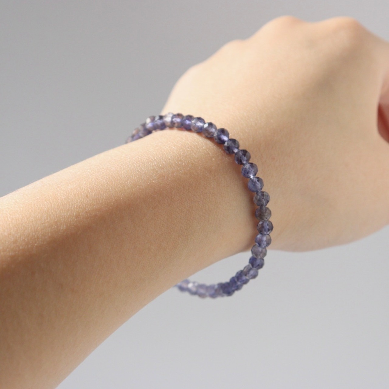 こちらは、すみれ色のミステリアスな輝きが美しいアイオライトのブレスレット。