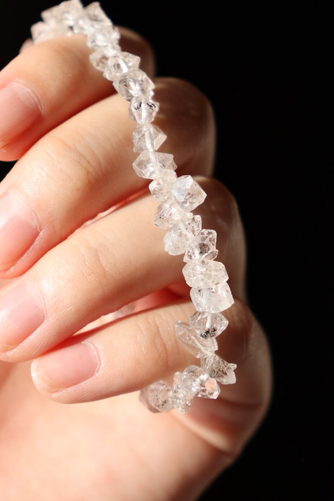 こちらは、鋭く澄んだ輝きを放つハーキマーダイヤモンドのブレスレット。