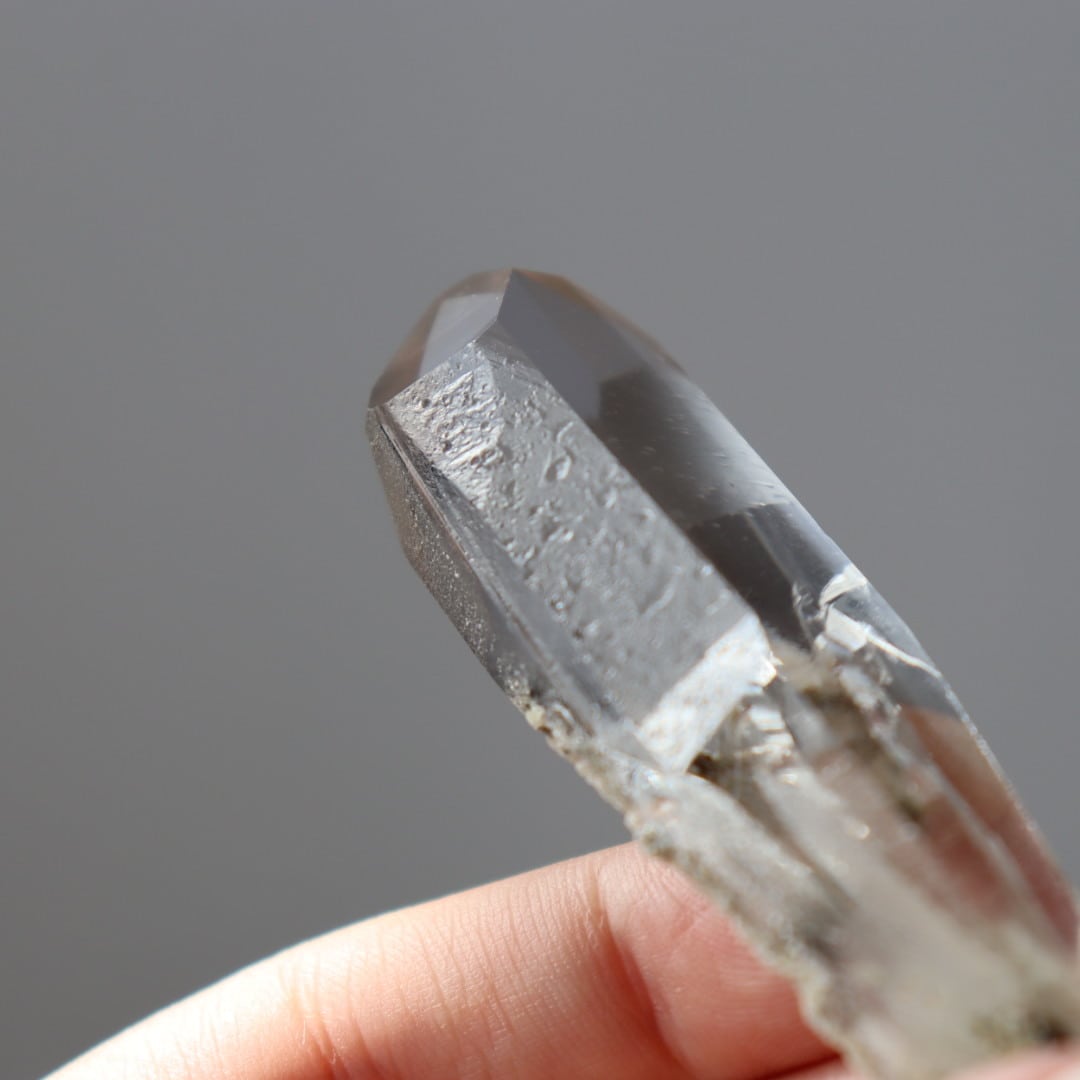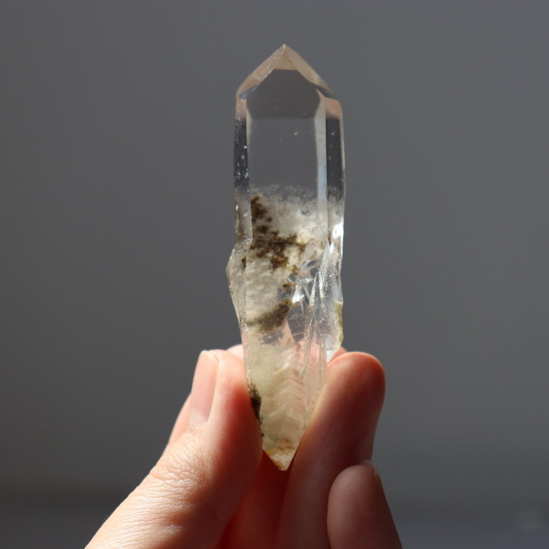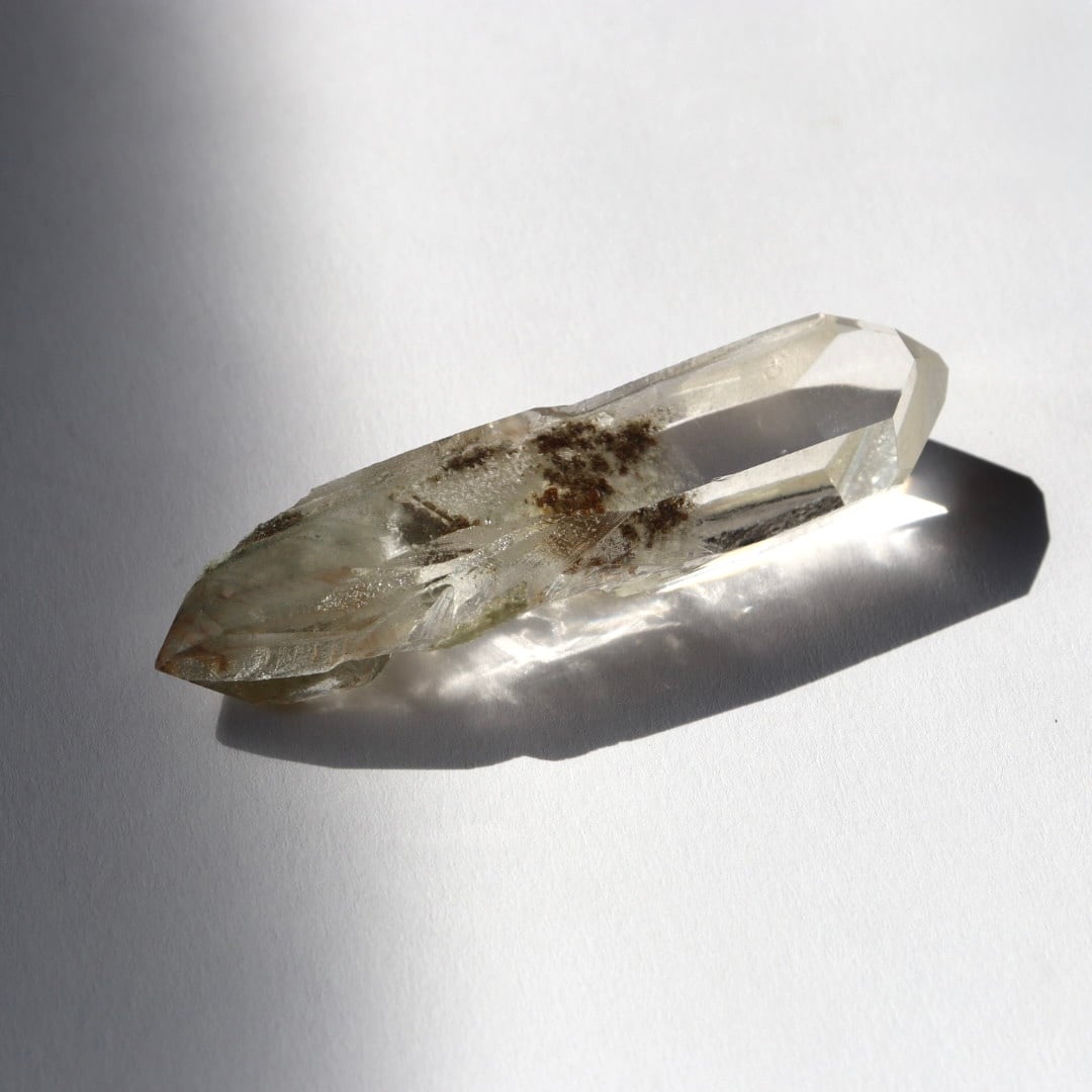 ブラジル・ミナスジェライス州コリント産のクロライトインクォーツ原石ポイント。