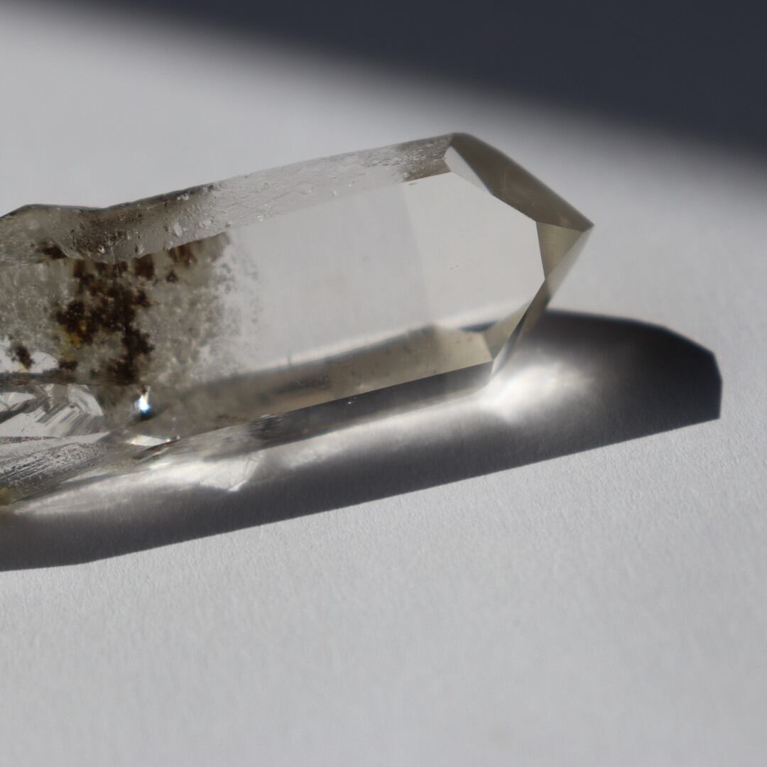 こちらは、驚くほどの透明感をもつガーデンクオーツの魅力が際立つダブルポイント。