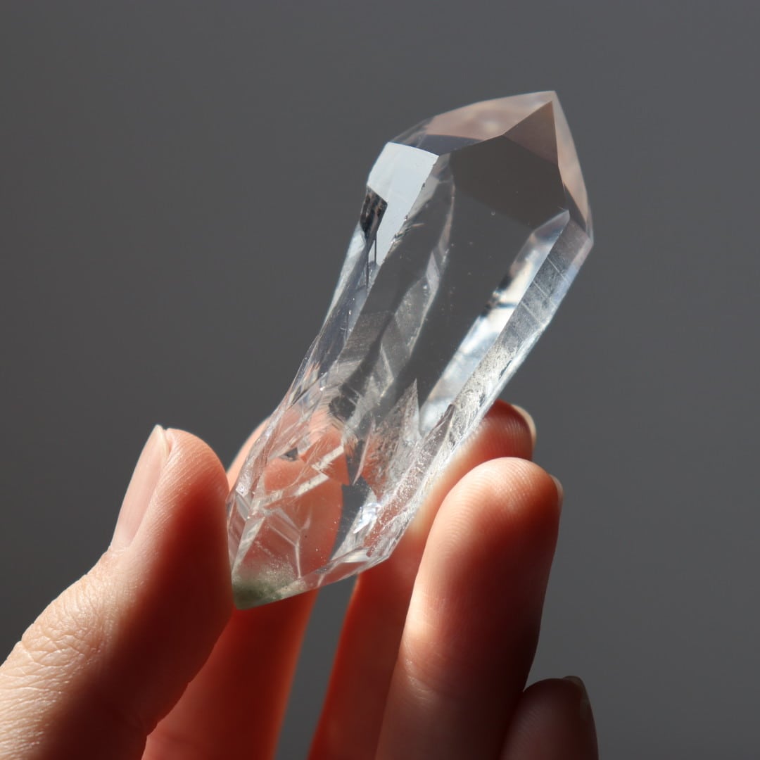 ファセット面は磨かれ、結晶の密度による圧倒的な透明感を存分に楽しめます。