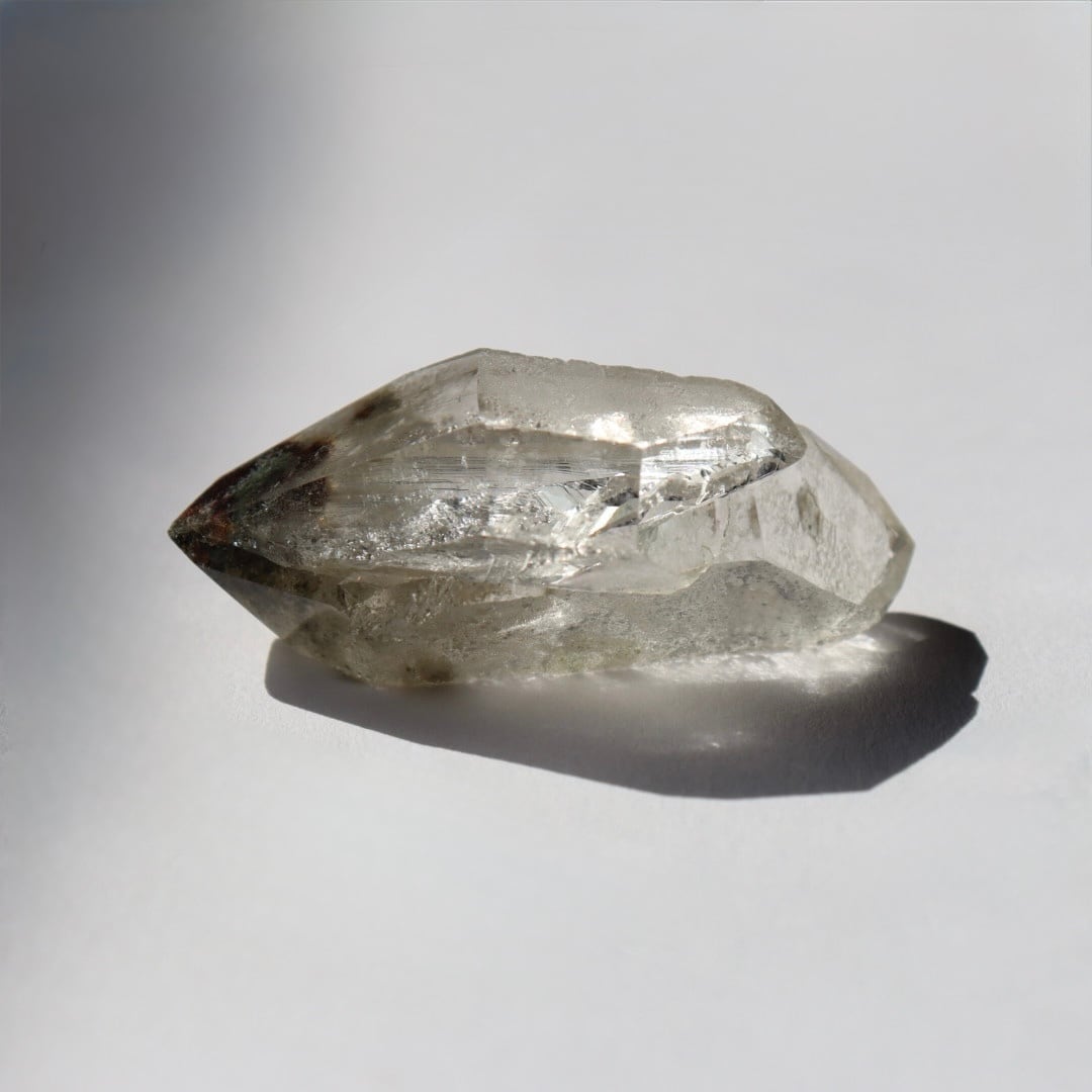 ブラジル・ミナスジェライス州コリント産のクロライトインクォーツ原石ポイント。