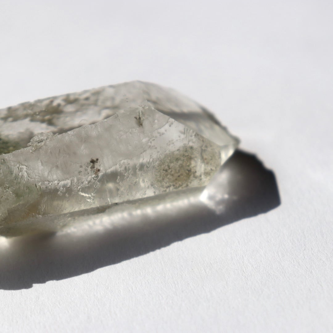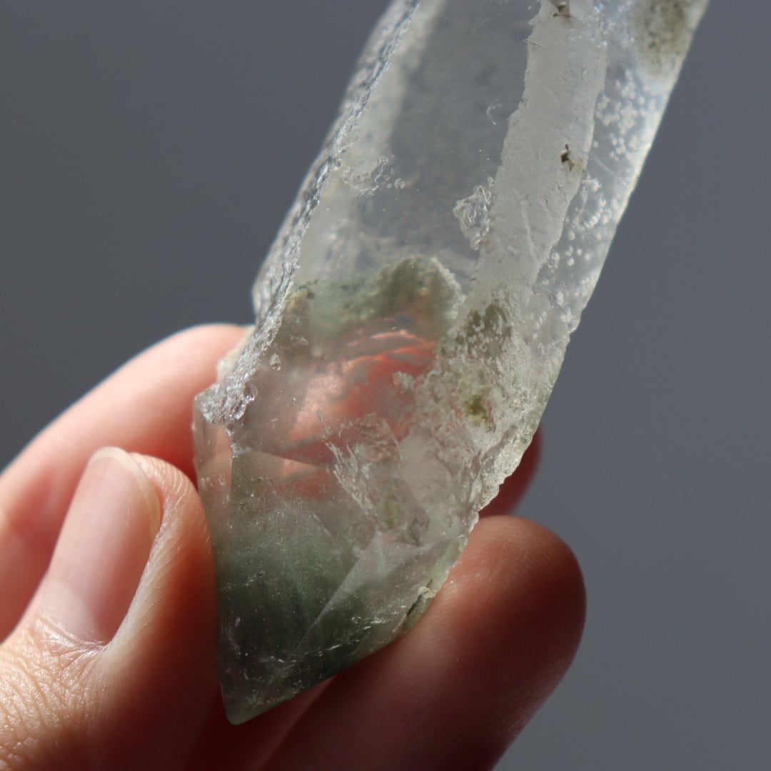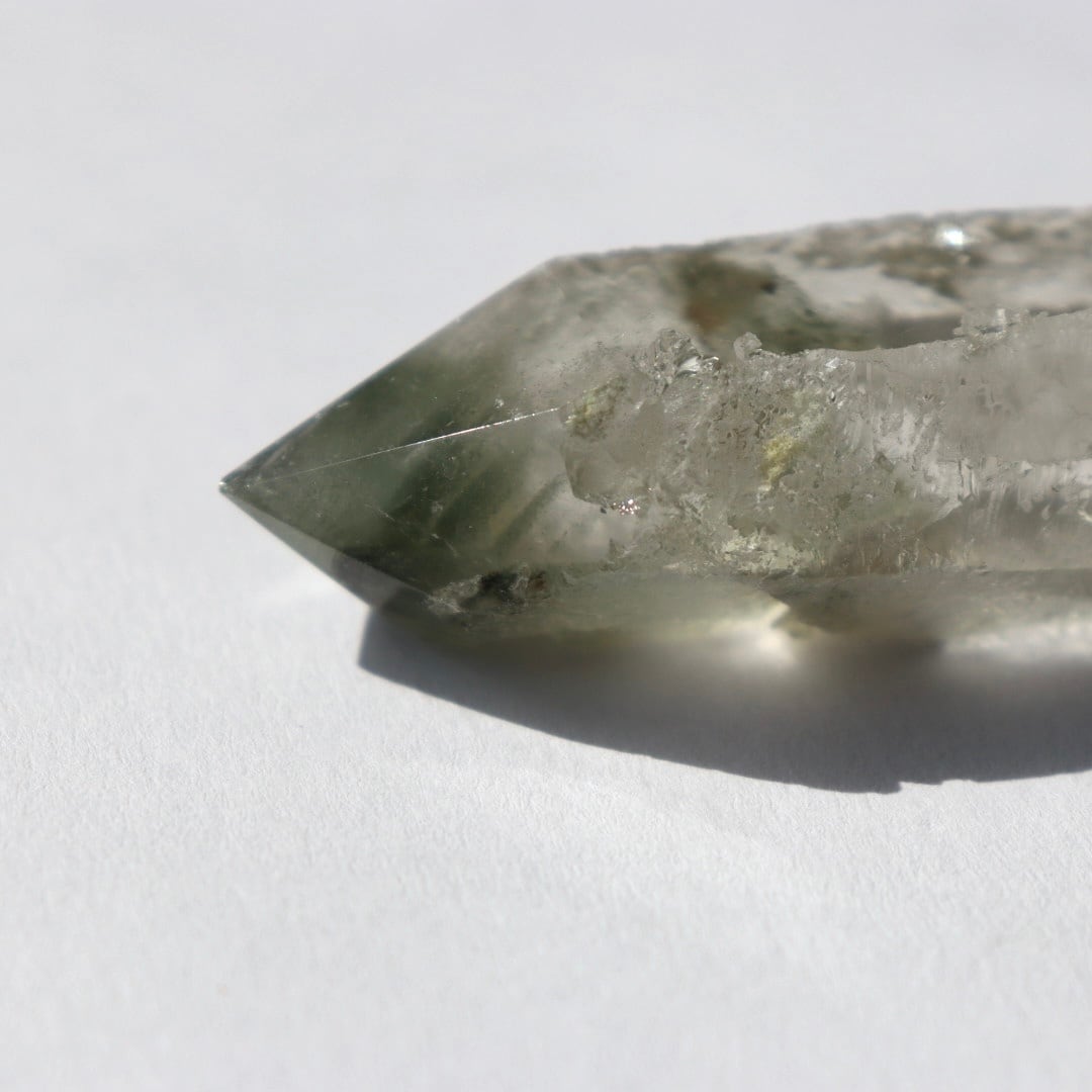 ブラジル・ミナスジェライス州コリント産のクロライトインクォーツ原石ポイント。