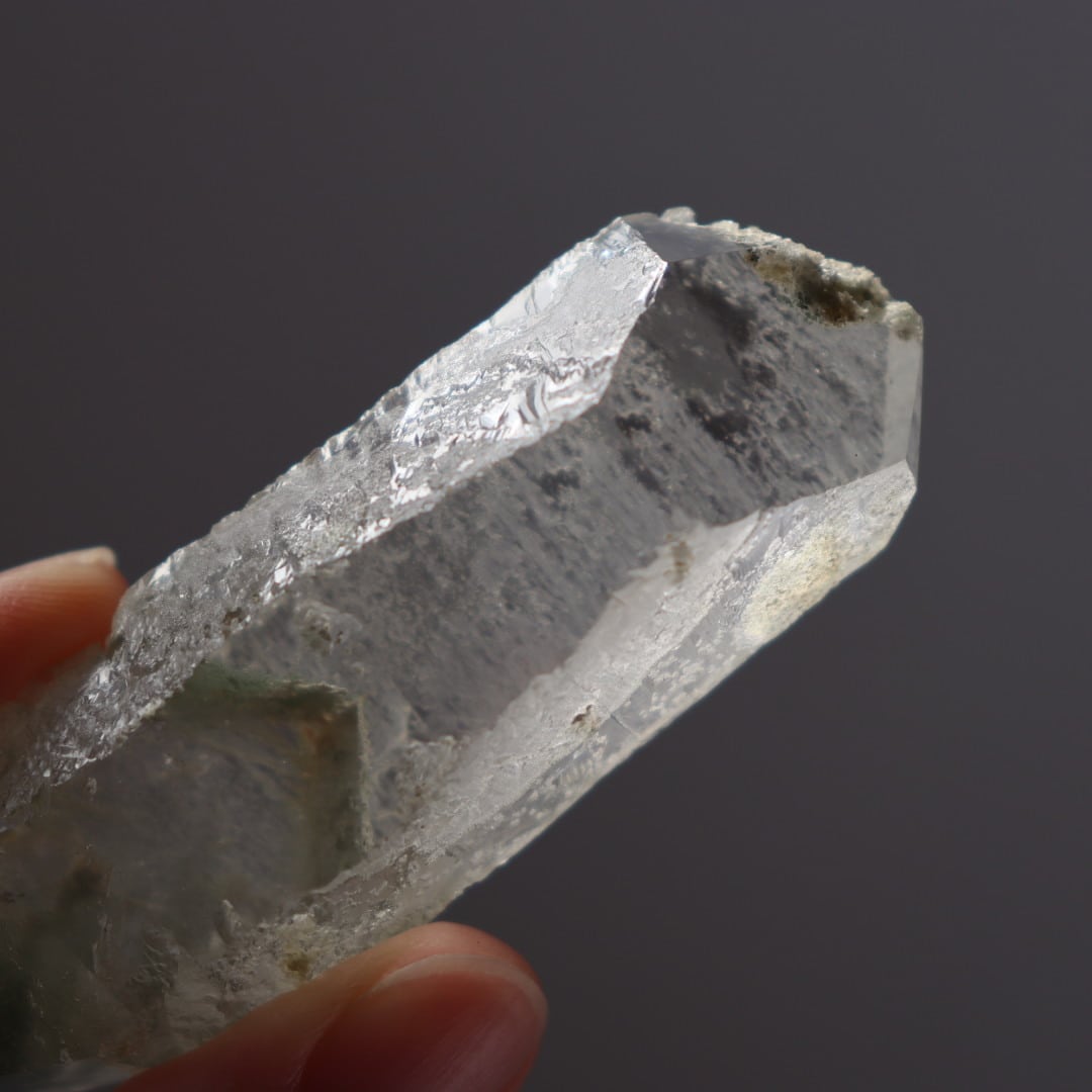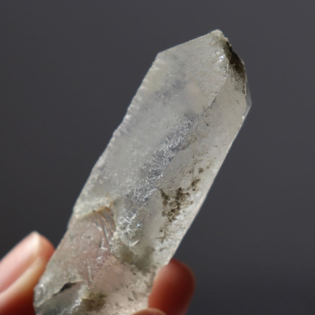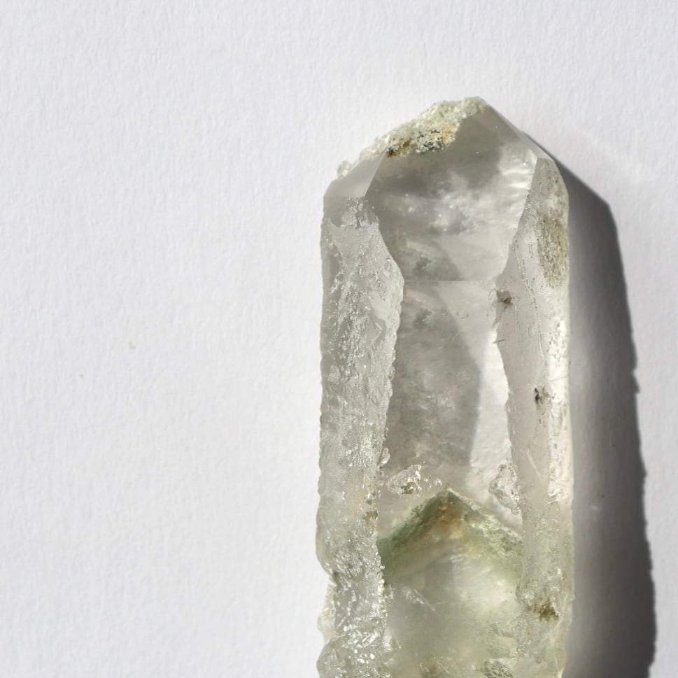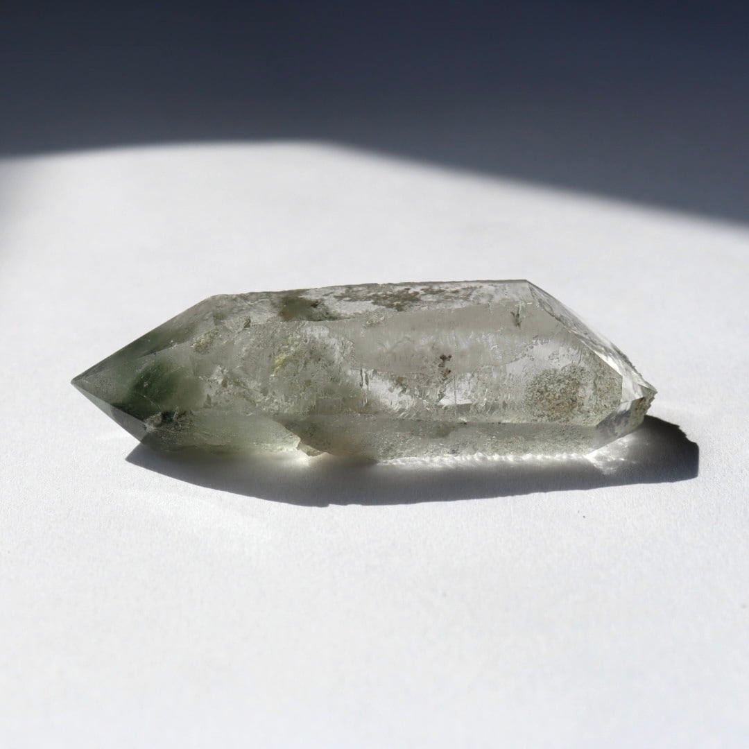 ブラジル・ミナスジェライス州コリント産のクロライトインクォーツ原石ポイント。