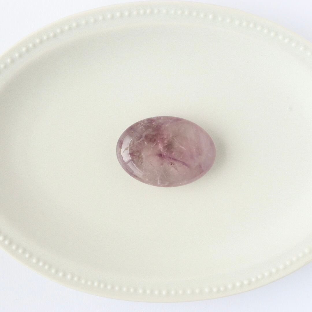 結晶の奥行きが美しく、光を透かすたびに紫のラインが静かに浮かび上がり、清らかで穏やかな輝きを放ちます。