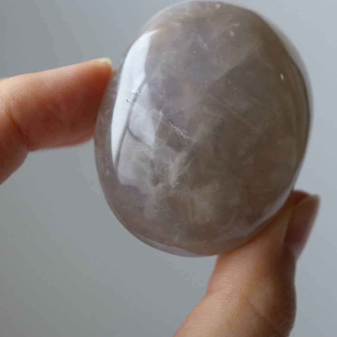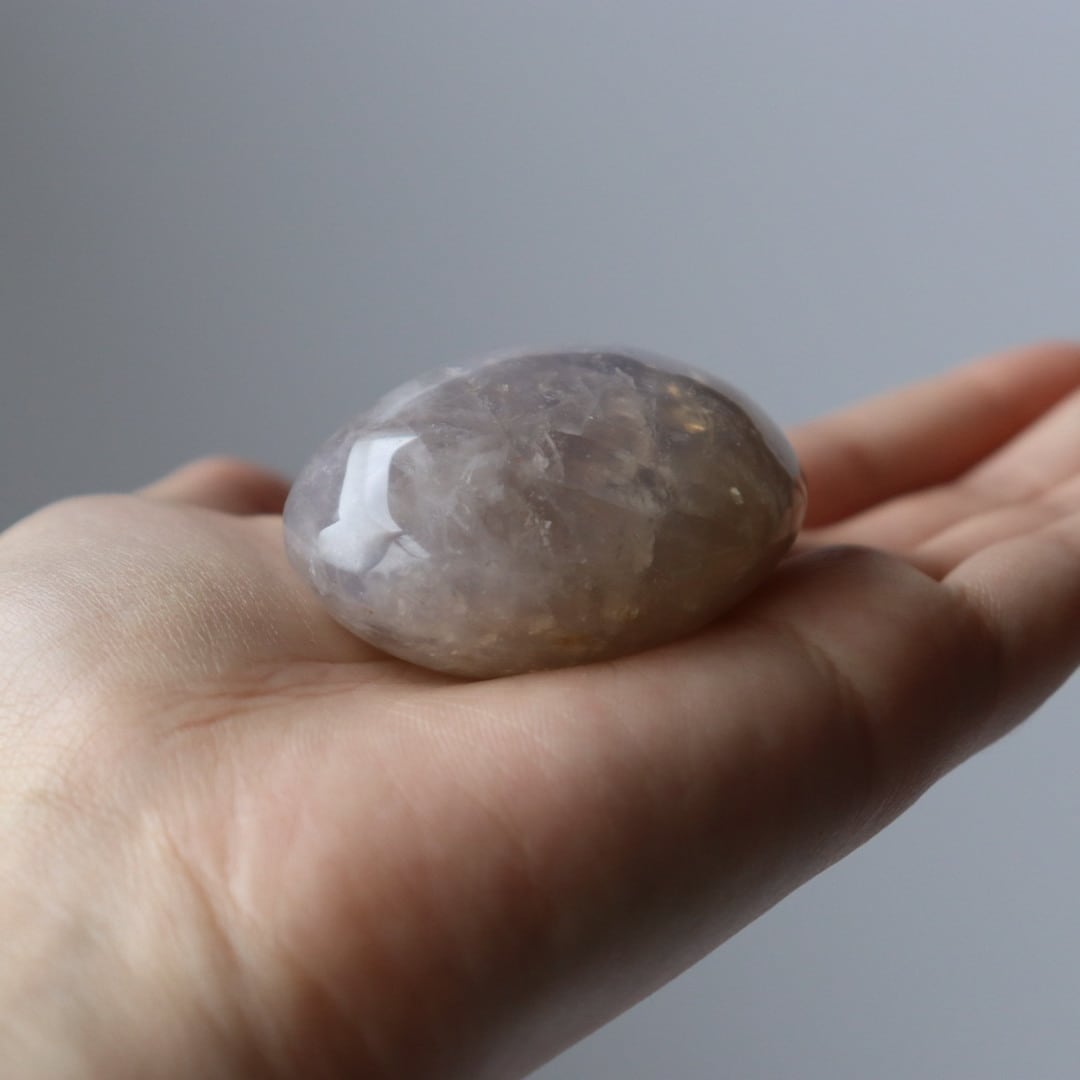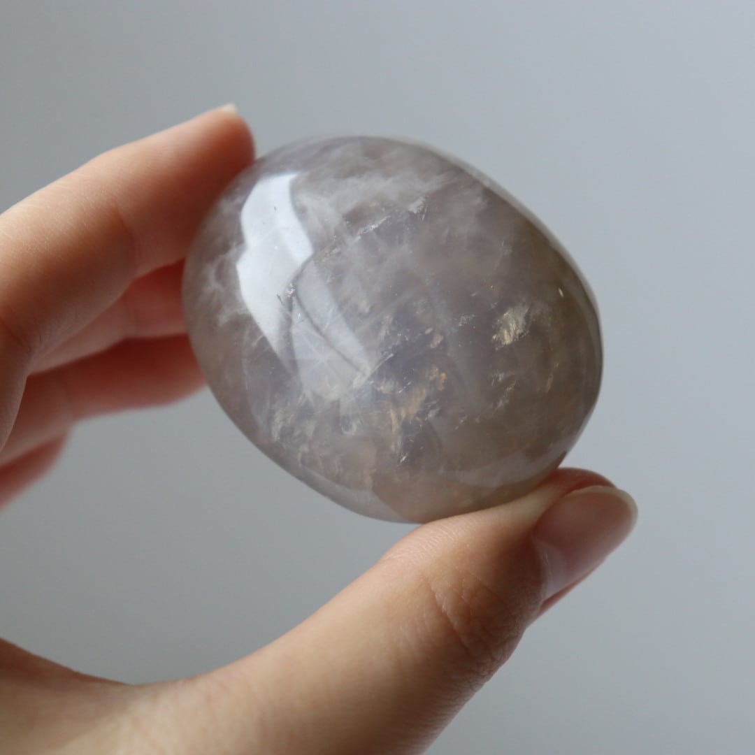 濃いラベンダーカラーが印象的な、ブルーローズクォーツの握り石。