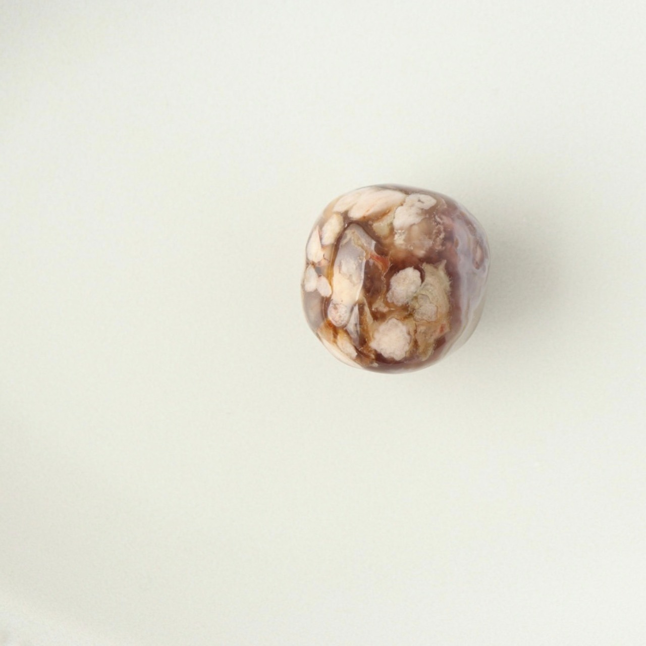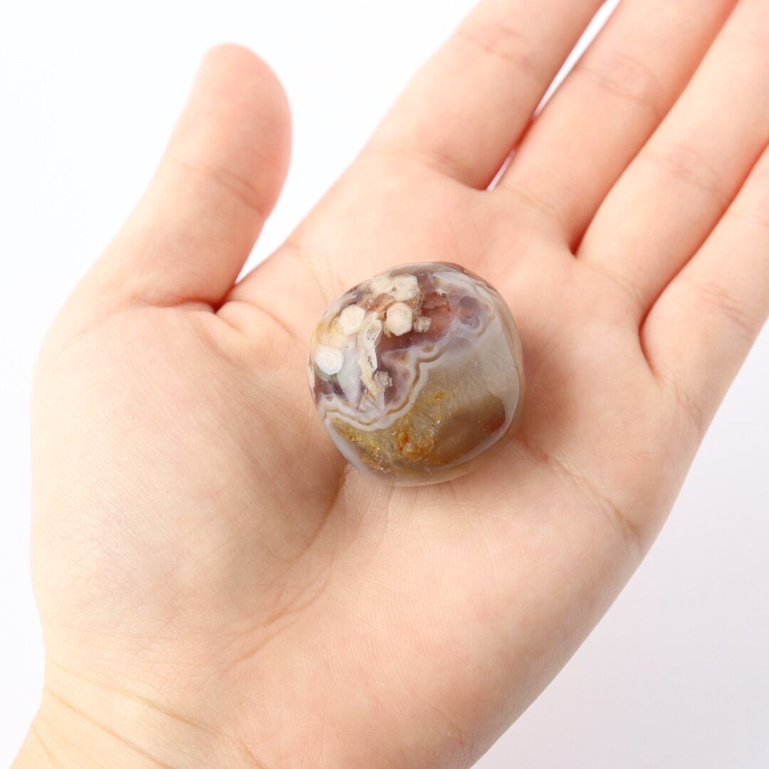 小さな花々が咲き誇ったようなインクルージョンの、ブラックチェリーブロッサムアゲートのタンブル。