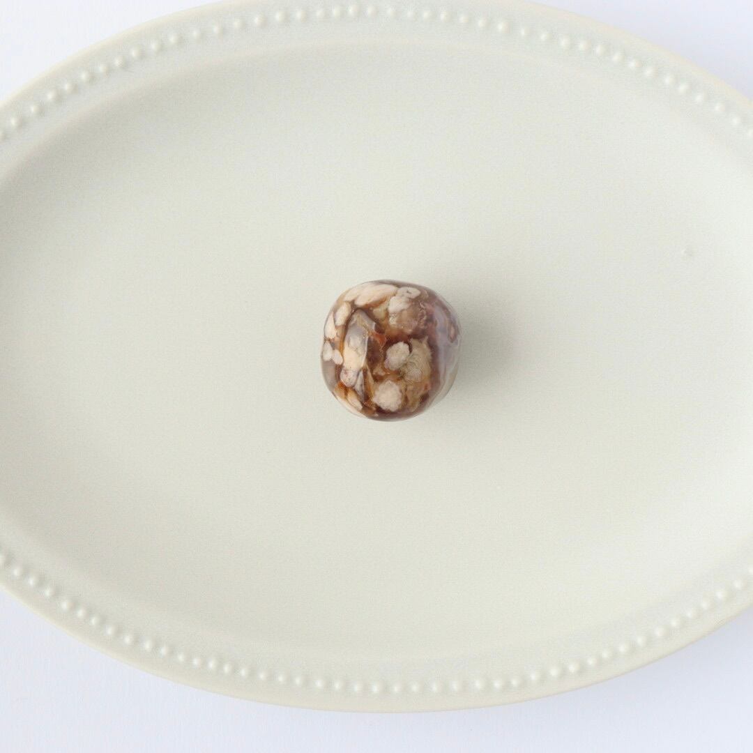 ダークカラーのアゲート(瑪瑙)の中に桜の花びらのような模様が広がったピースです。