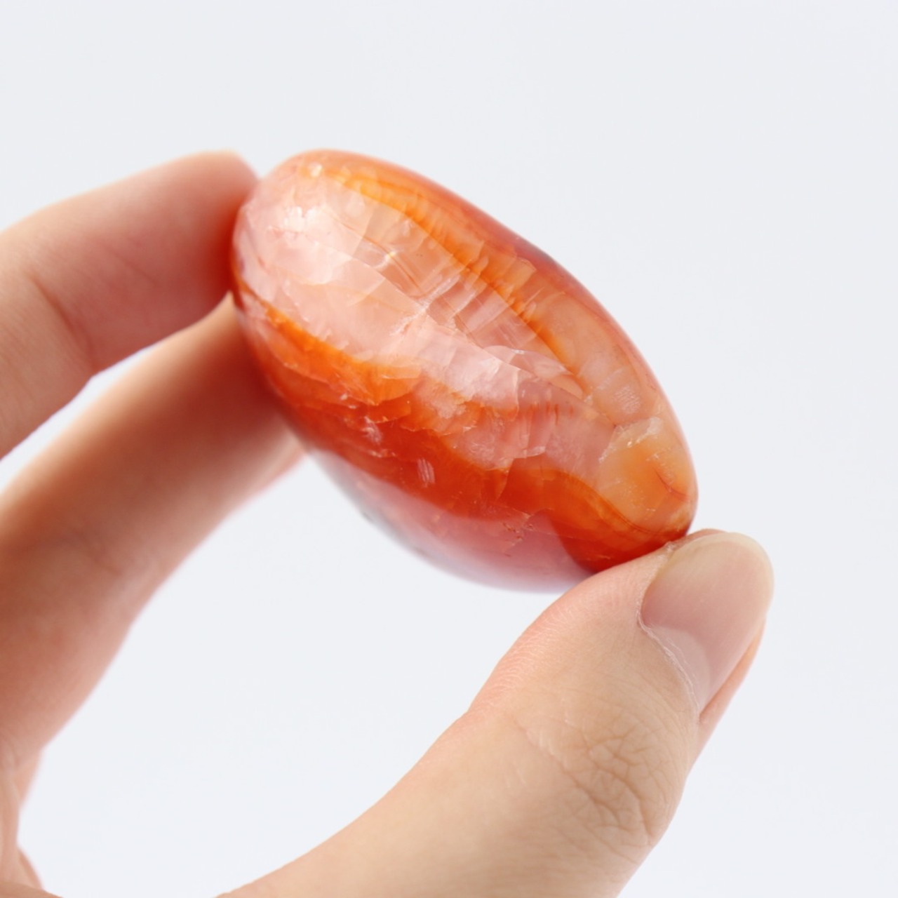 縞模様はありませんが、ホワイトから鮮やかな赤に変化する繊細なグラデーション美しいアゲート。