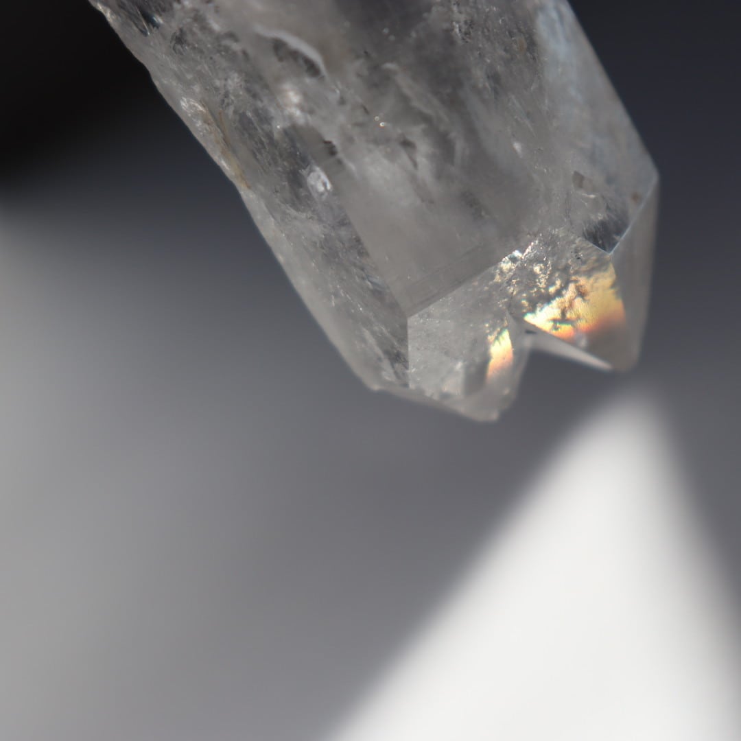 さらに下部にはツインの結晶構造が見られ、一つに見える水晶が実際には二つの結晶が結びついて成長したことがわかります。
