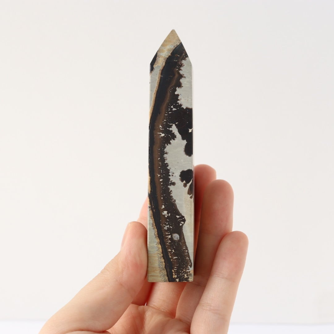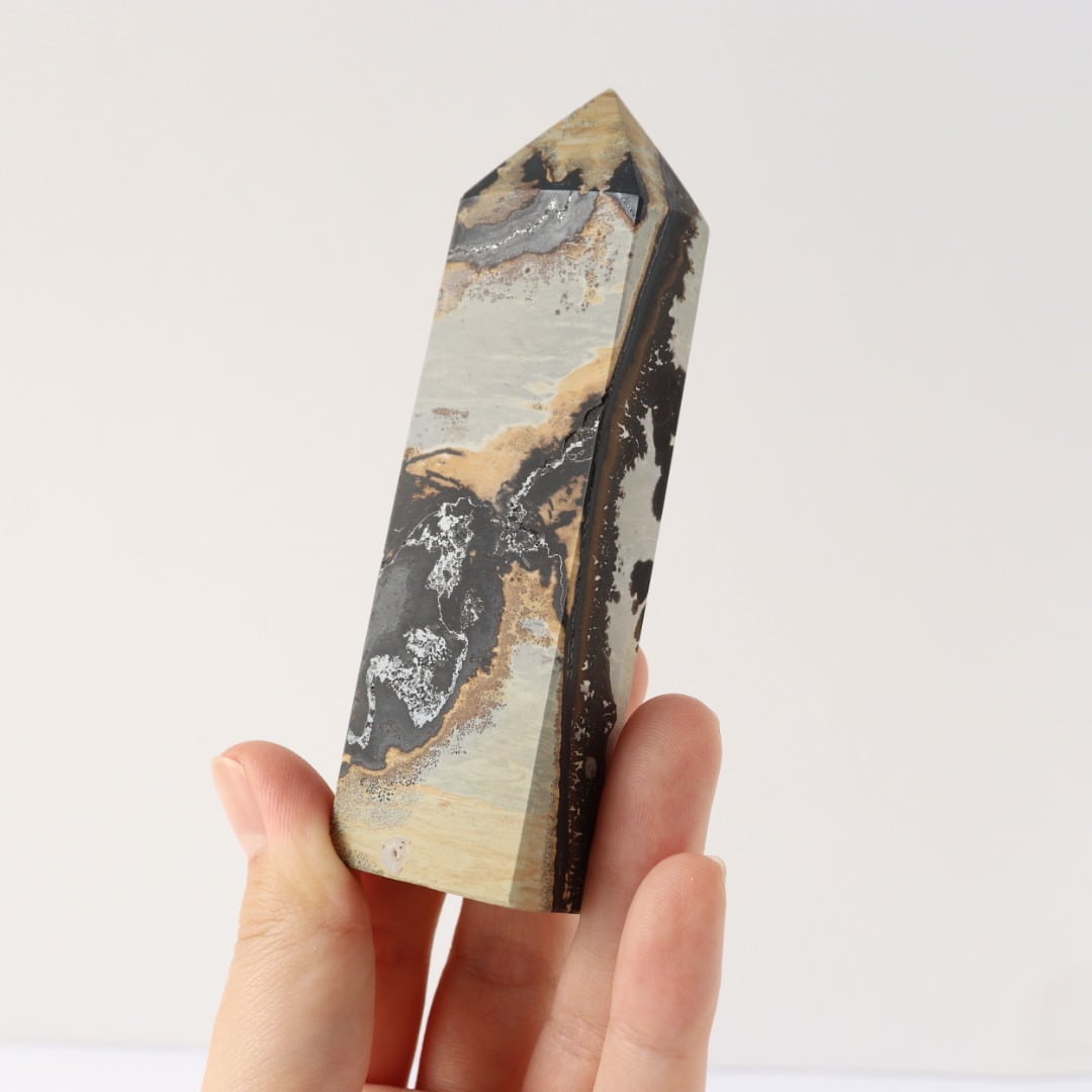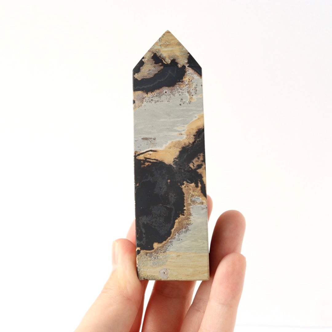 大胆不敵なブラックの模様が美しい、ピクチャージャスパーのタワー。