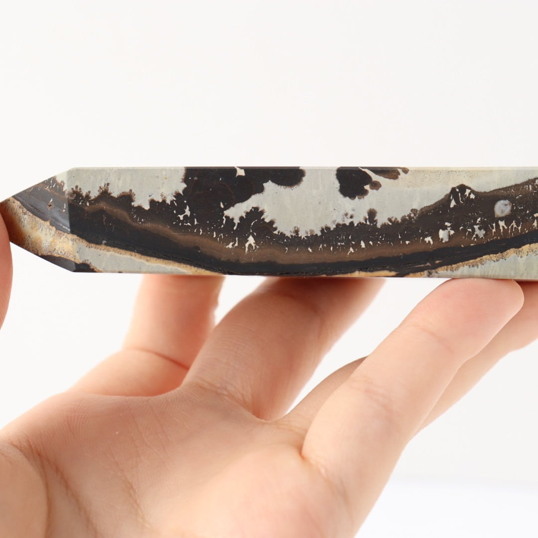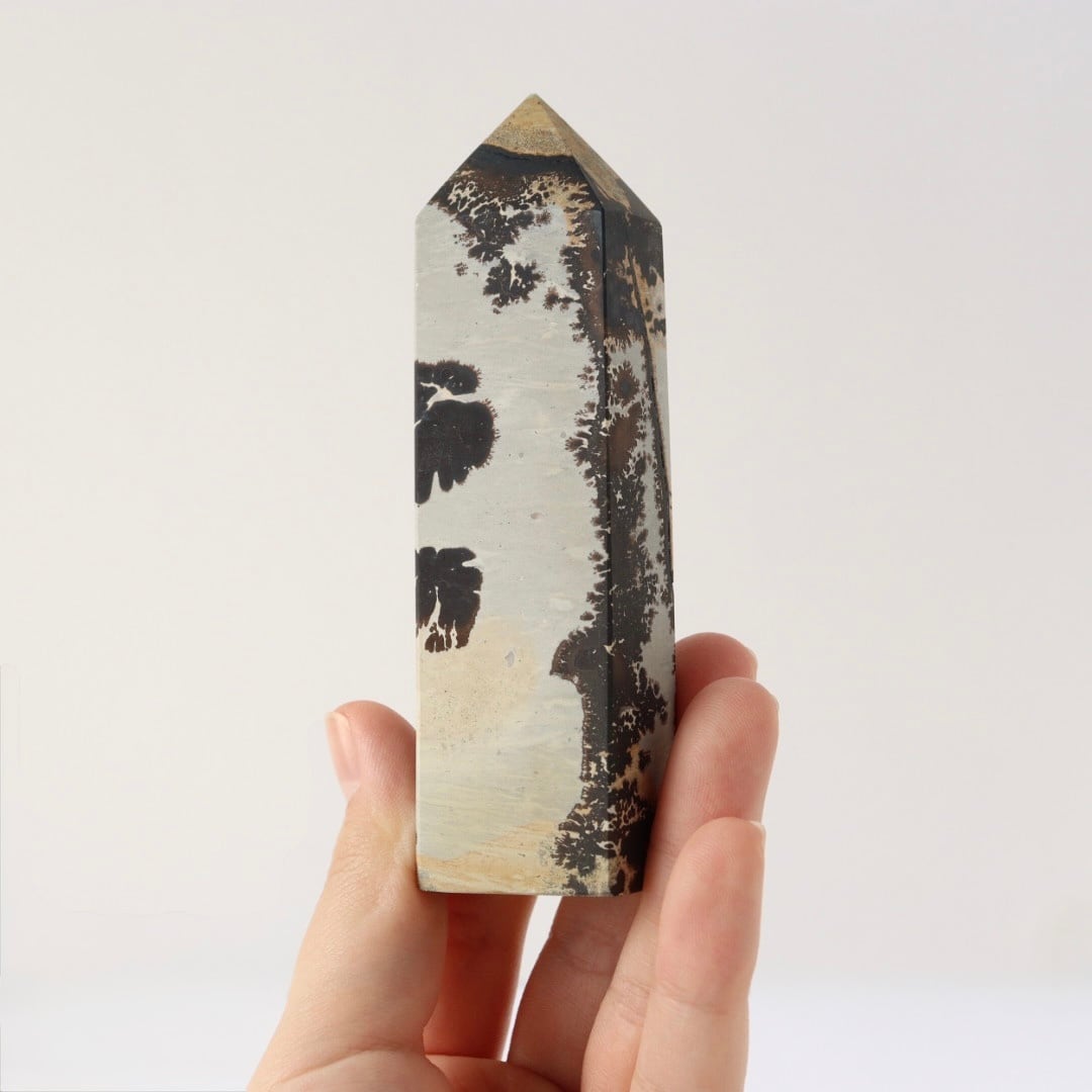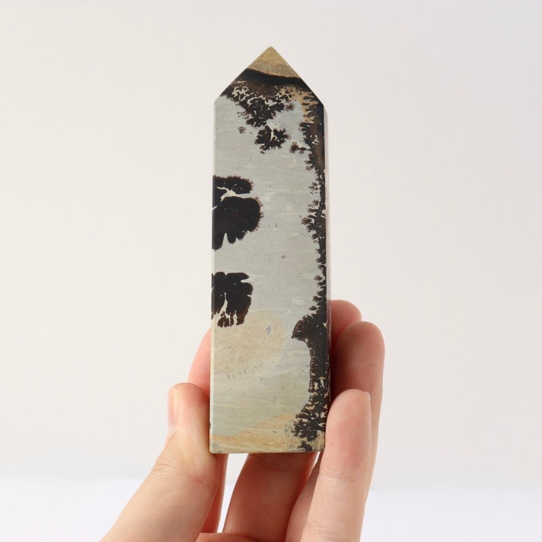 大胆不敵なブラックの模様が美しい、ピクチャージャスパーのタワー。
