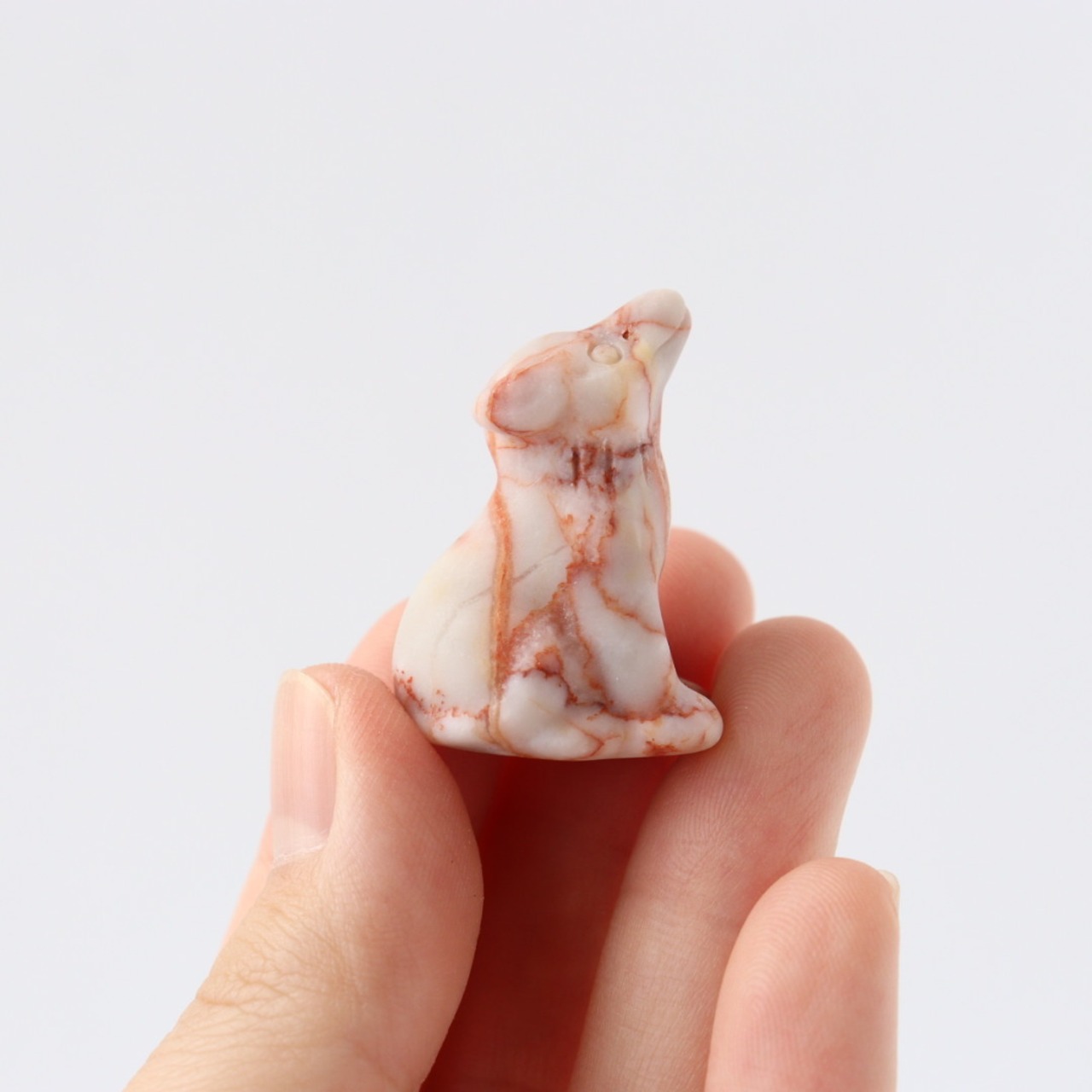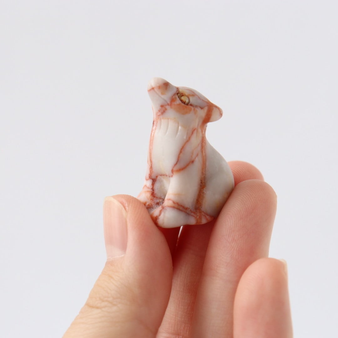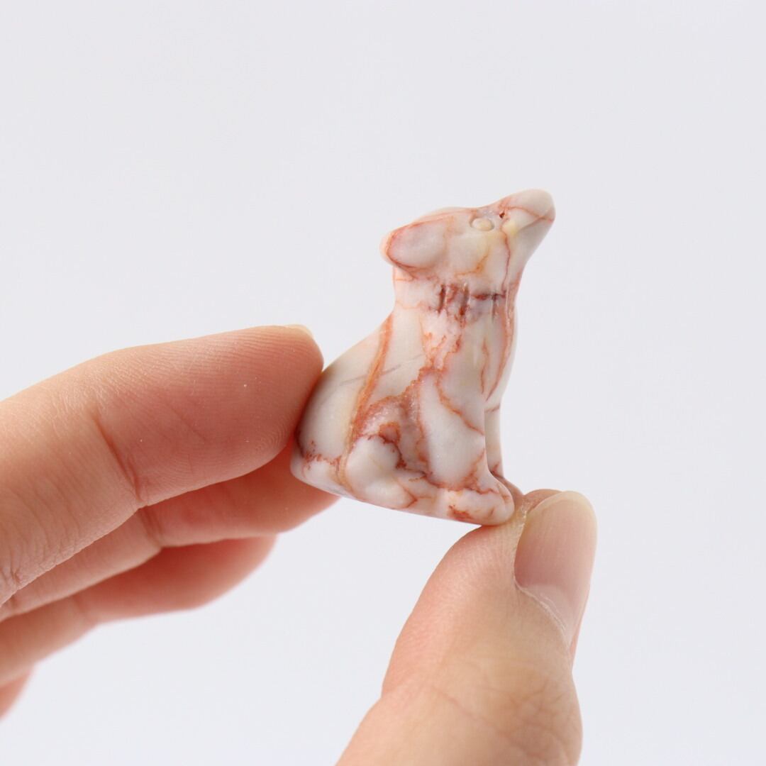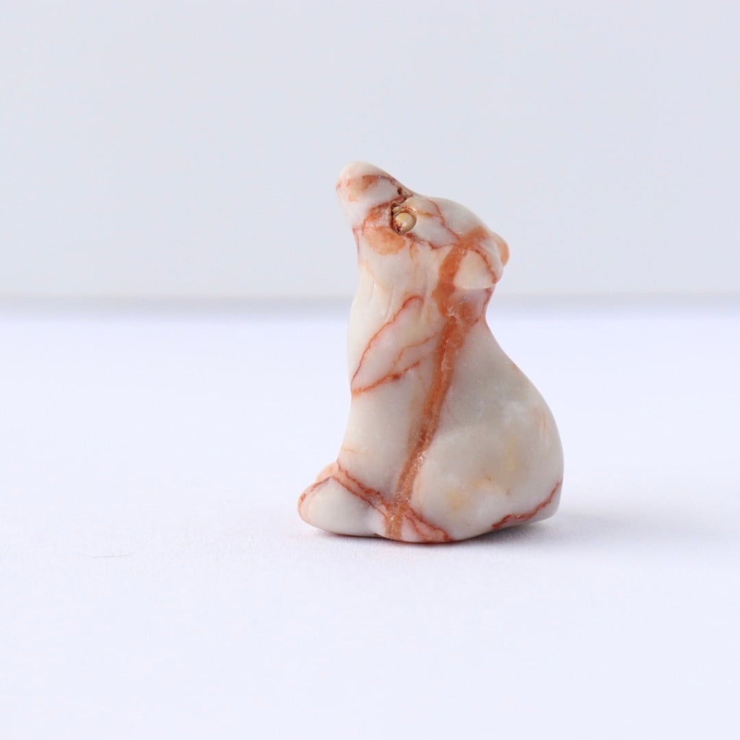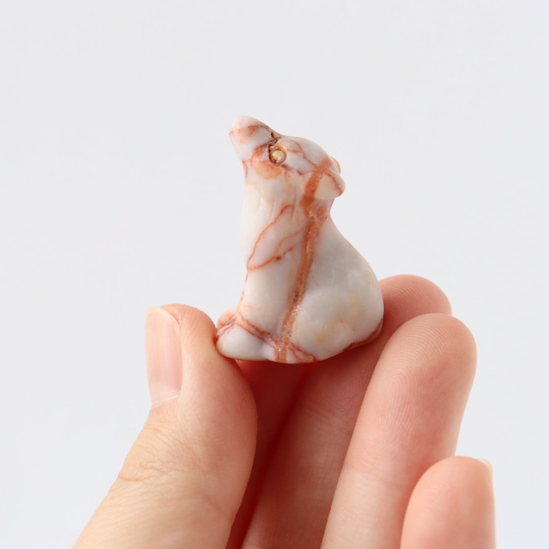 白地に赤い編み目状の模様が広がるレッドネットワークジャスパーの狼。