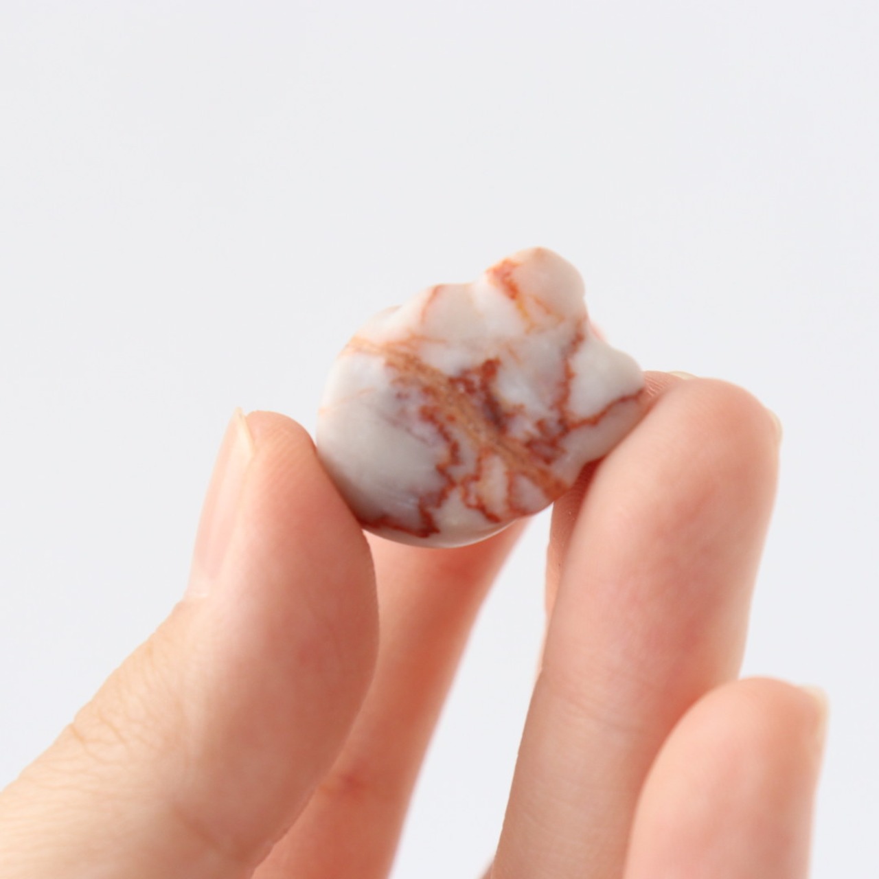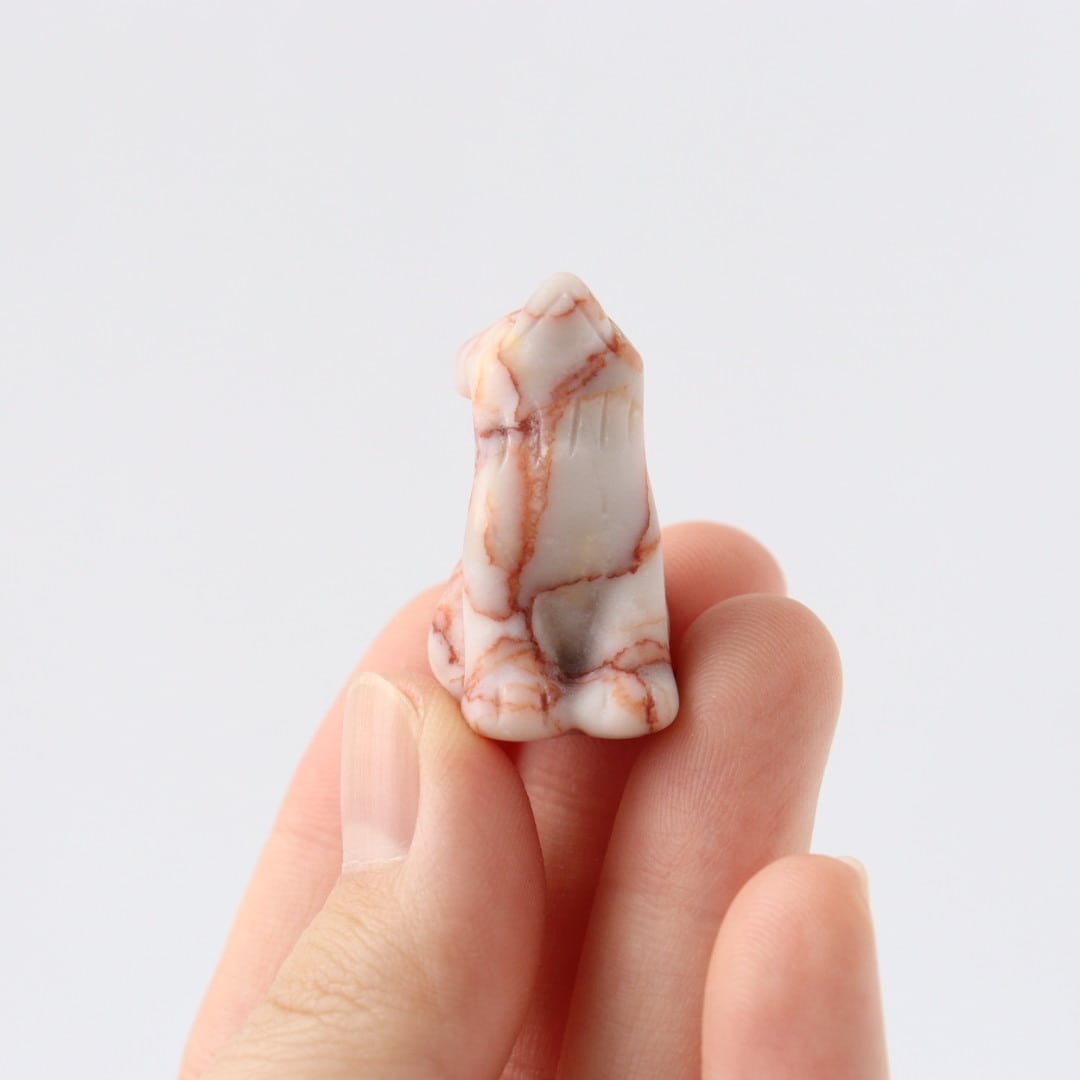 レッドネットワークジャスパーは、ジャスパーの一種で、鉄分由来の赤色が網目状に入り込むことからその名で呼ばれています。磨くとさらりとした質感になり、彫刻素材としても用いられてきました。