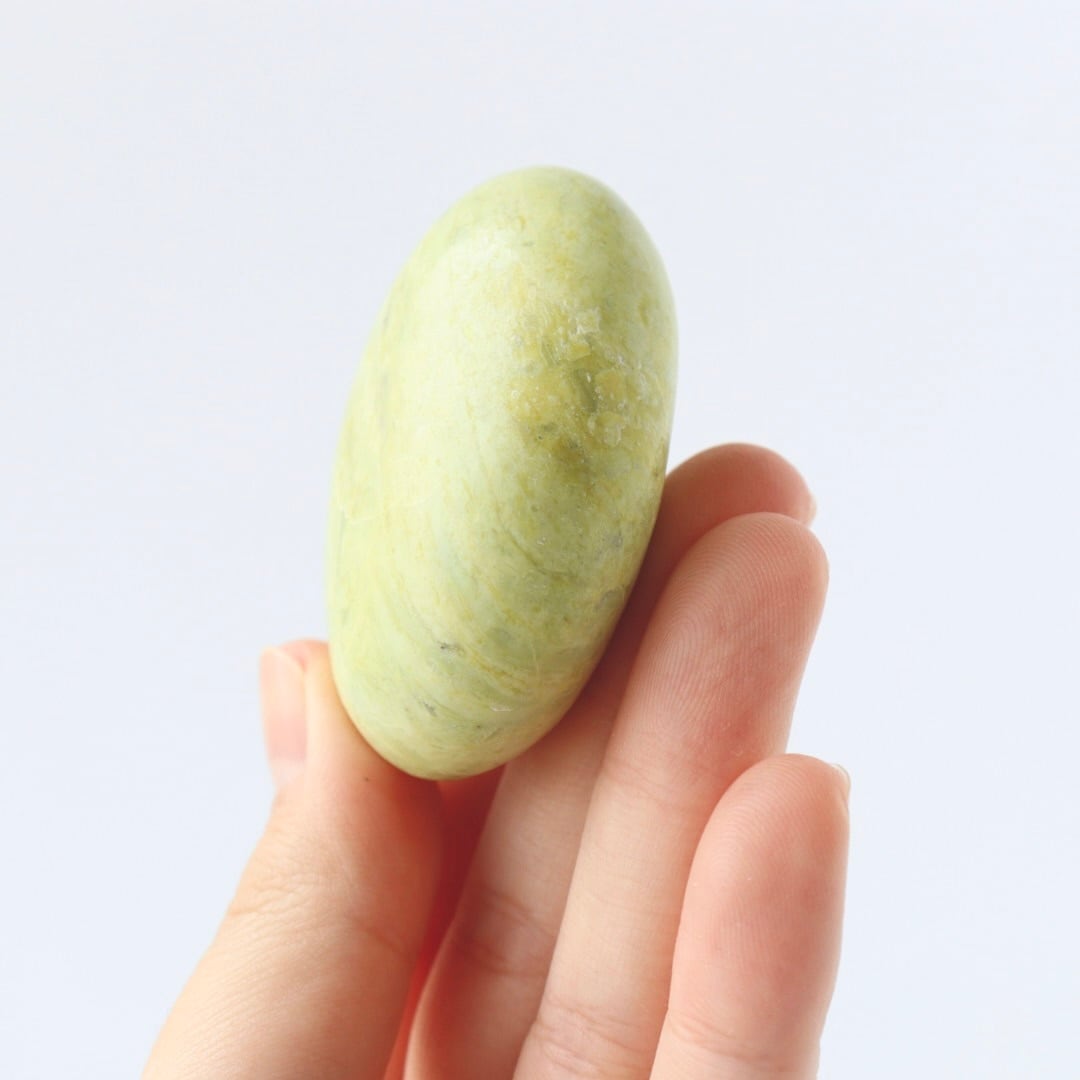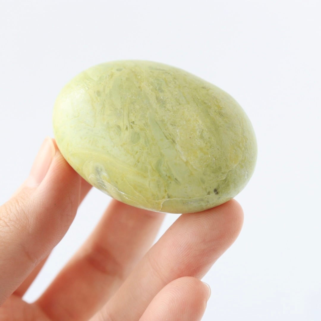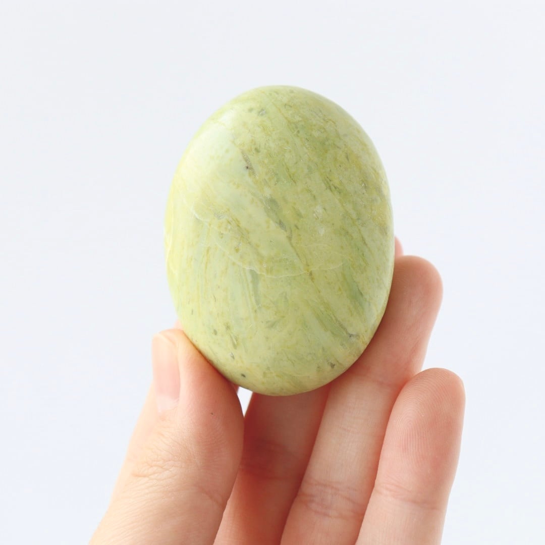春の森に差し込む午後の日差しを閉じ込めたかのような、サーペンティンの握り石。