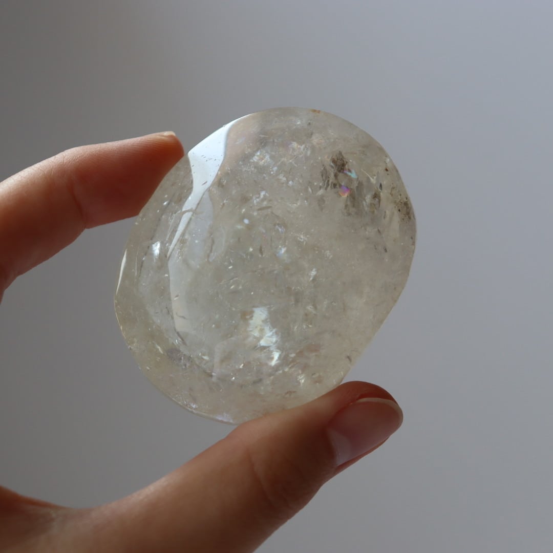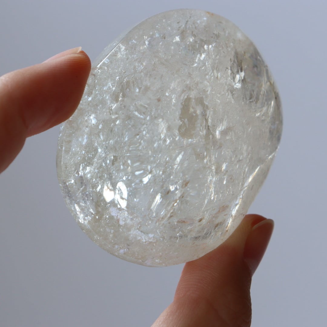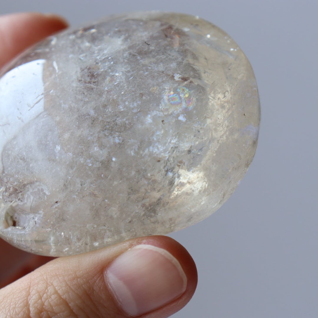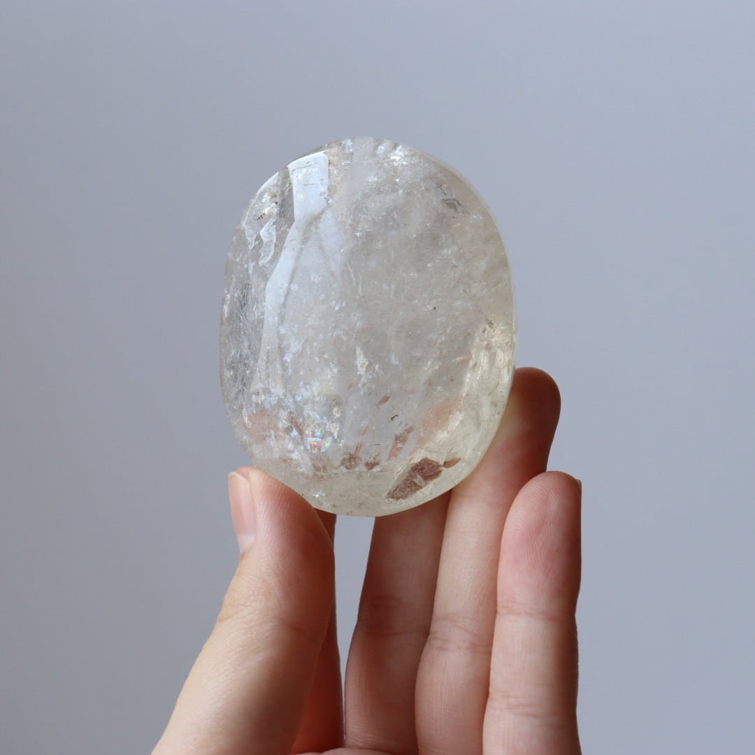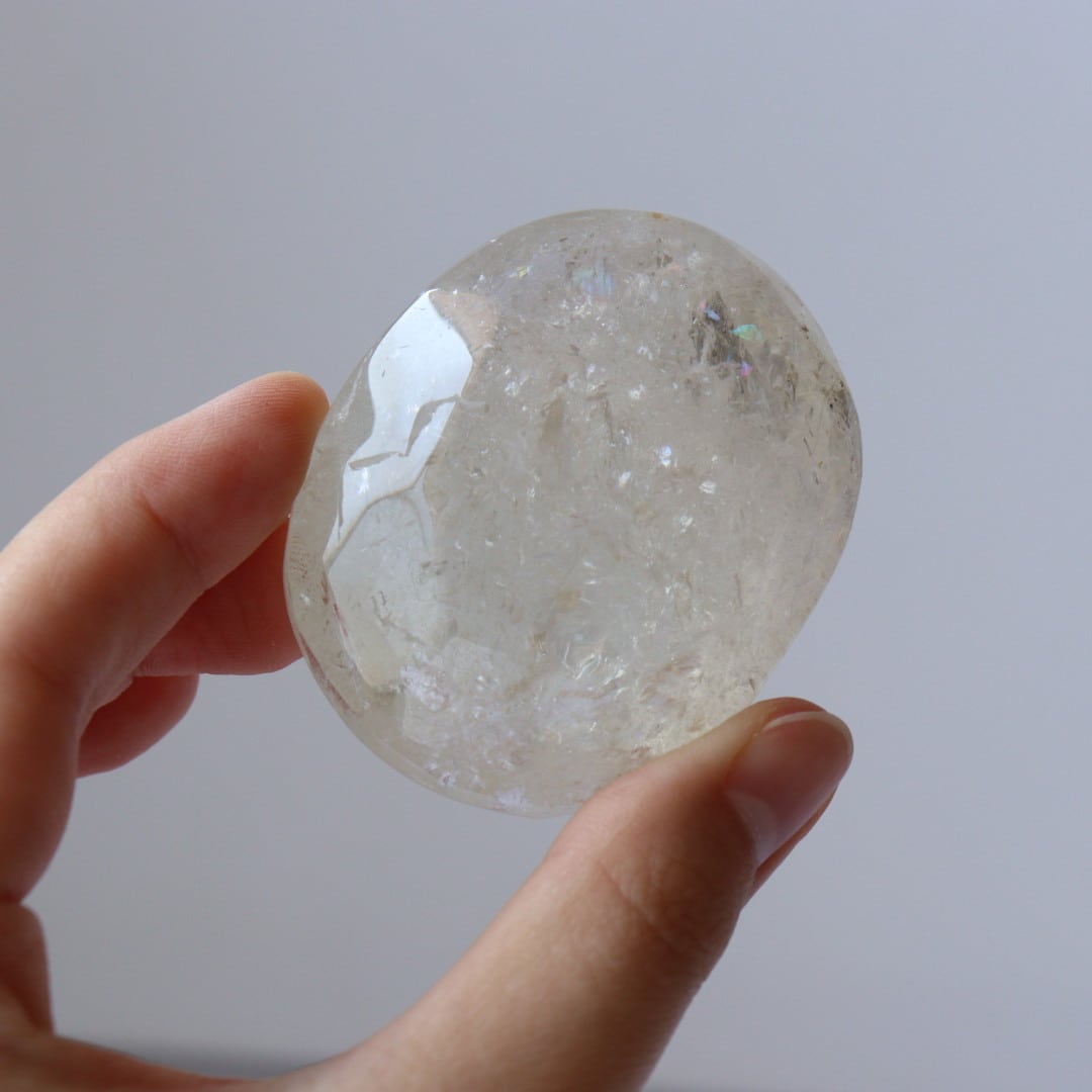 クラックなどのインクルージョンが多く内包しており、無数に交差する流れ星たちのようにきらめきます。多数の虹の内包も。