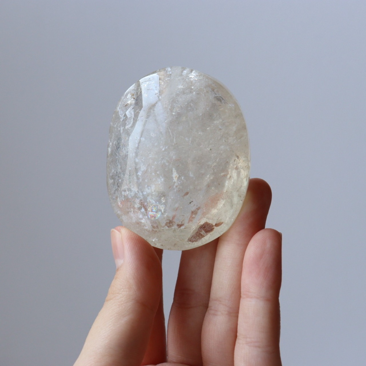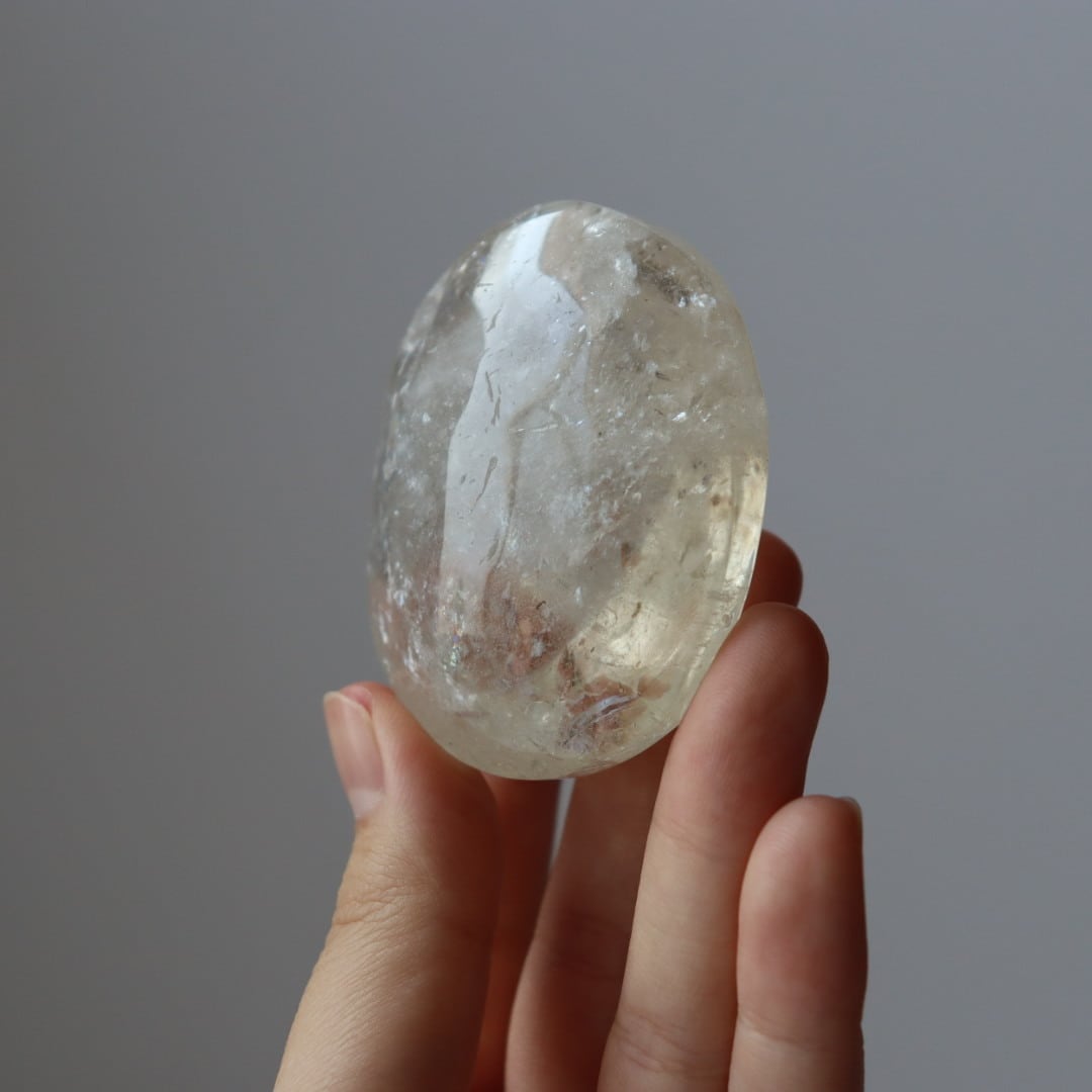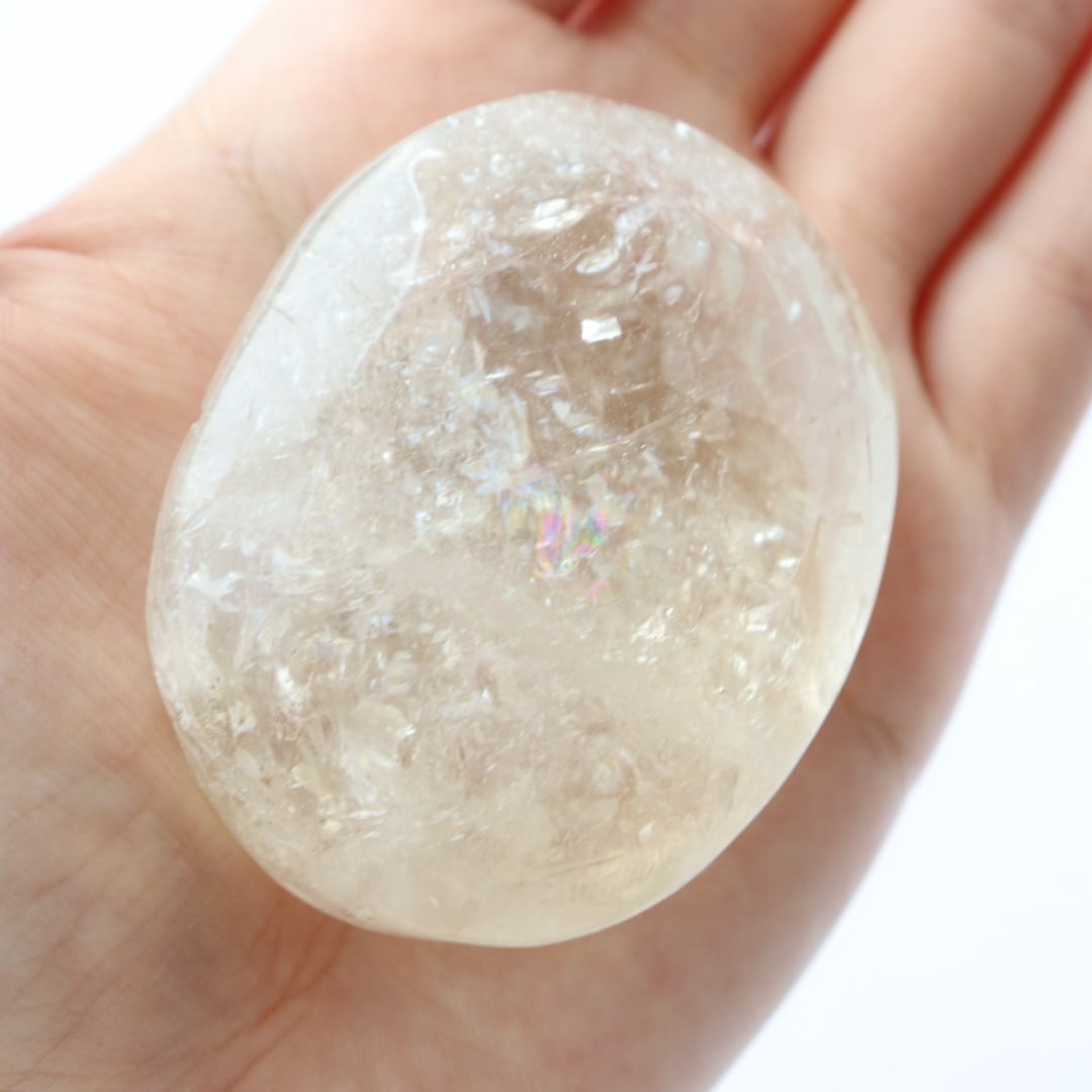 こちらは、淡く優しい輝きを内包したシトリンの握り石。
