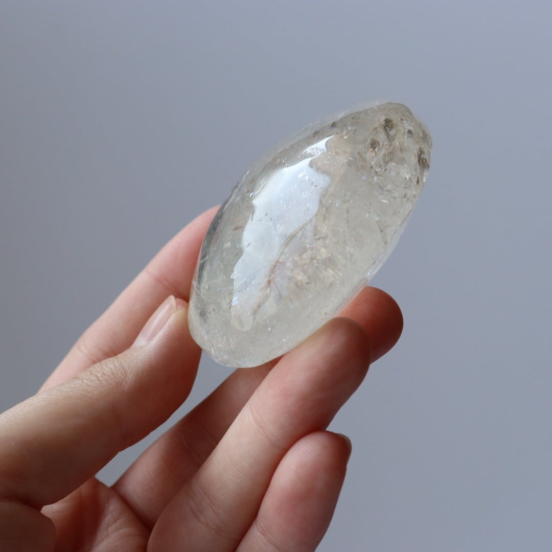 つるりとした角のある握り石の形に磨かれており、表面に少々凸凹が見られますが、手にしっくりとなじむひんやりとした心地よさがあります。