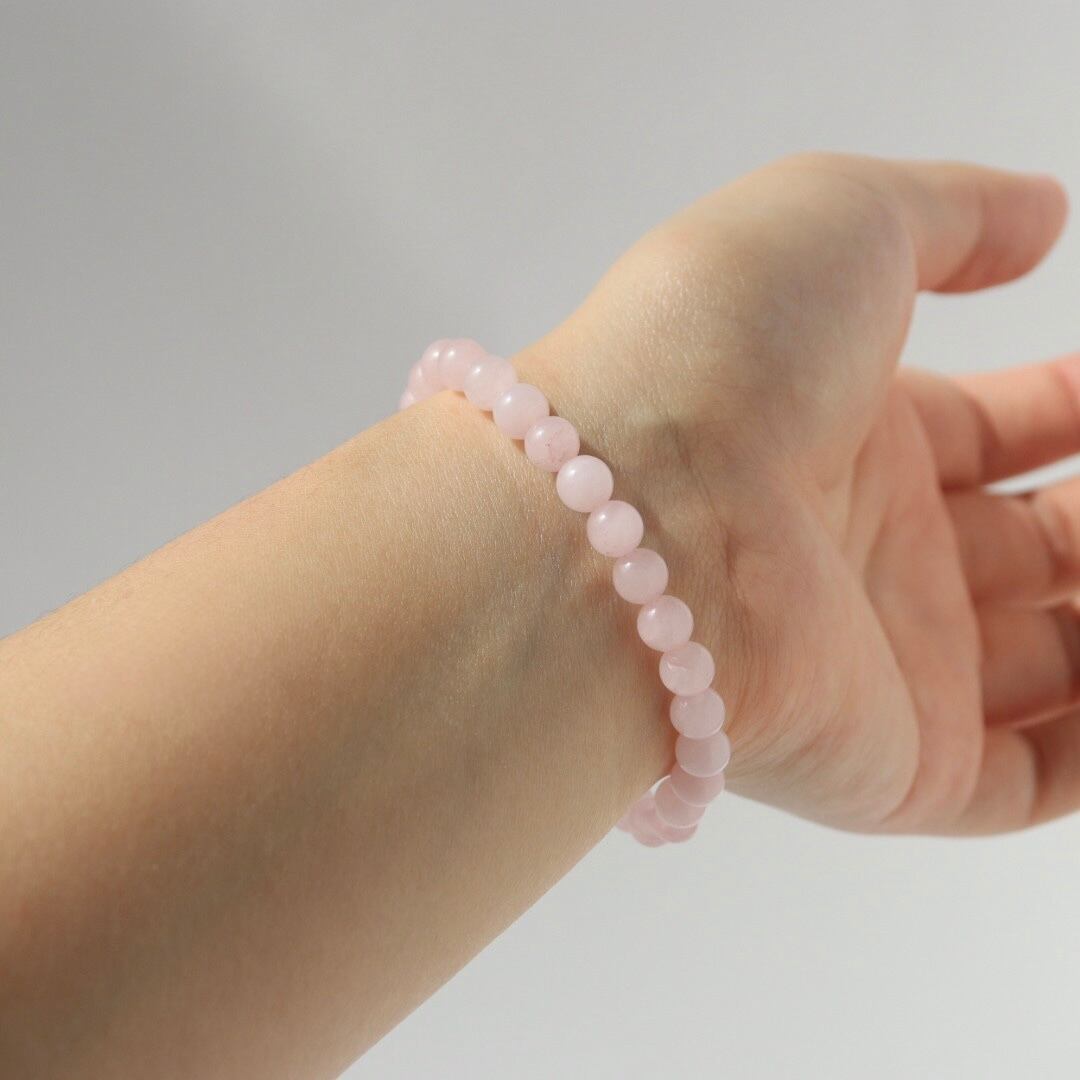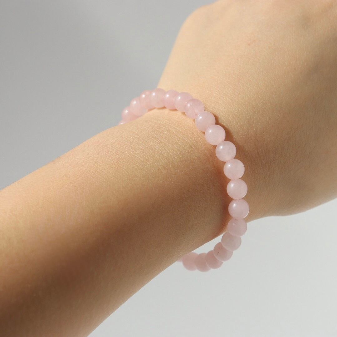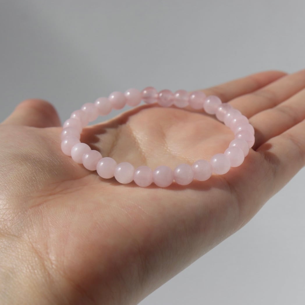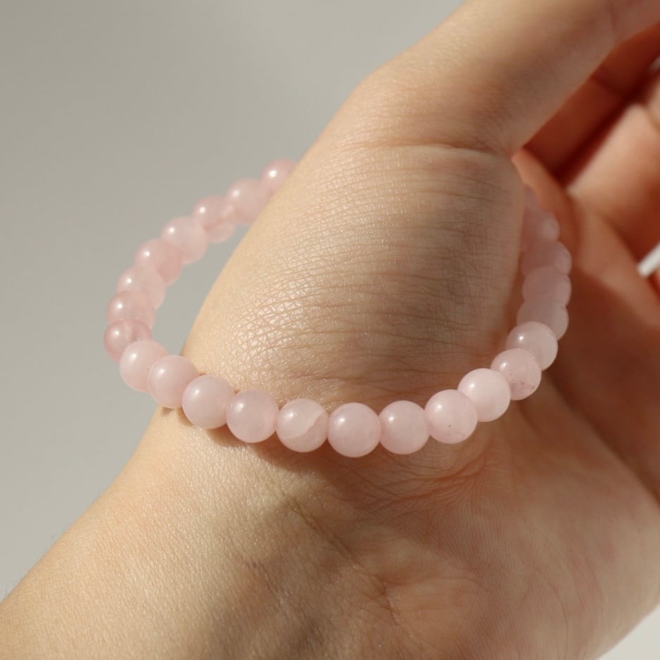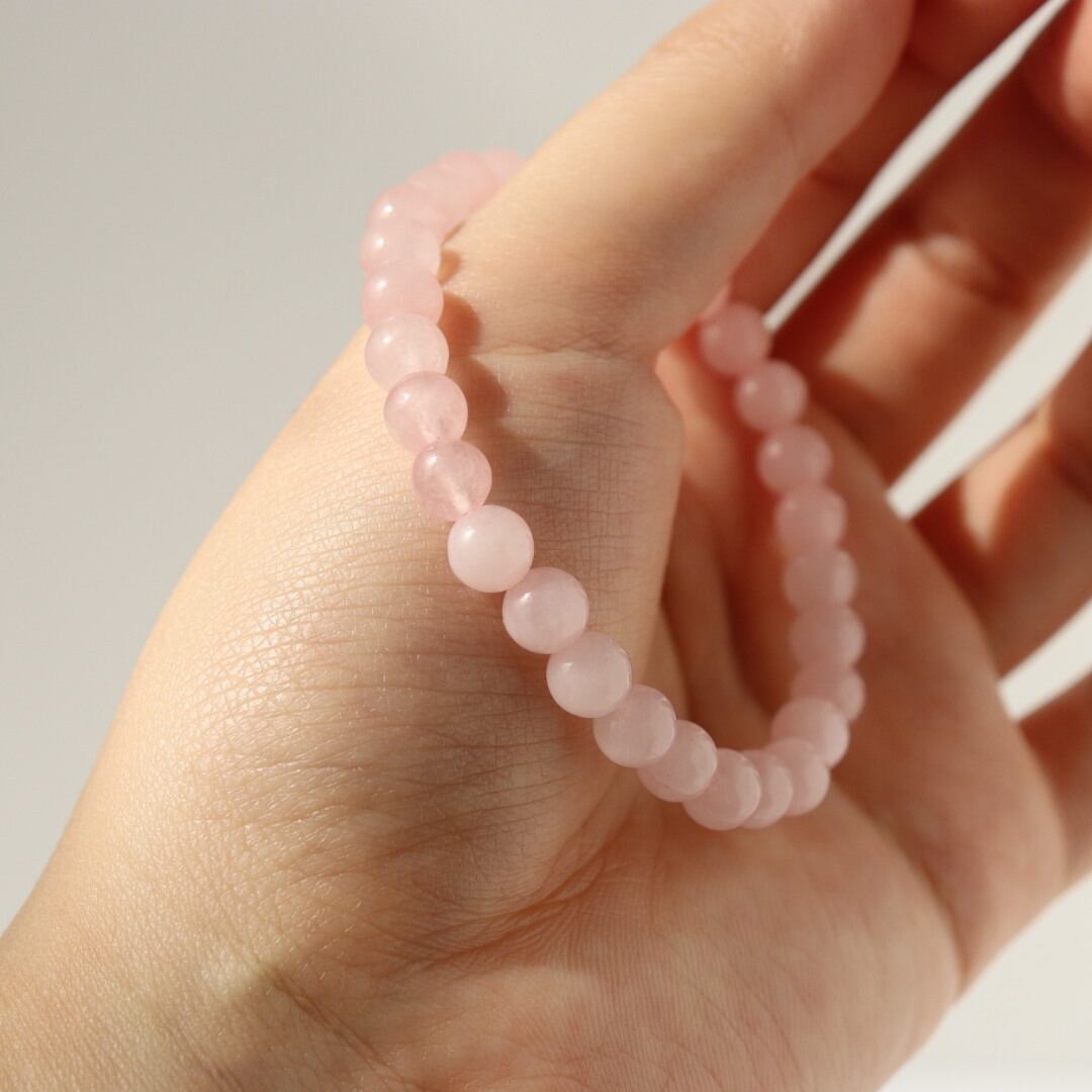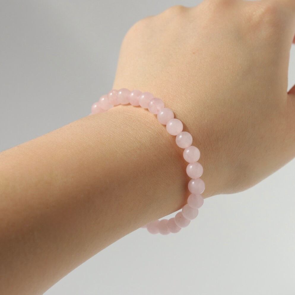 やわらかな桜色が連なる、ローズクォーツのブレスレット。