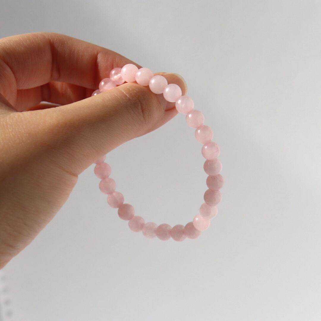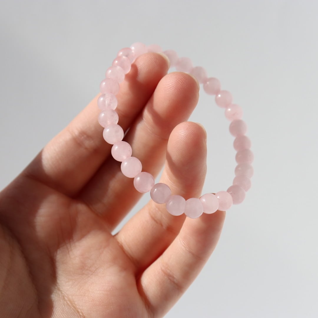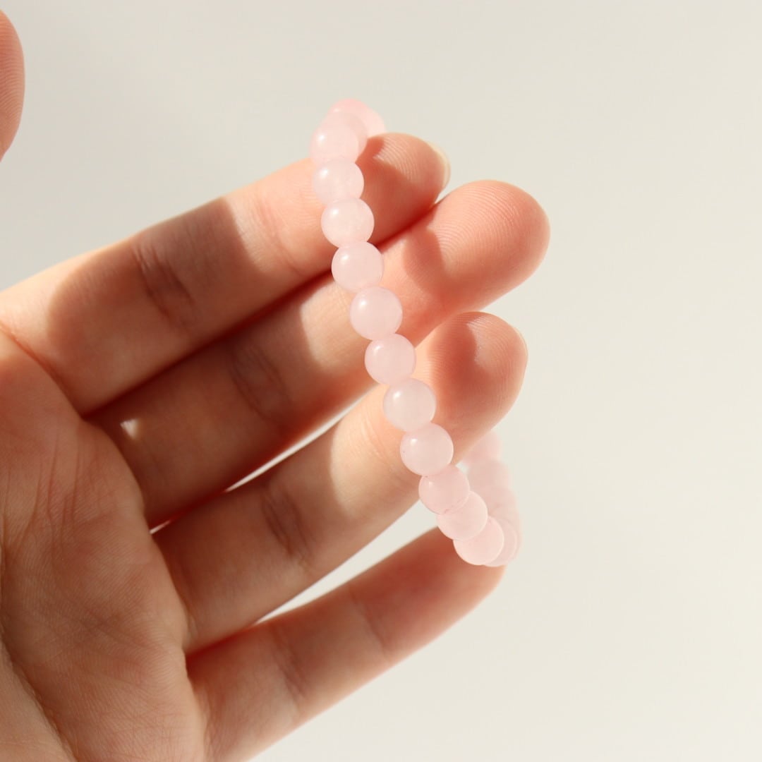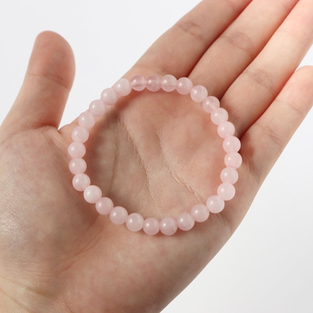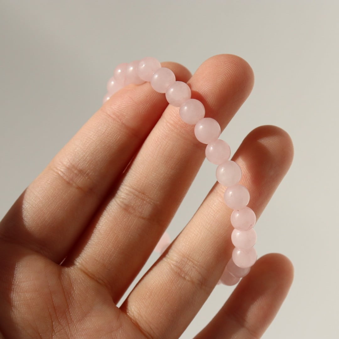 やわらかな桜色が連なる、ローズクォーツのブレスレット。