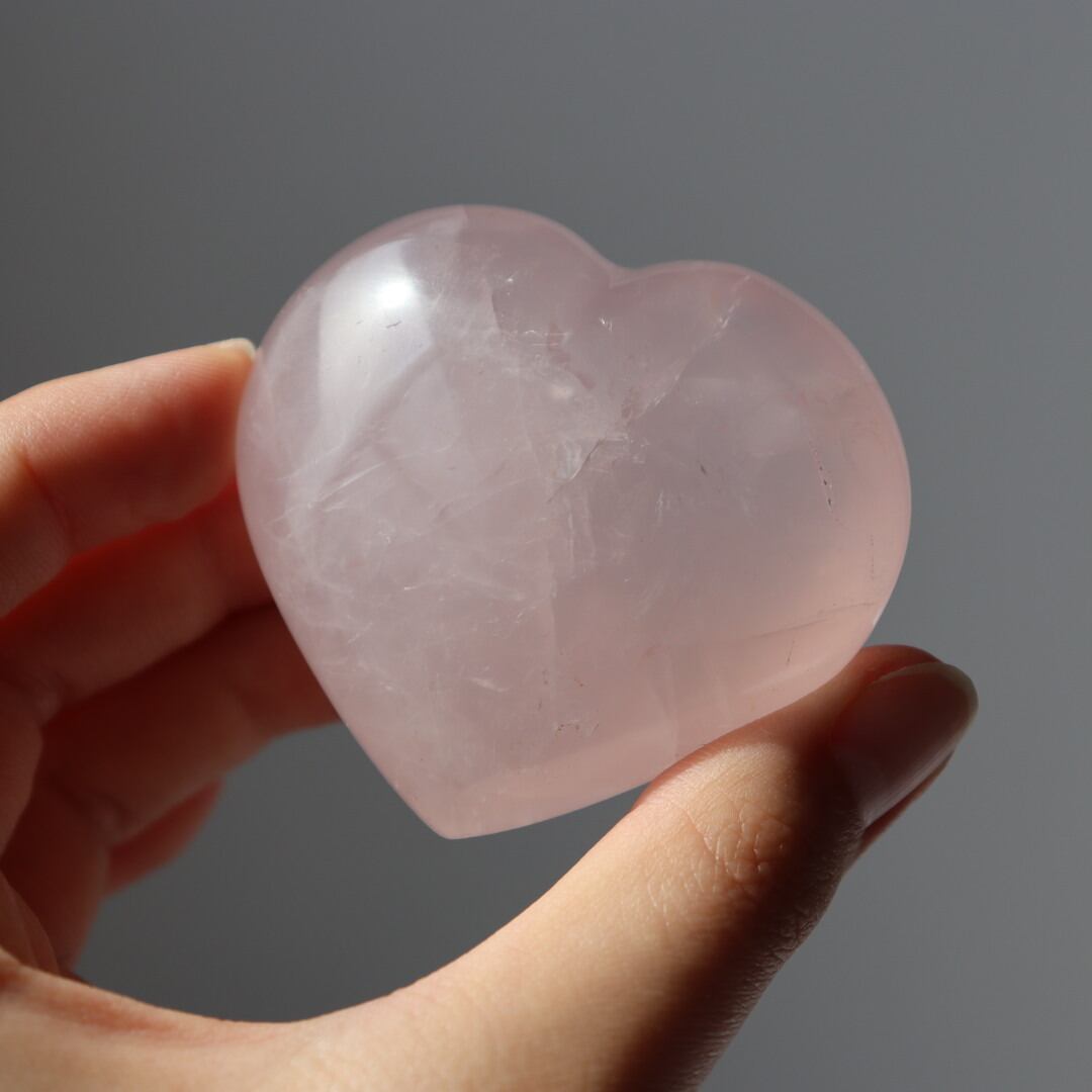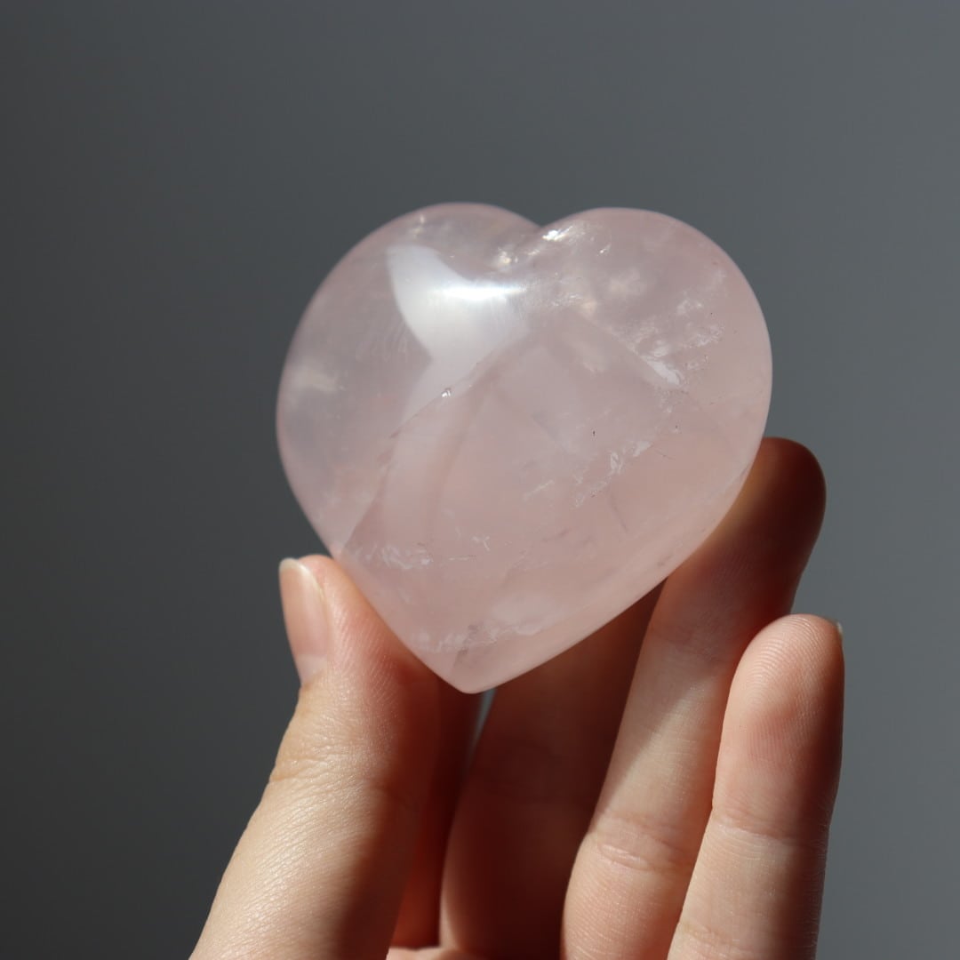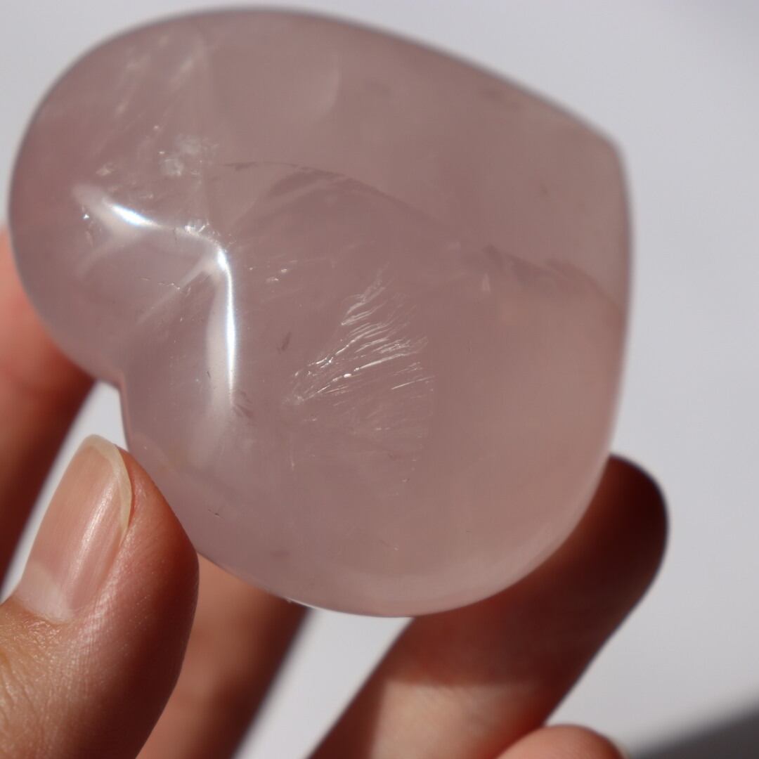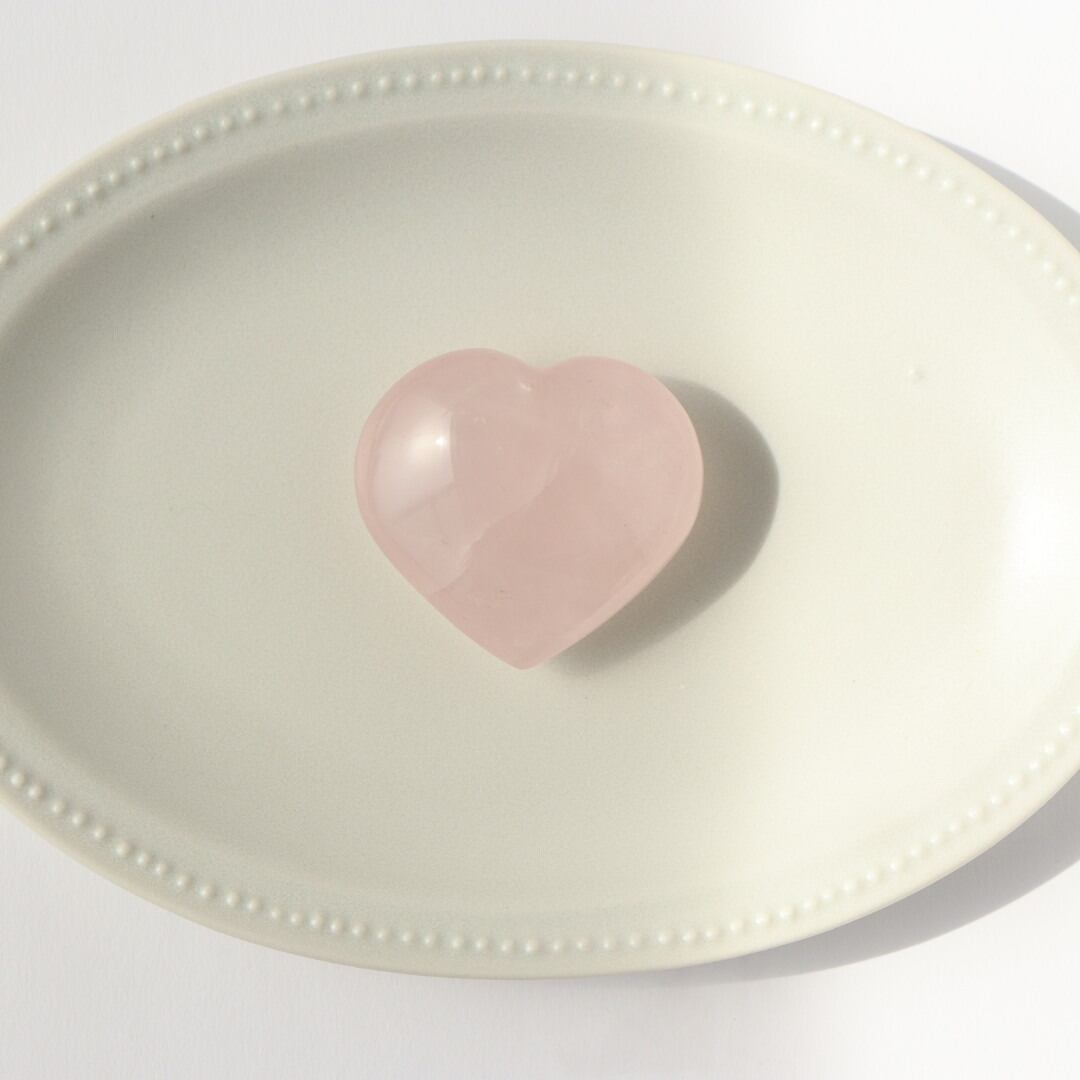 やわらかなピンクの中に、静かな光を内包したローズクォーツのハート。
