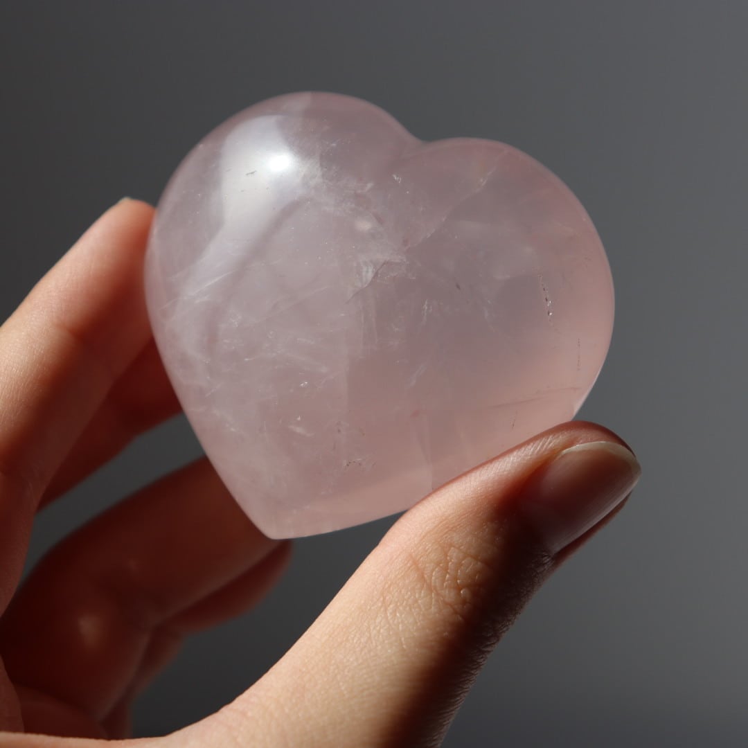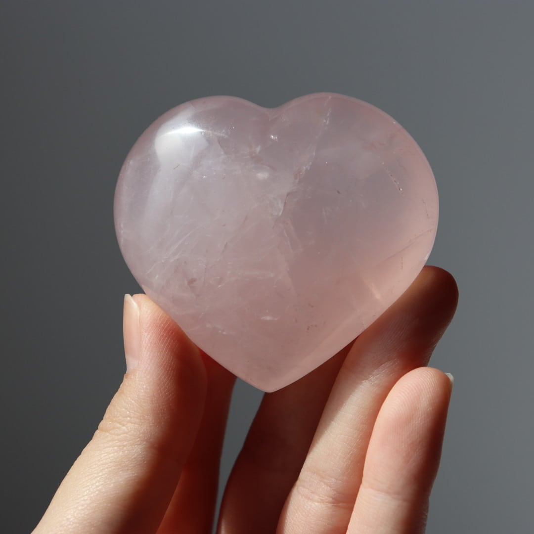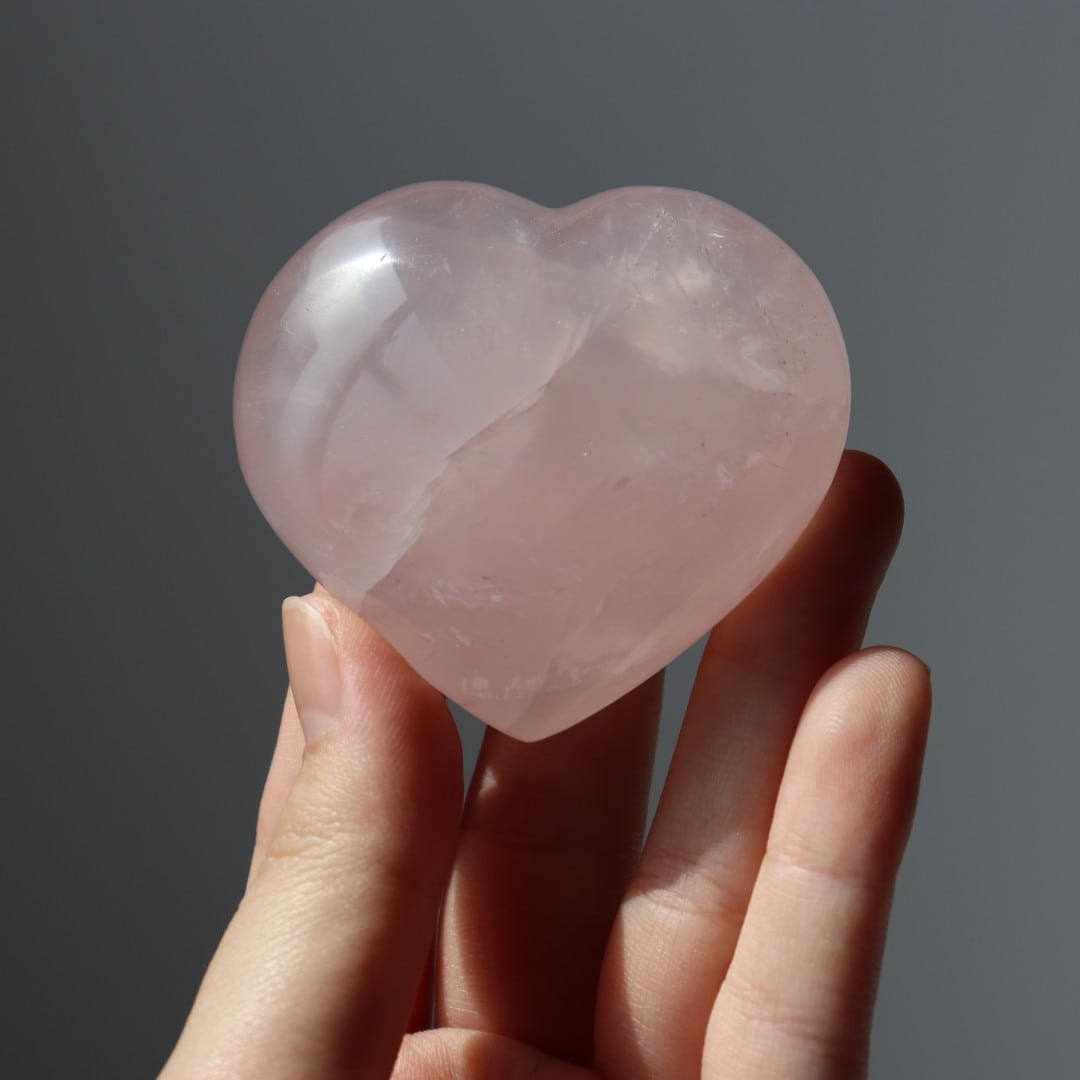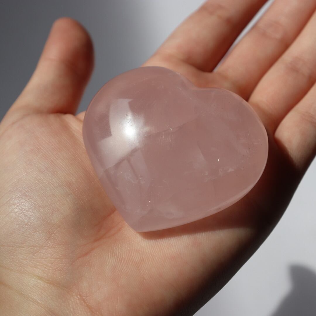 やわらかなピンクの中に、静かな光を内包したローズクォーツのハート。