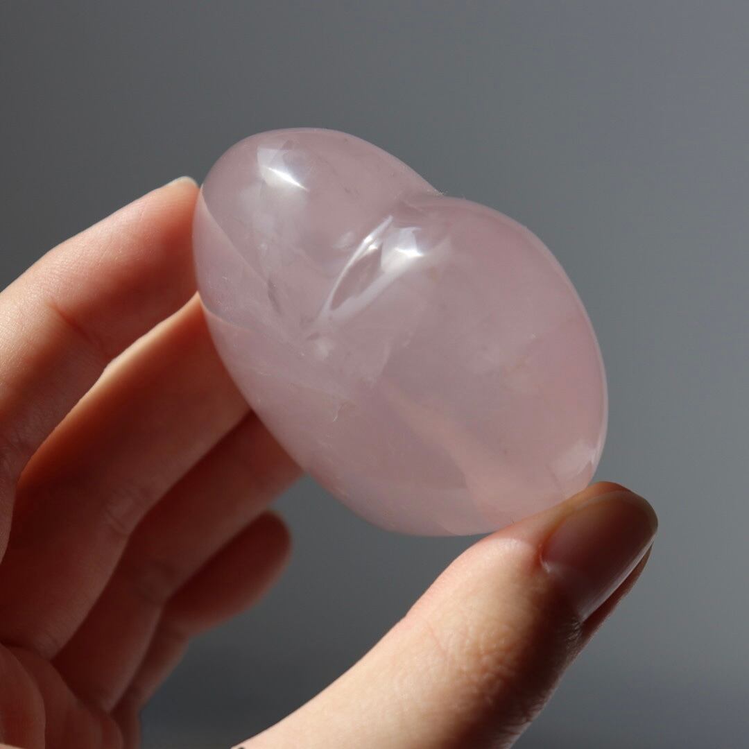 こちらは柔らかなほんのりピンクが愛らしい、ローズクォーツのハート。