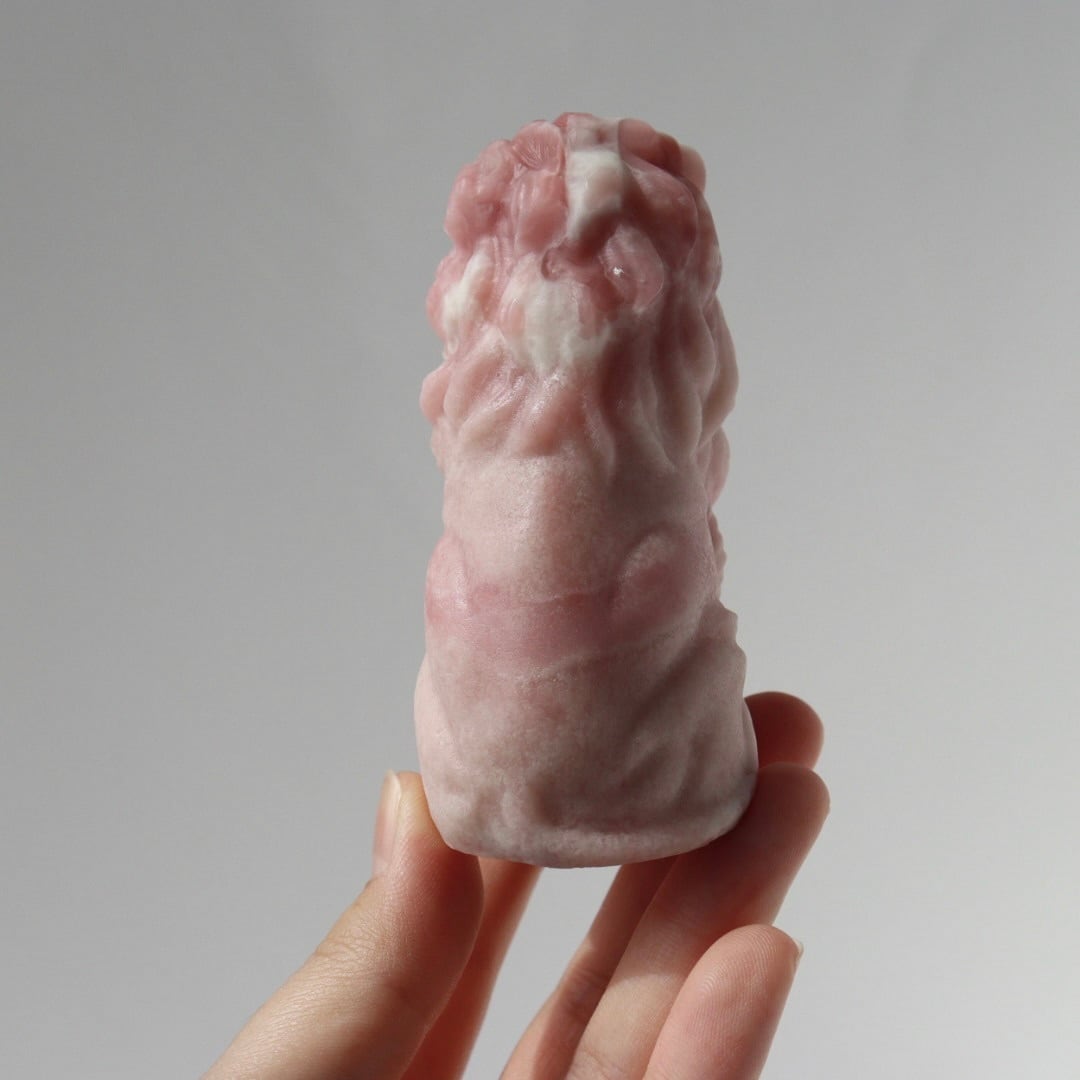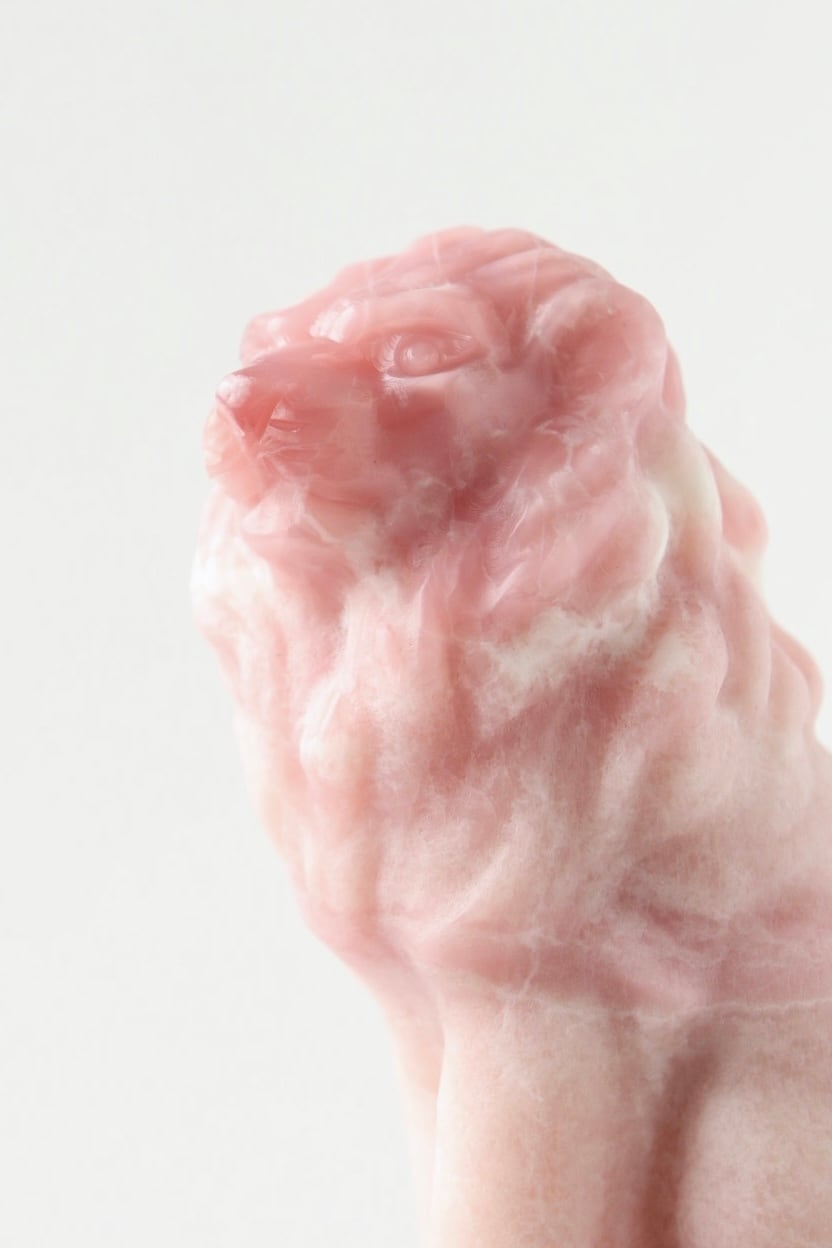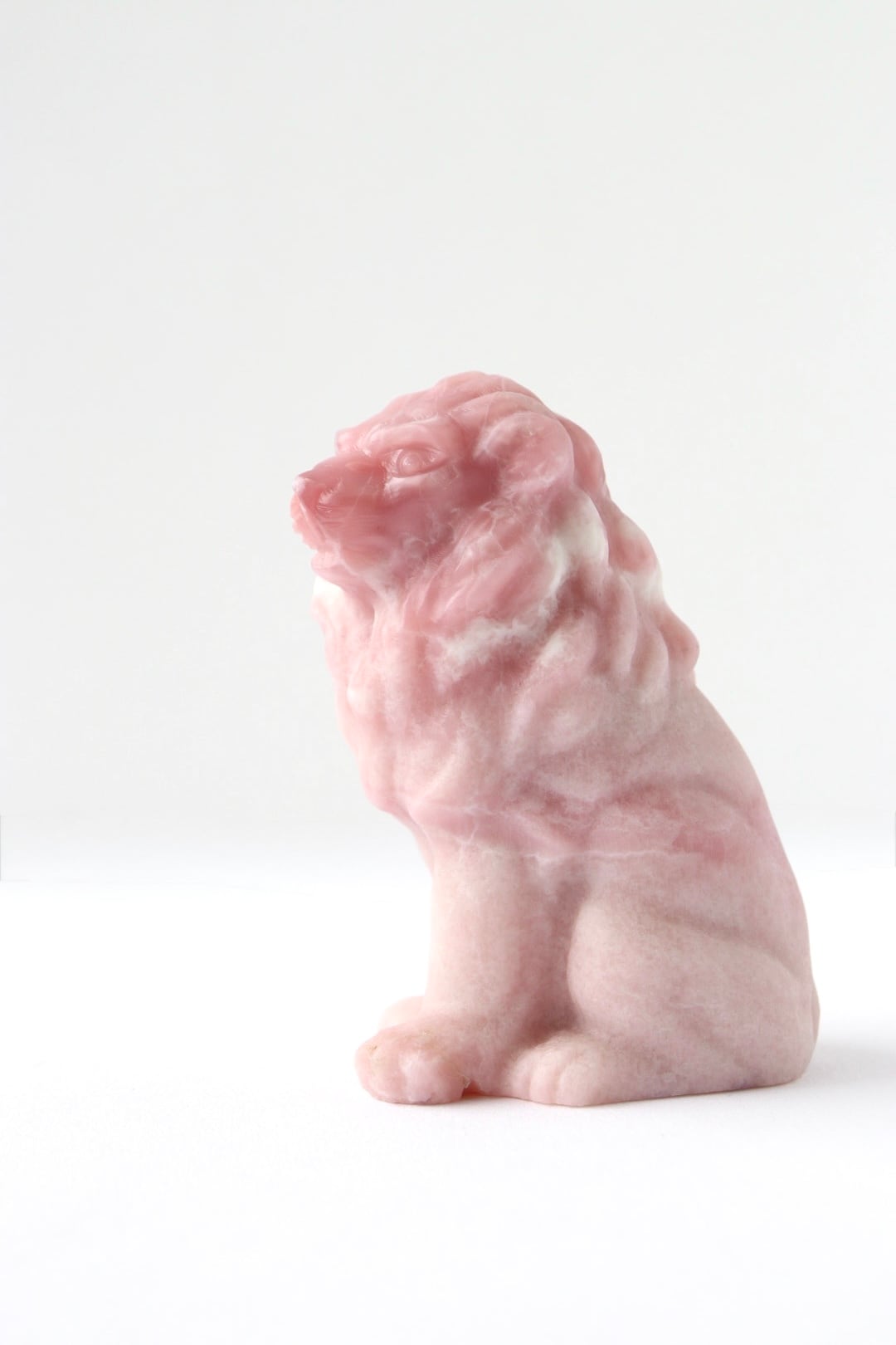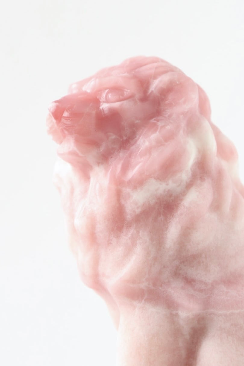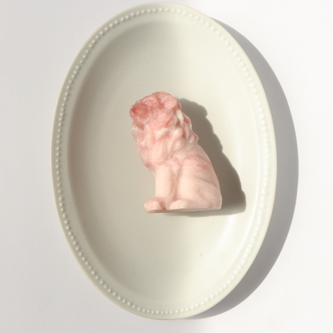 こちらは、やわらかなマットピンクをベースに、ホワイトや濃いピンクがアクセントとして現れたライオンのカービング。