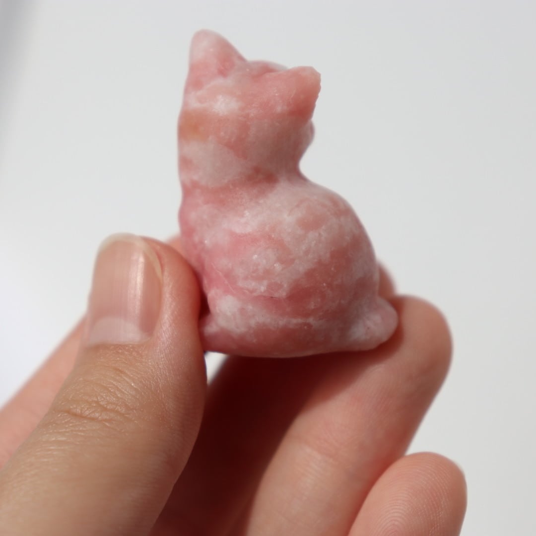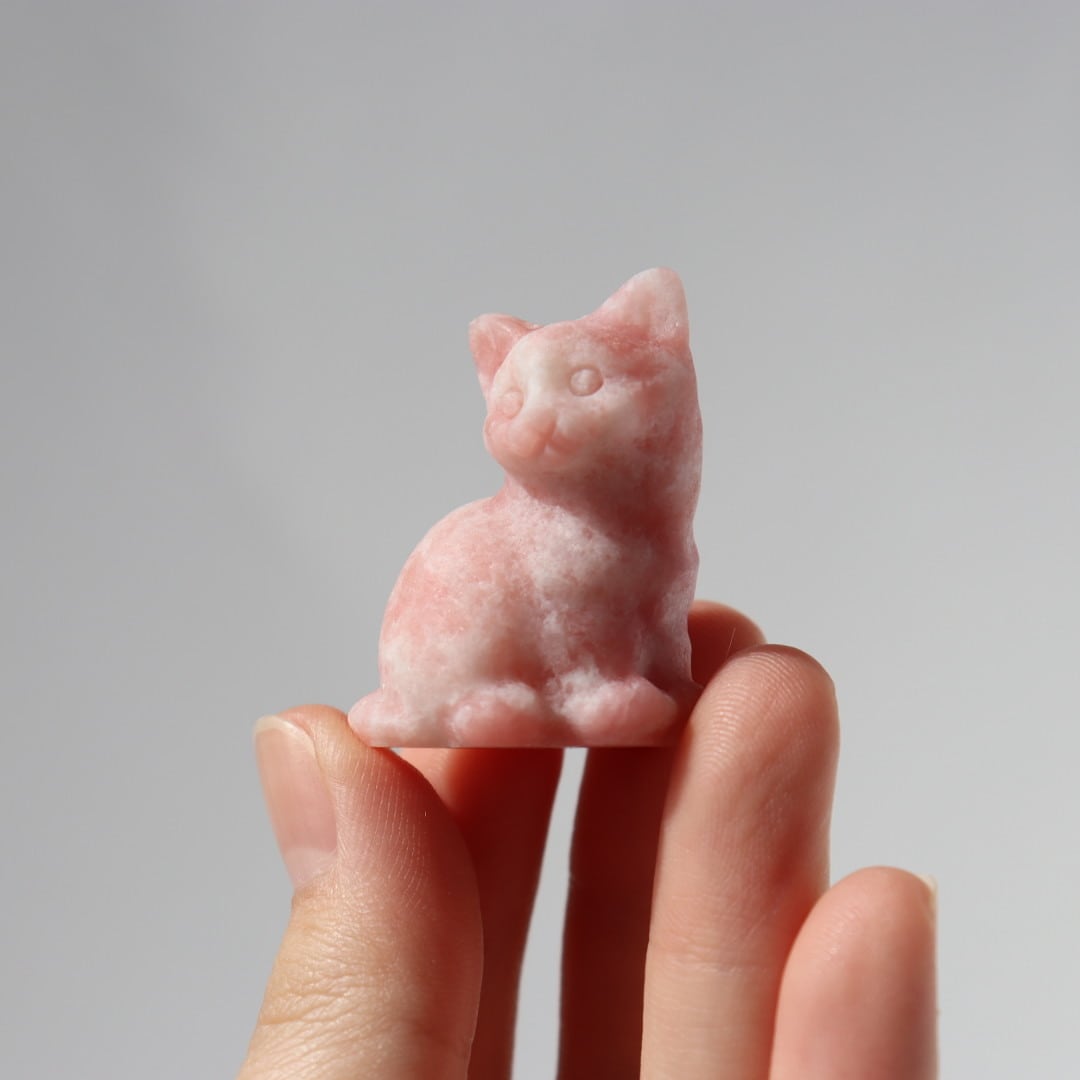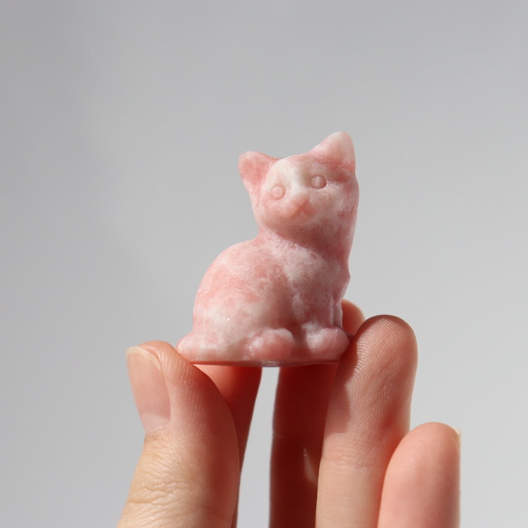 やわらかなピンクの中に、愛らしい表情が浮かび上がるピンクオパールのねこ。