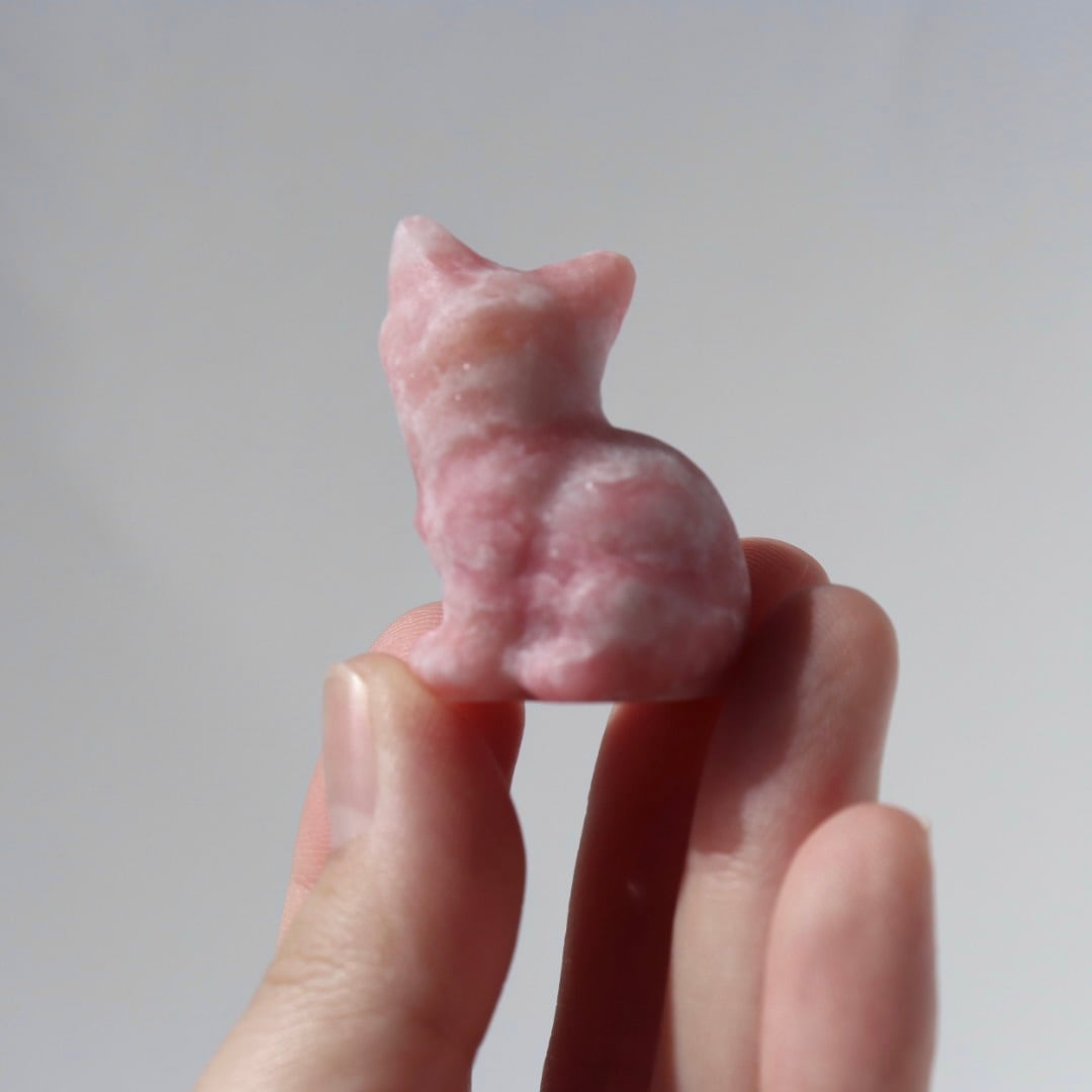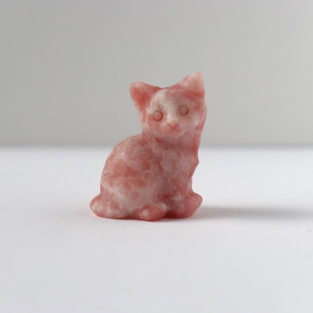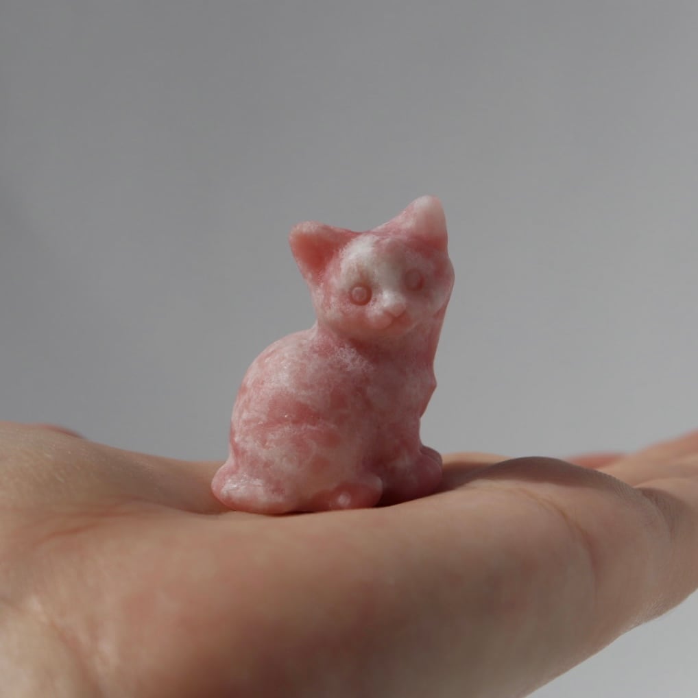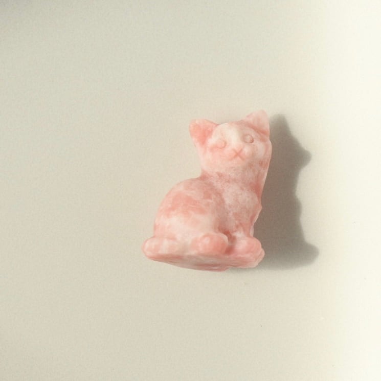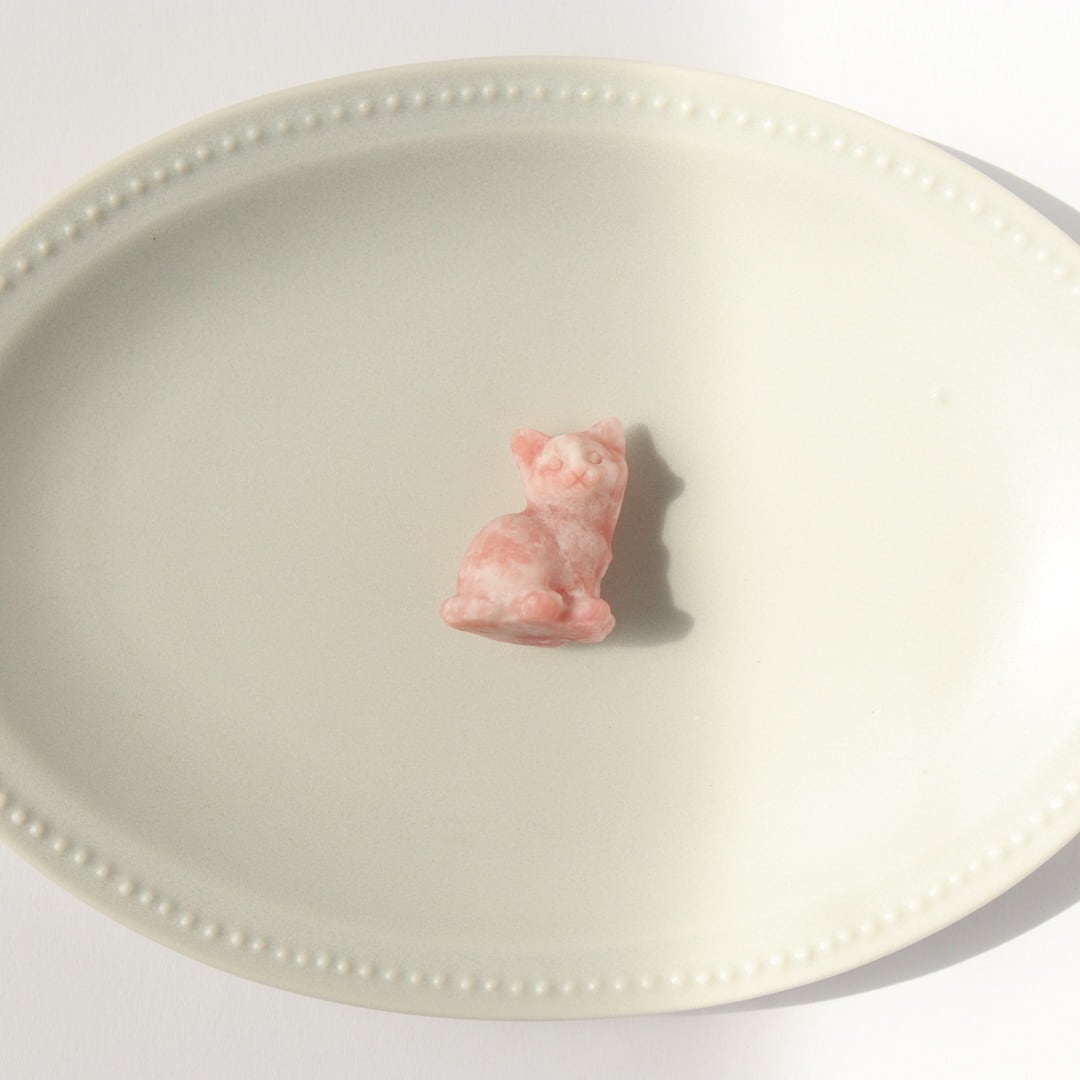 こちらは、淡いピンクをベースにホワイトが混ざり合ったまだら模様が特徴のねこのカービング。