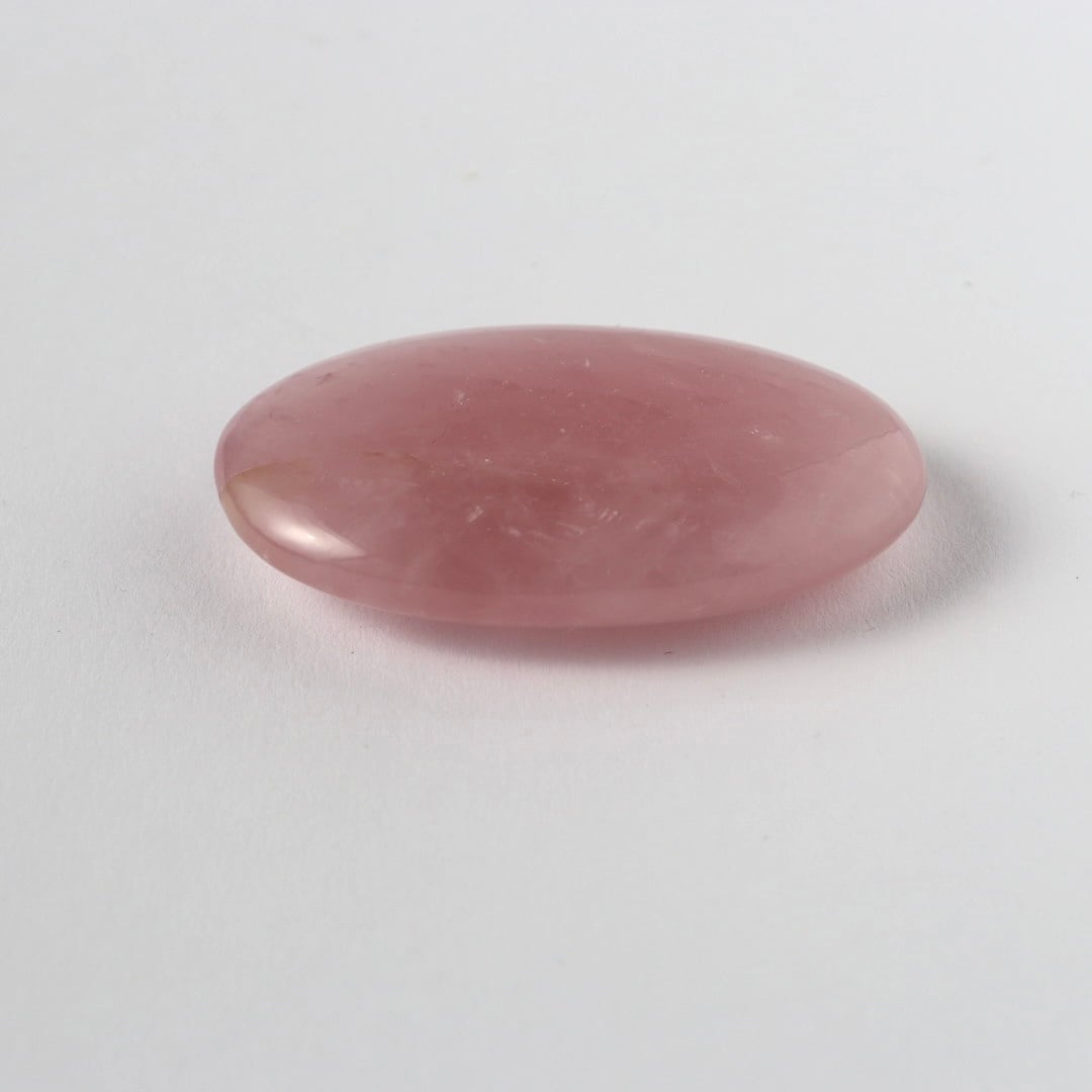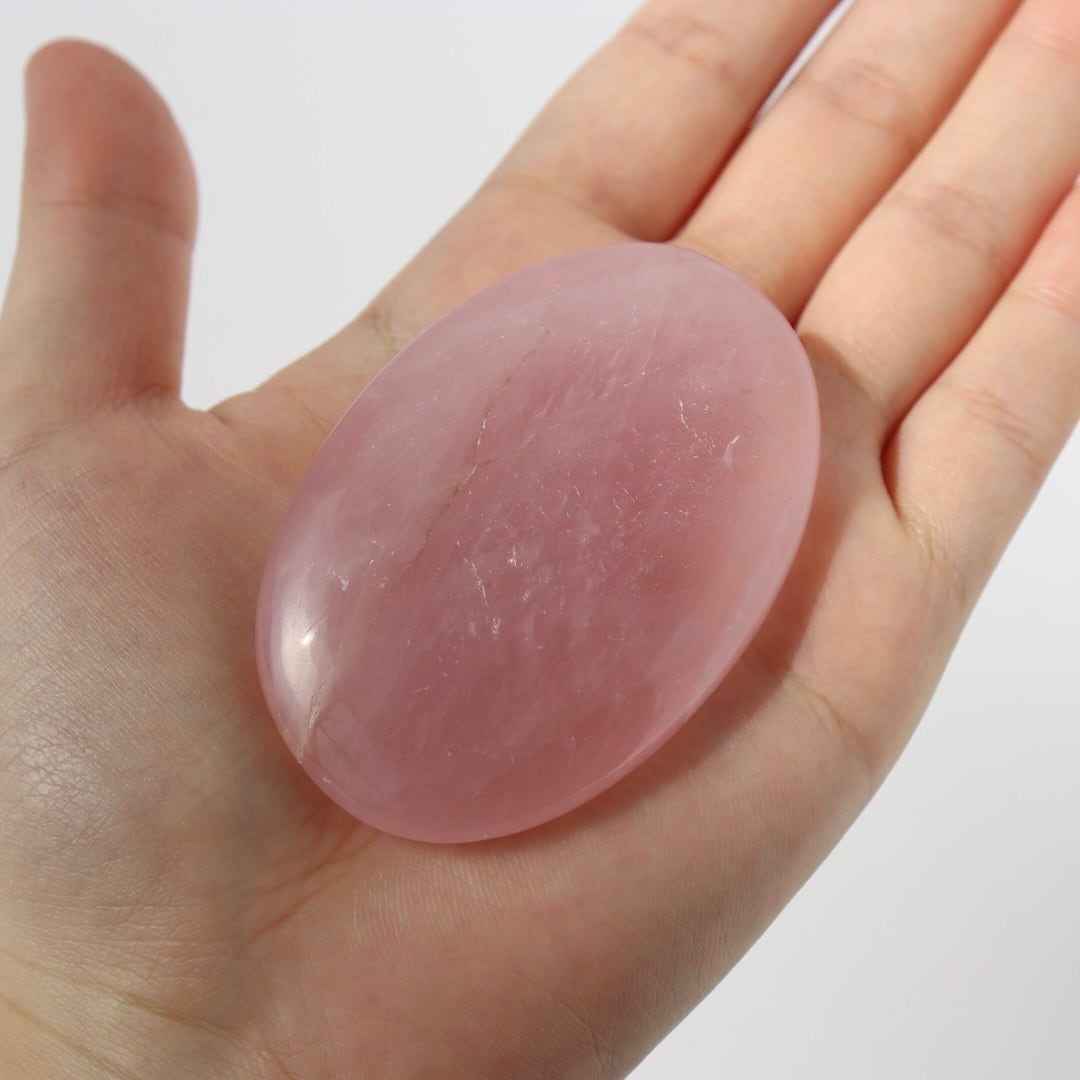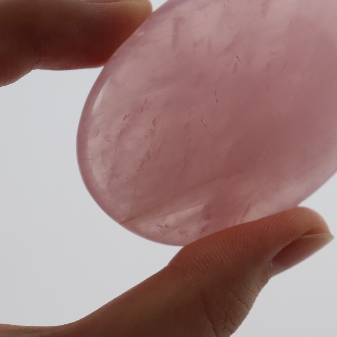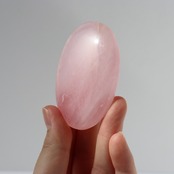 こちらは、ローズクォーツの中でも濃い発色が印象的な握り石。