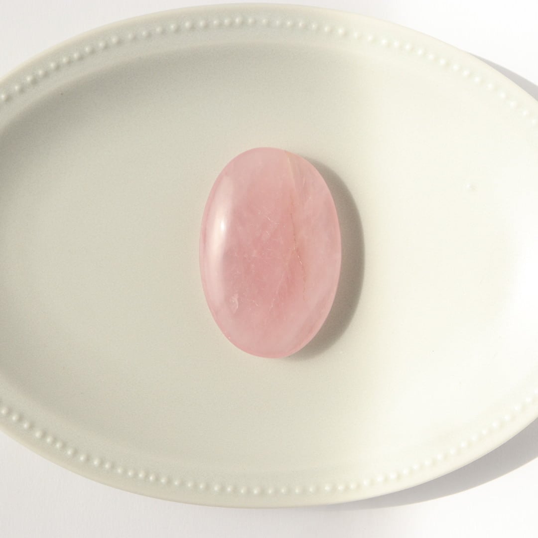 ローズクォーツは、和名を紅水晶といい、クォーツ(石英)の仲間に分類される天然石です。マンガンや鉄など他の鉱物の影響によって、やわらかなピンク色に発色するとされています。古くはビーズやカメオ、護符などに加工され、装飾品や祈りの道具として用いられていたそうです。愛情や優しさを象徴する石として広く知られており、透明度が高く発色の美しいものは宝石として扱われ、現在でも世界中で人気の高い天然石の一つです。