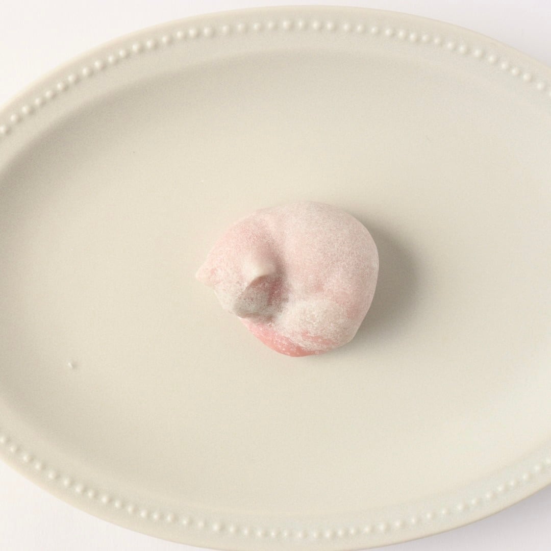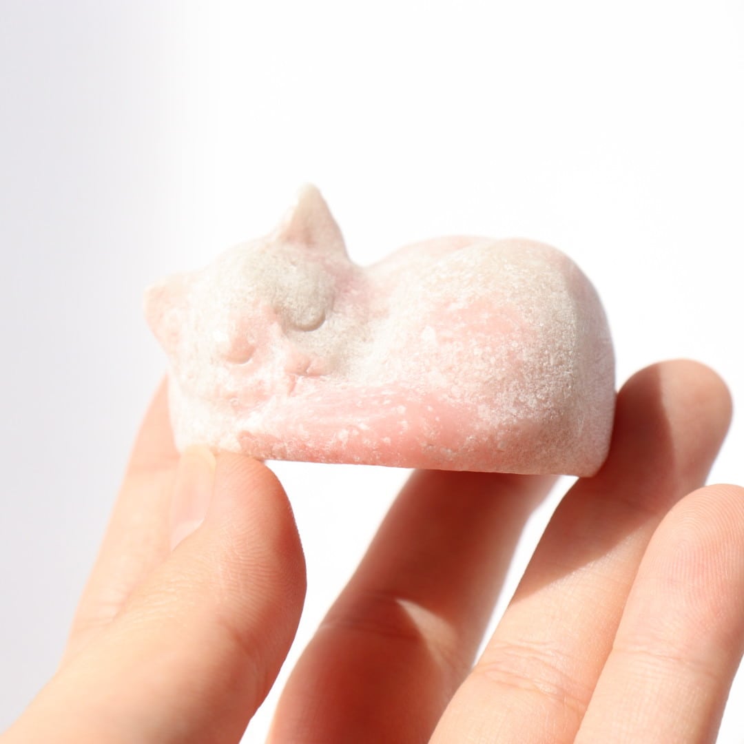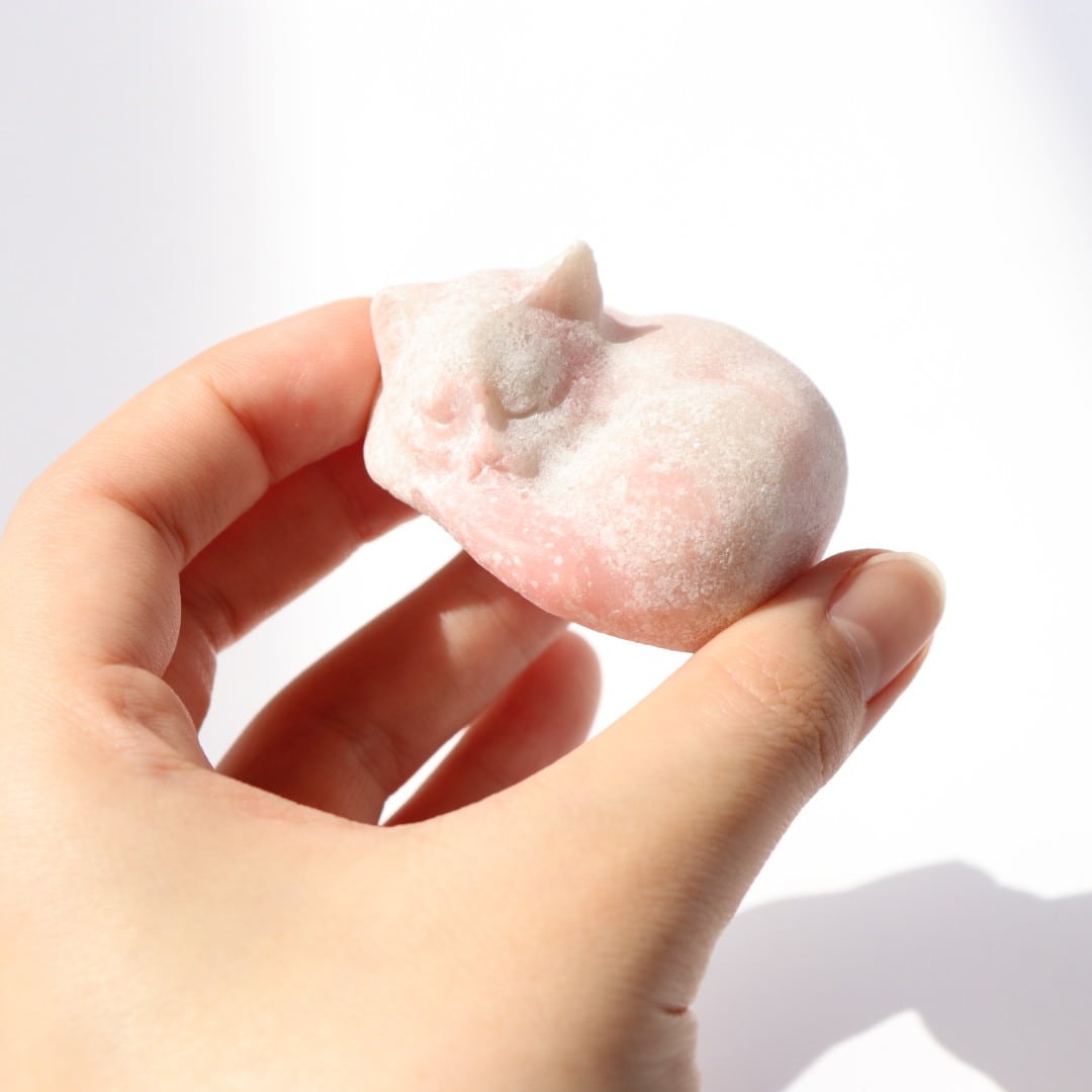 ふんわりとしたピンクとホワイトが柔らかく重なる、ピンクオパールの眠りねこ。