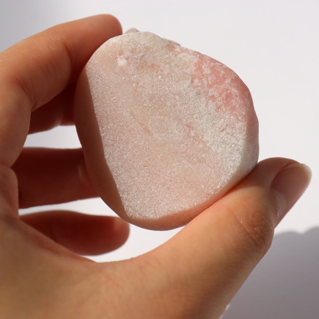 ピンクオパールは水分を含む非晶質の天然石で、マット気味のさらりとした質感と、優しい色のグラデーションが特徴。