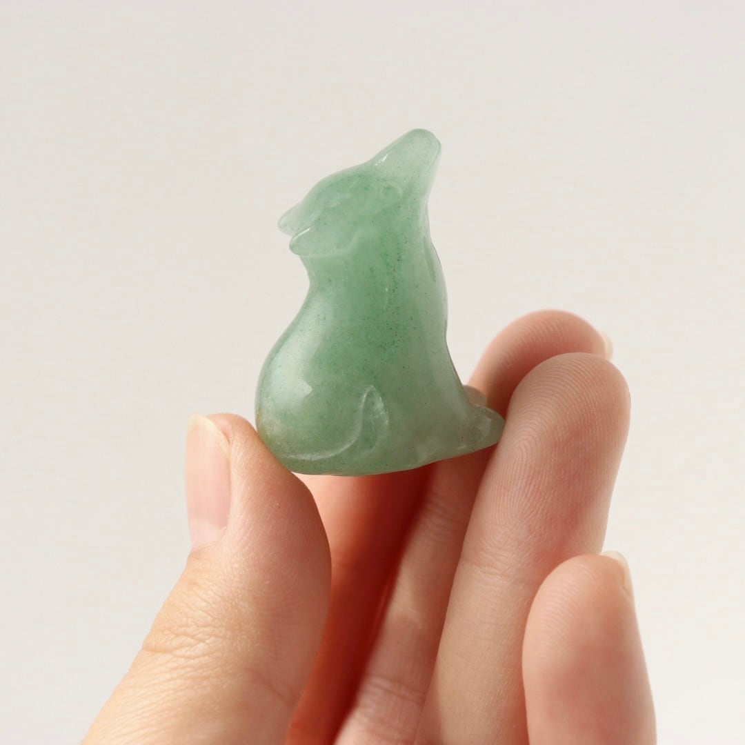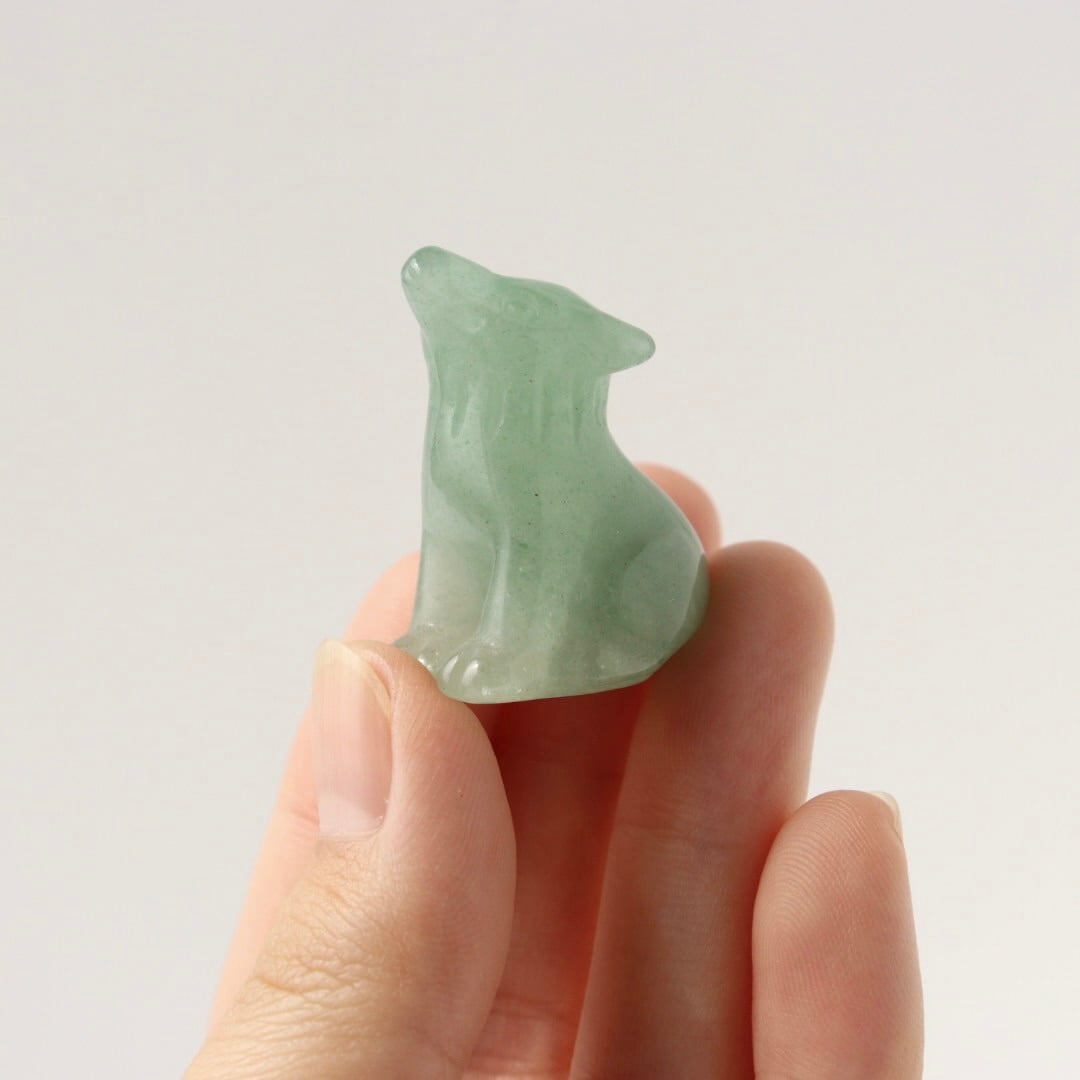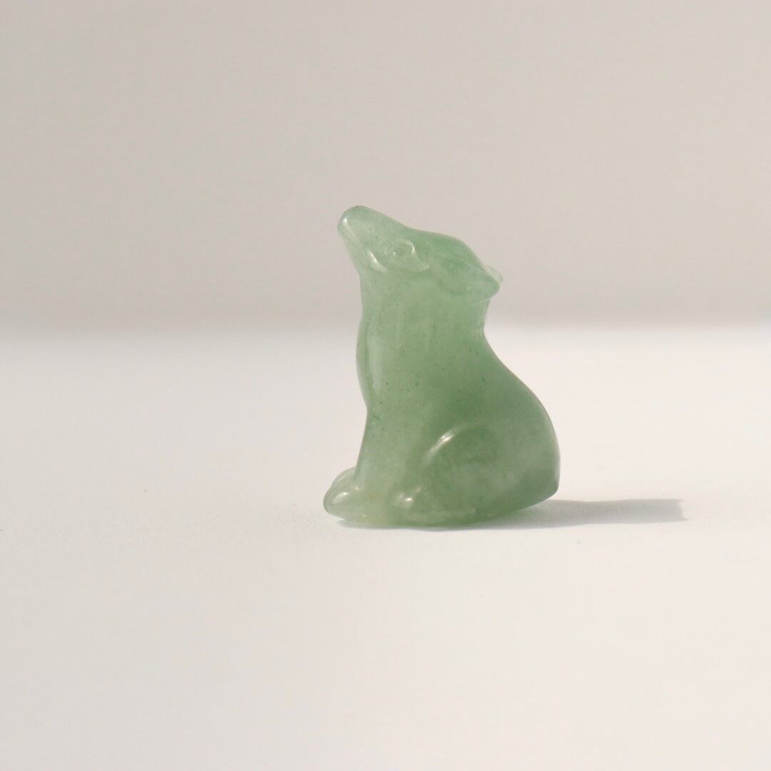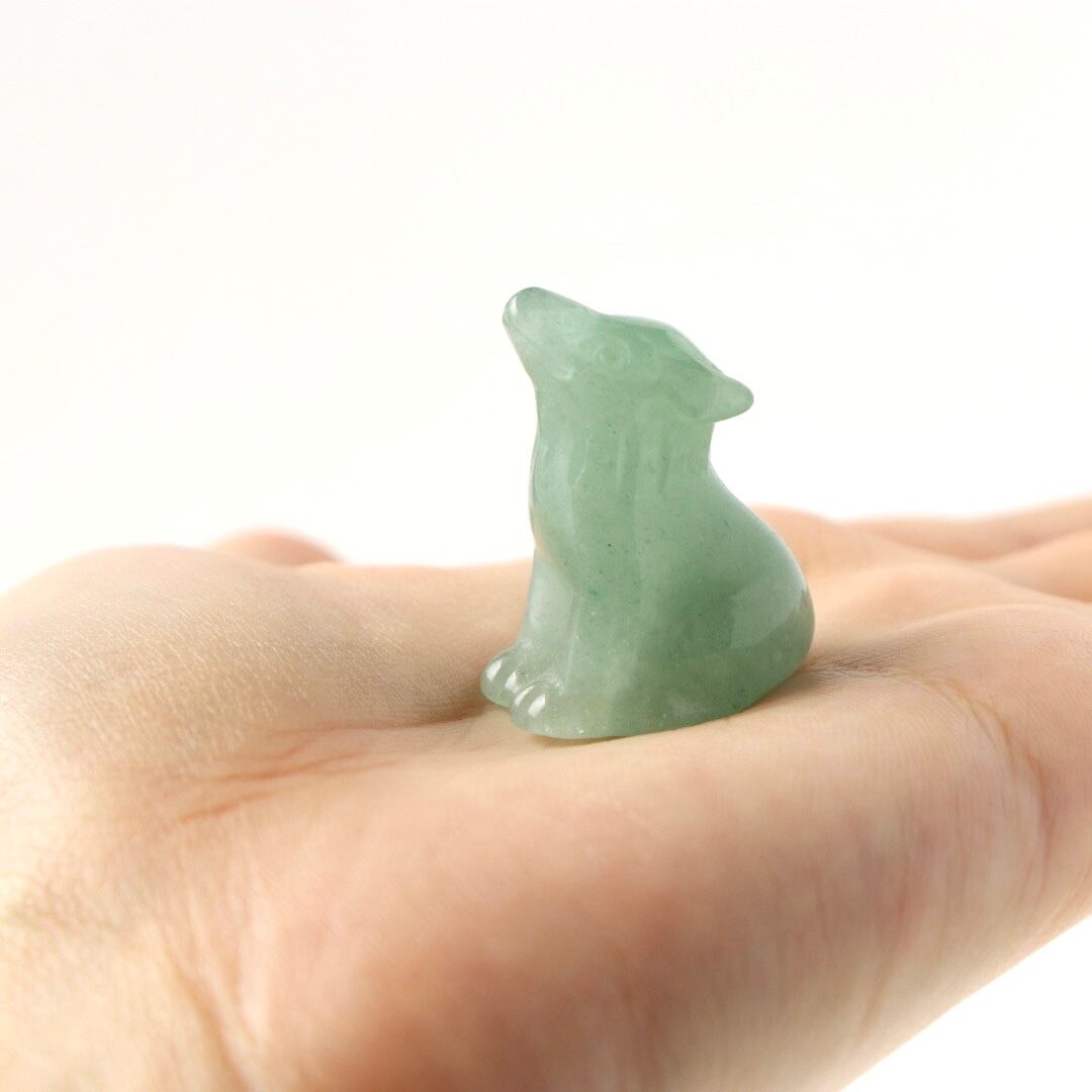 柔らかなグリーンの発色と繊細なカービングが美しい、グリーンアベンチュリンの狼。