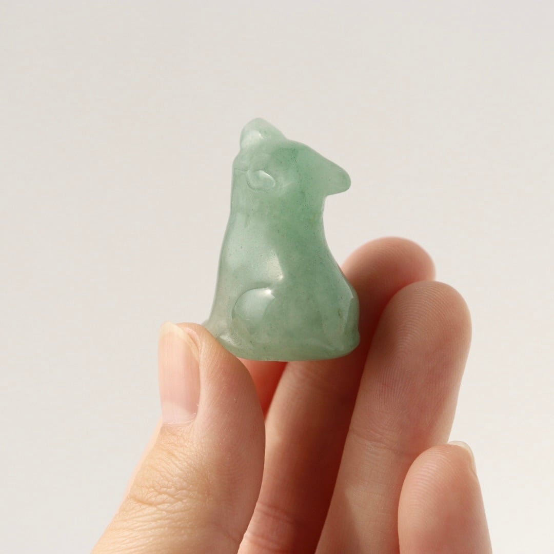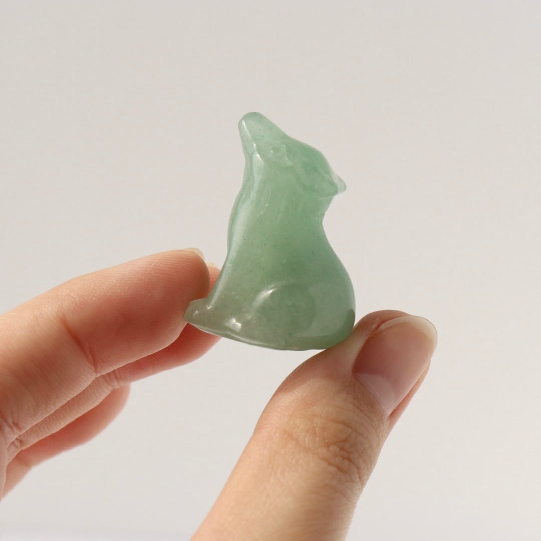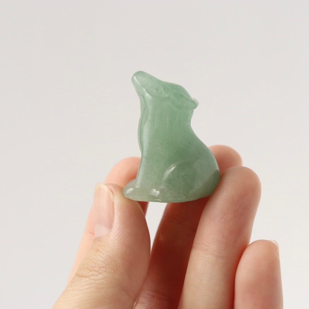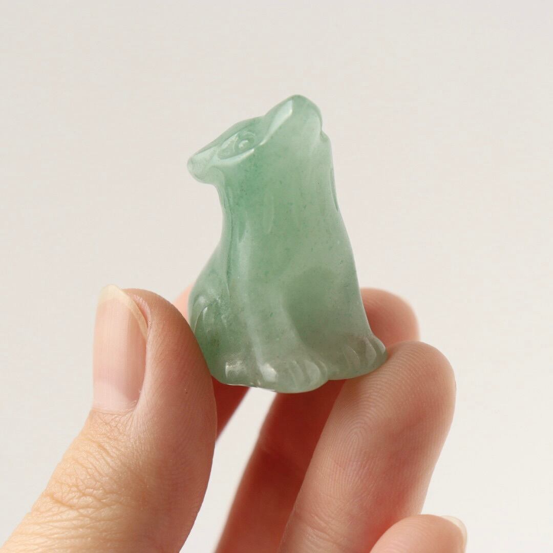 柔らかなグリーンの発色と繊細なカービングが美しい、グリーンアベンチュリンの狼。