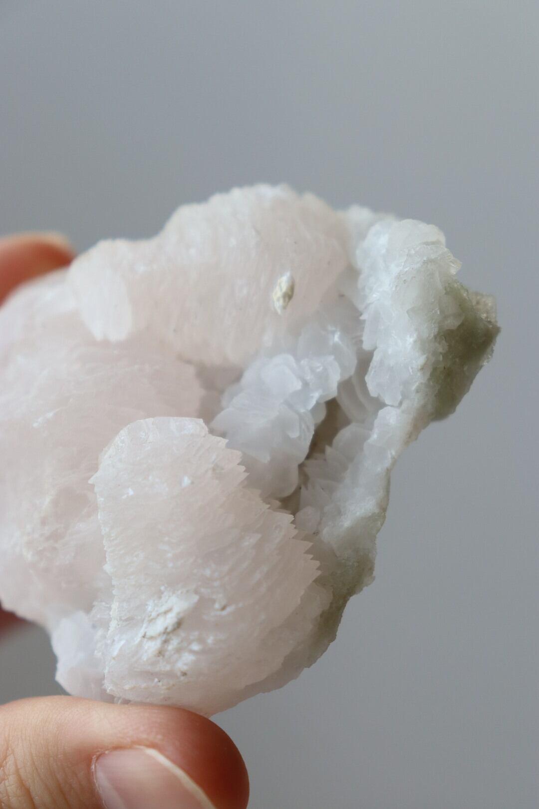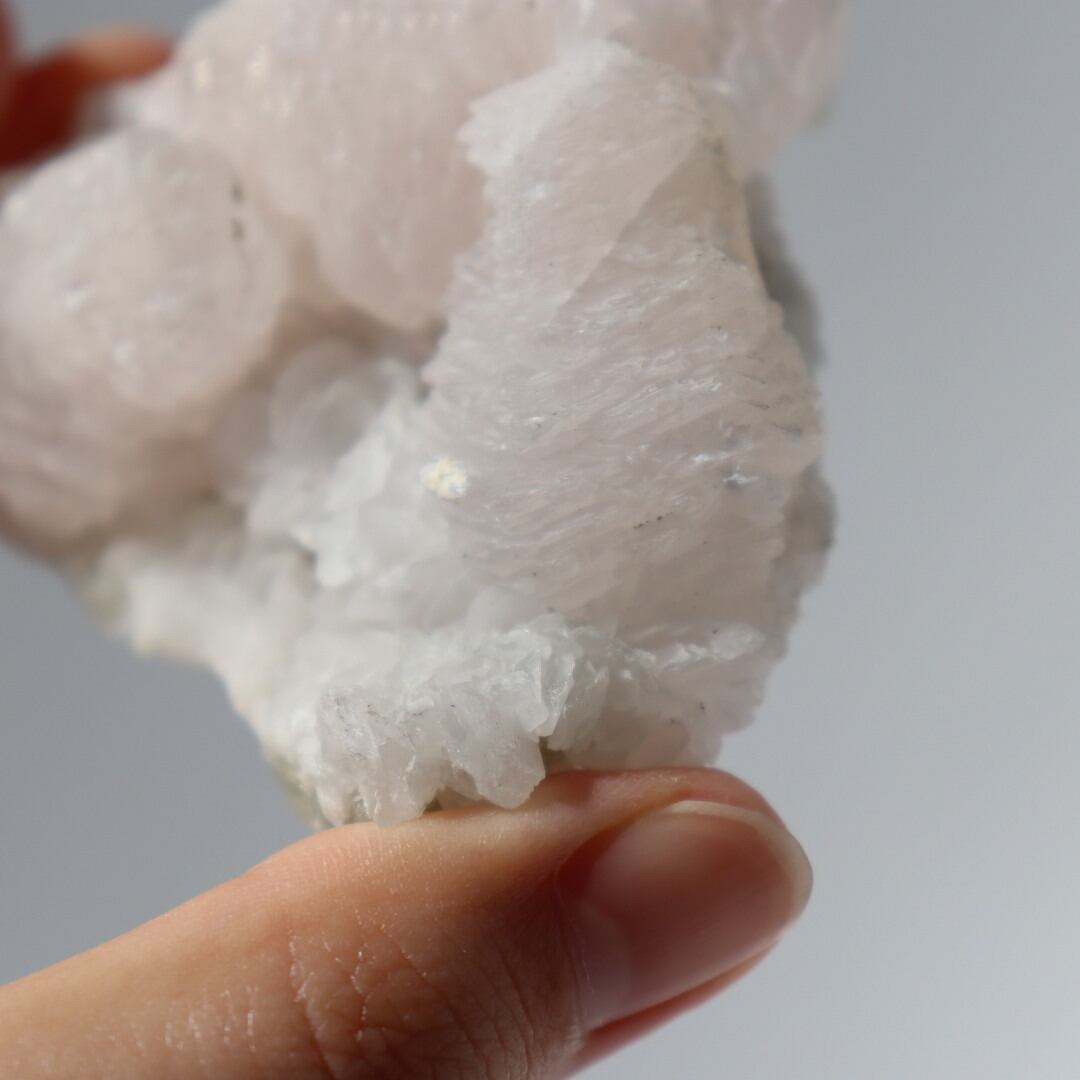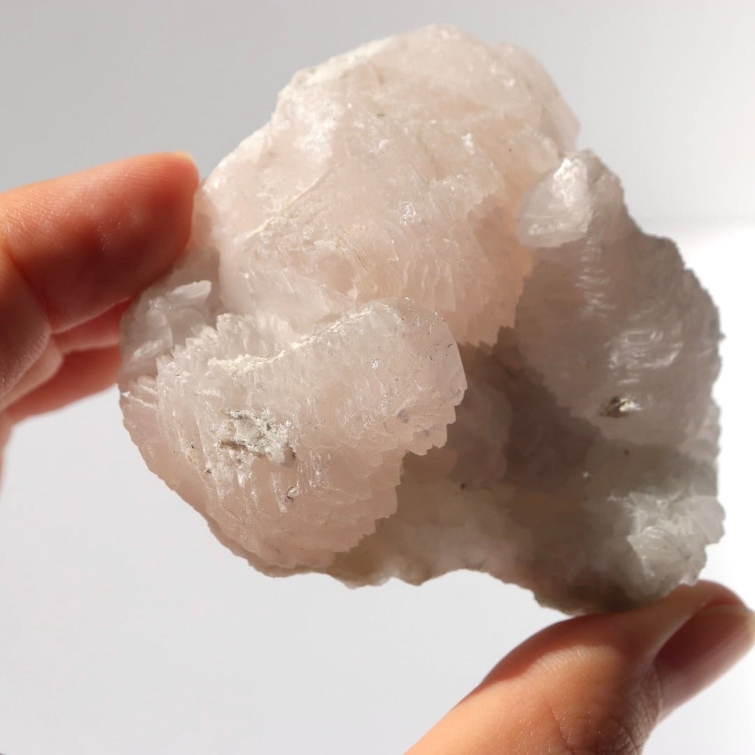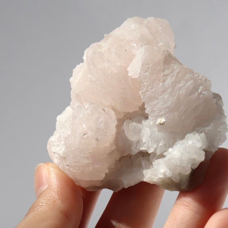 こちらは淡いピンクの結晶が幾重にも重なった原石。