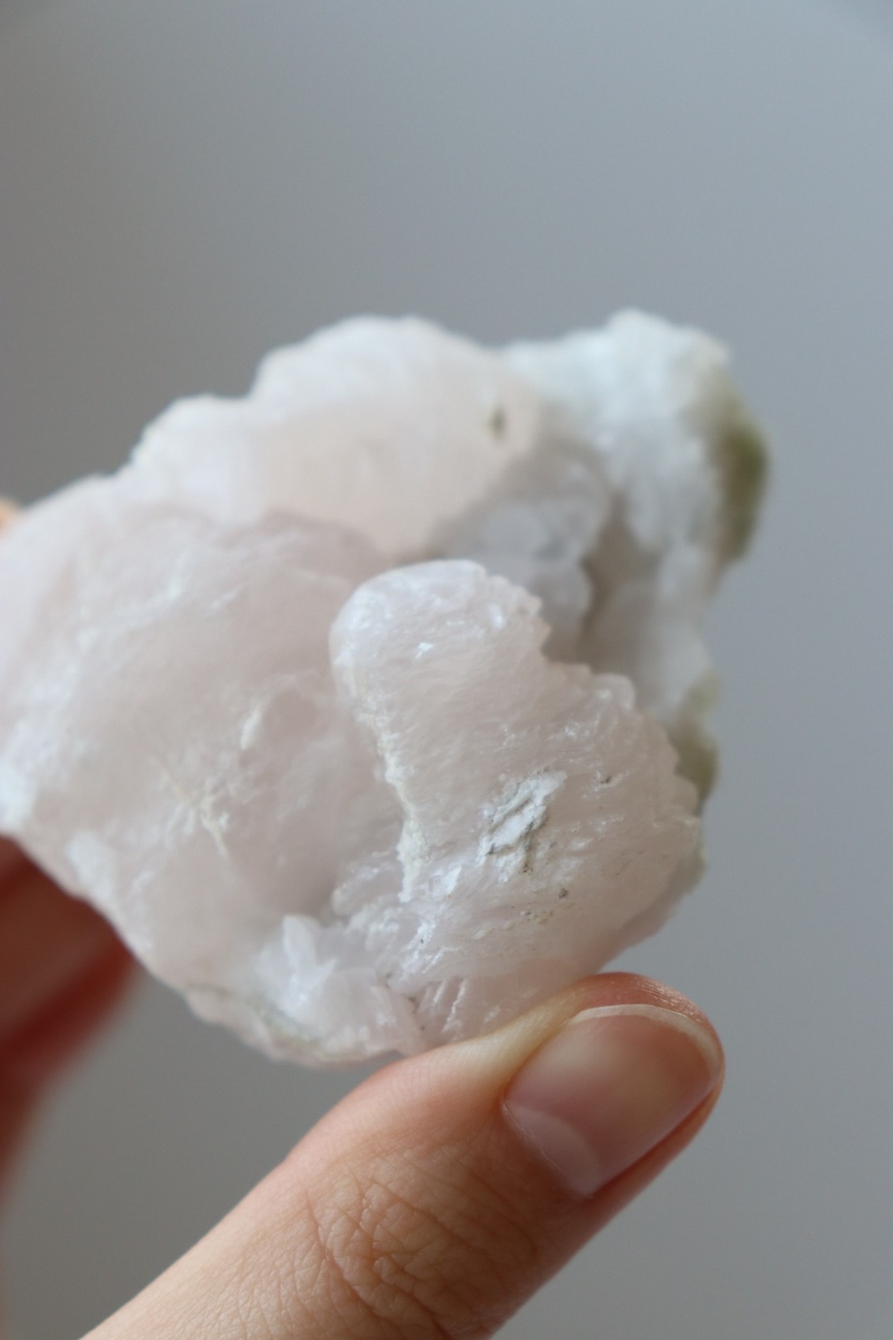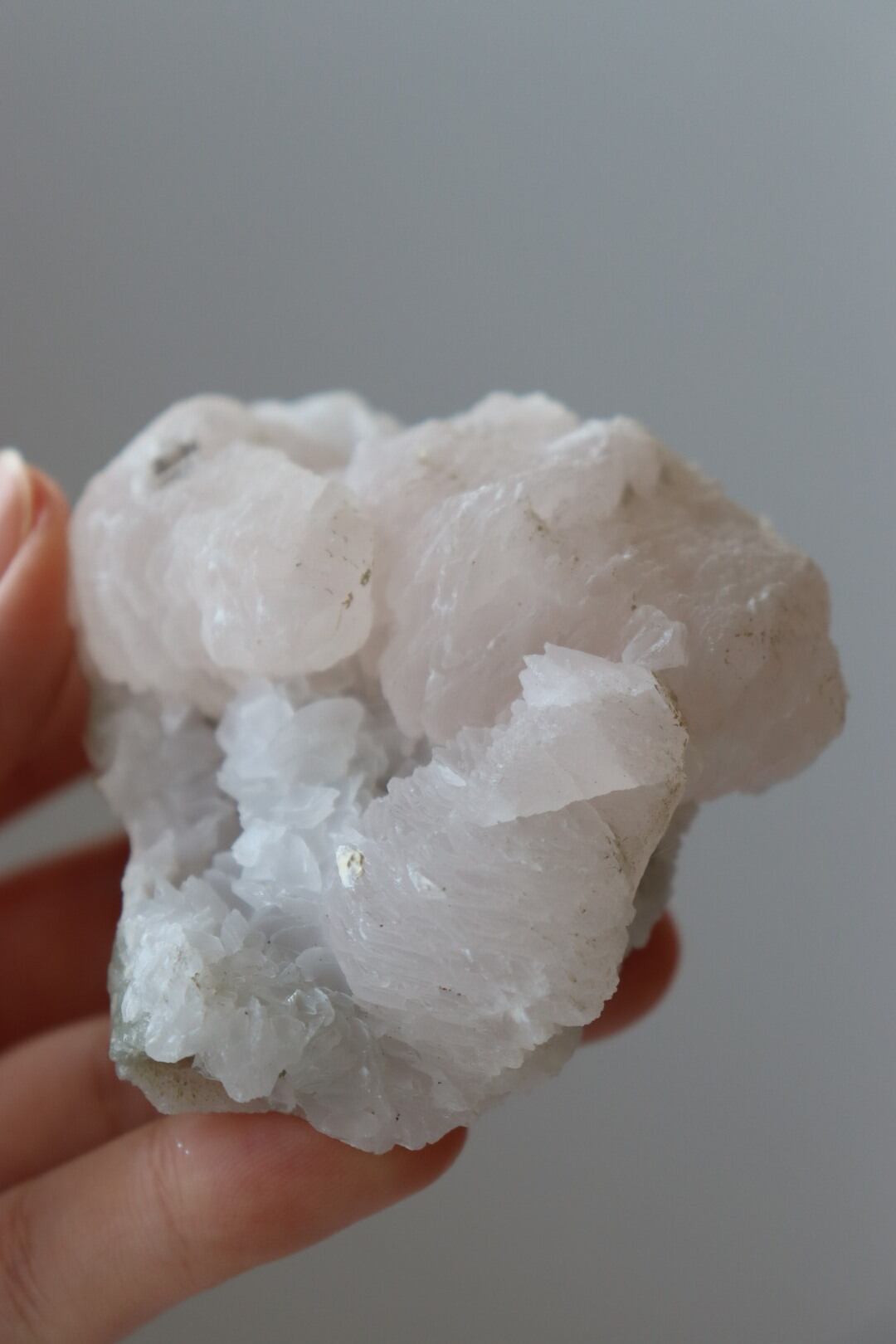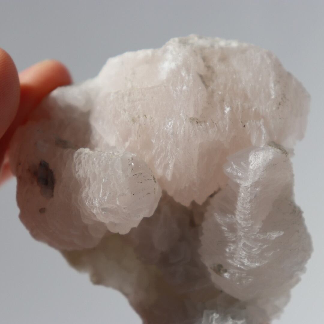 こちらは淡いピンクの結晶が幾重にも重なった原石。