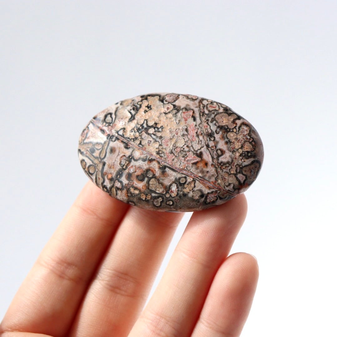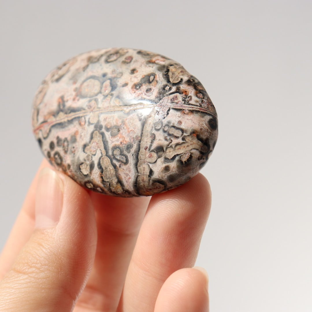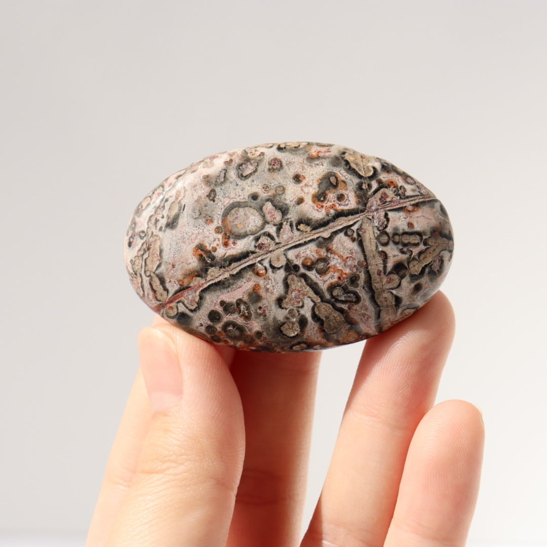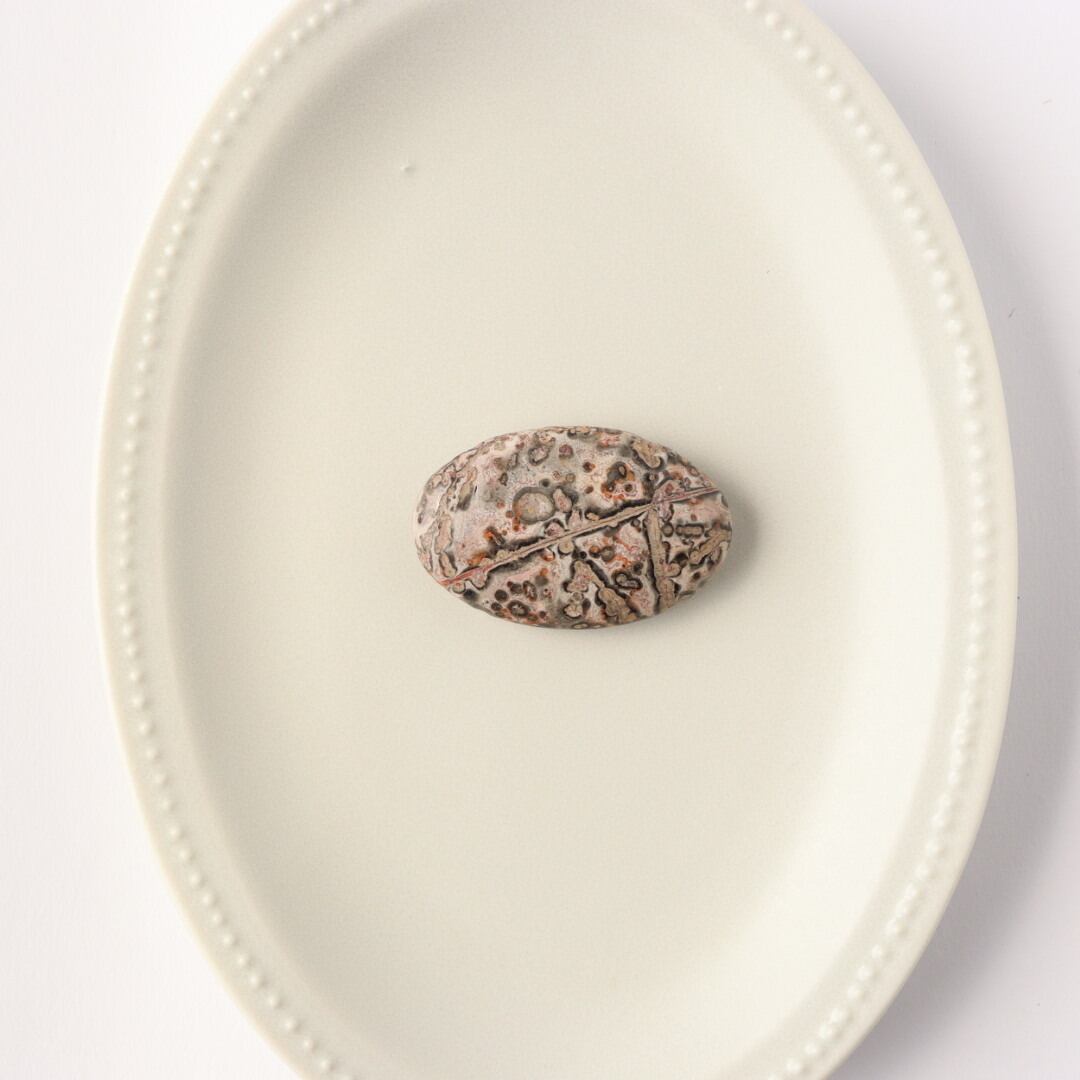 中でもレオパードジャスパーは、ヒョウ柄を思わせる斑点模様から名付けられた石で、鉄分などの影響によりブラウンやレッド、ピンク系の模様がまだら状に現れます。自然の中で形成された有機的な模様が、そのまま石の表面に現れるのが魅力です。