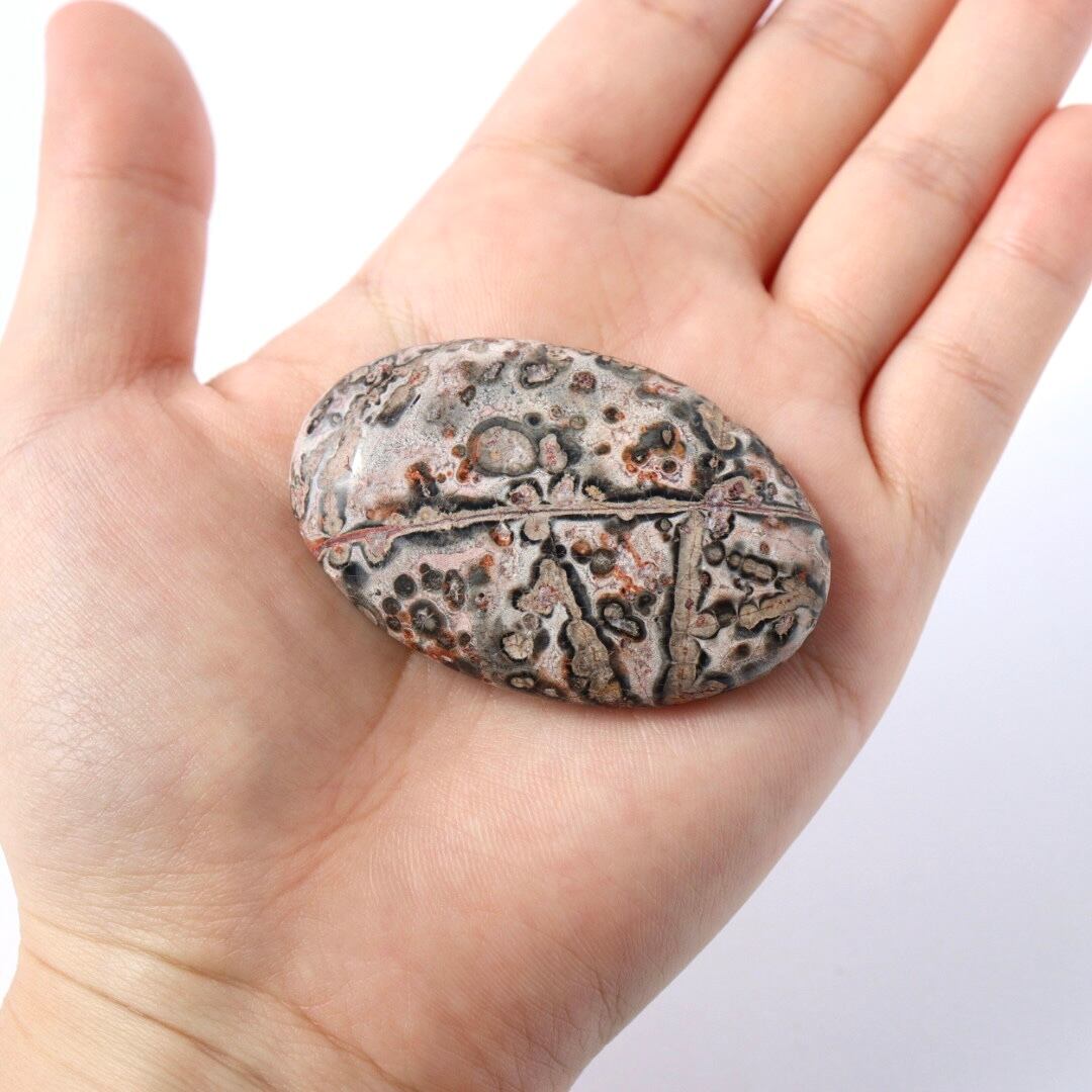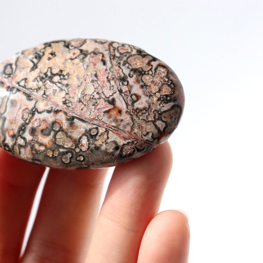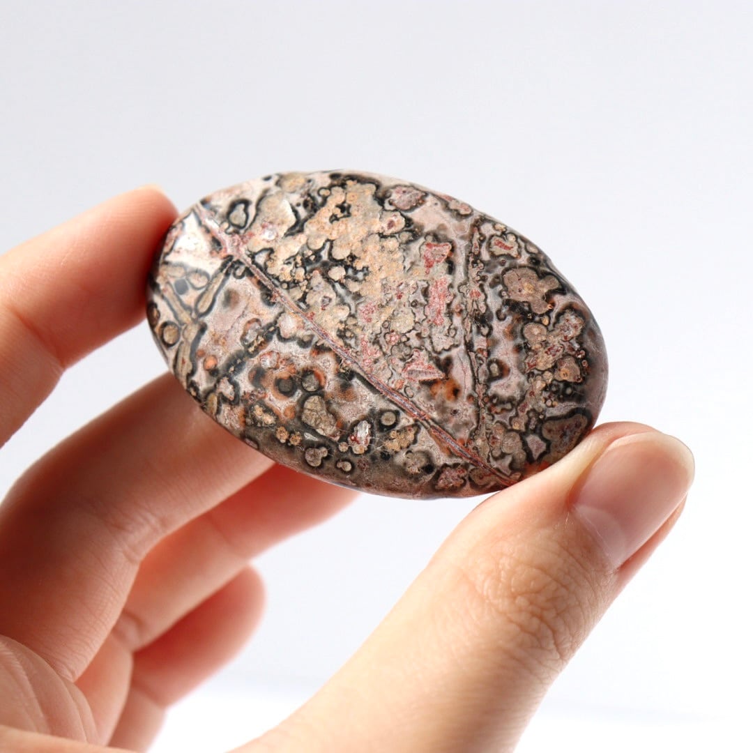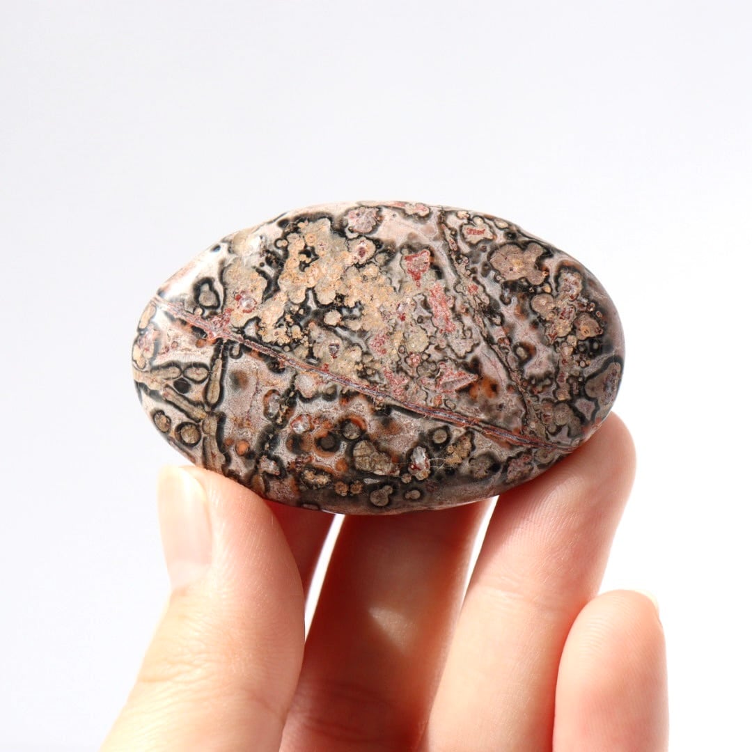 中でもレオパードジャスパーは、ヒョウ柄を思わせる斑点模様から名付けられた石で、鉄分などの影響によりブラウンやレッド、ピンク系の模様がまだら状に現れます。自然の中で形成された有機的な模様が、そのまま石の表面に現れるのが魅力です。