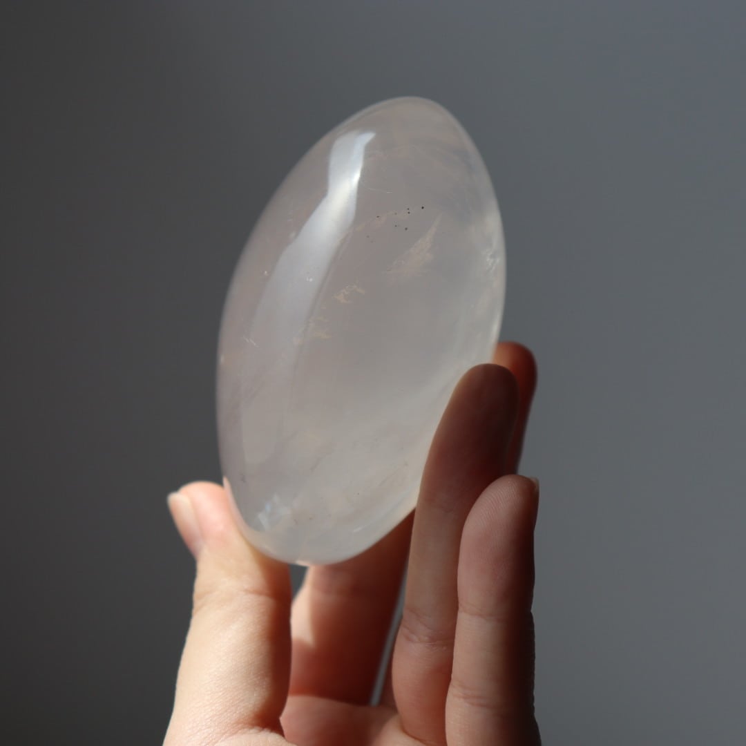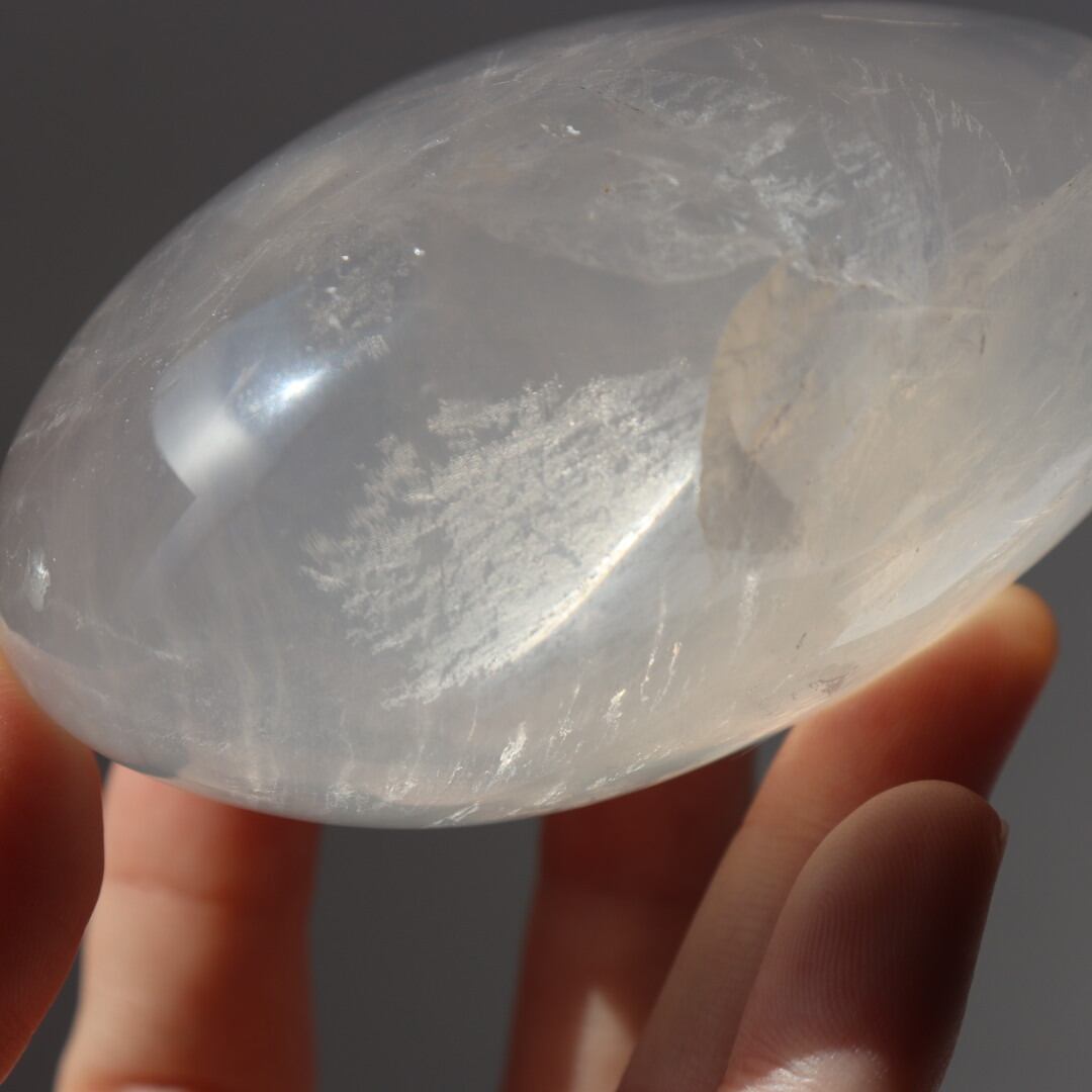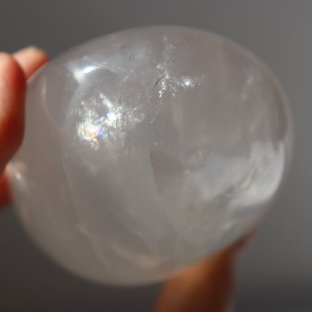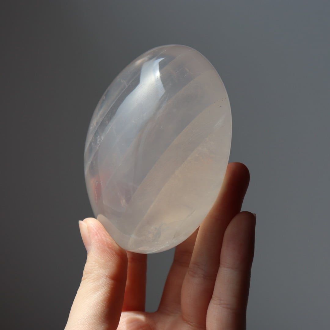 透き通る結晶が美しいアイスローズクォーツの握り石。