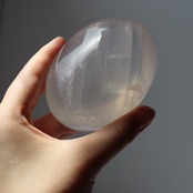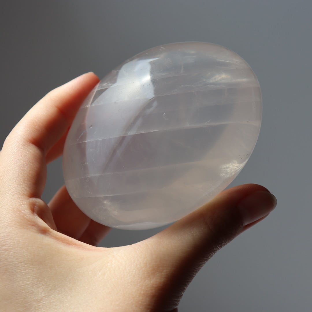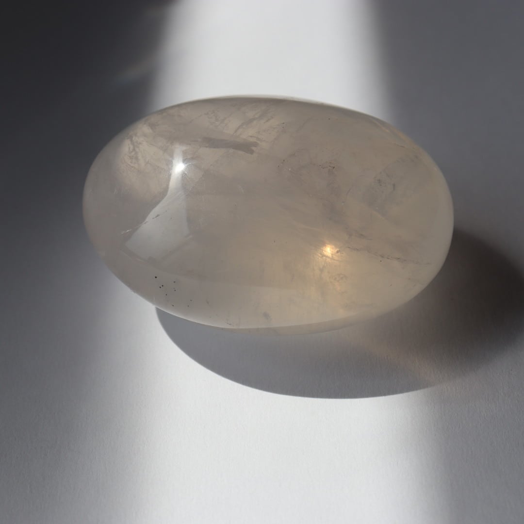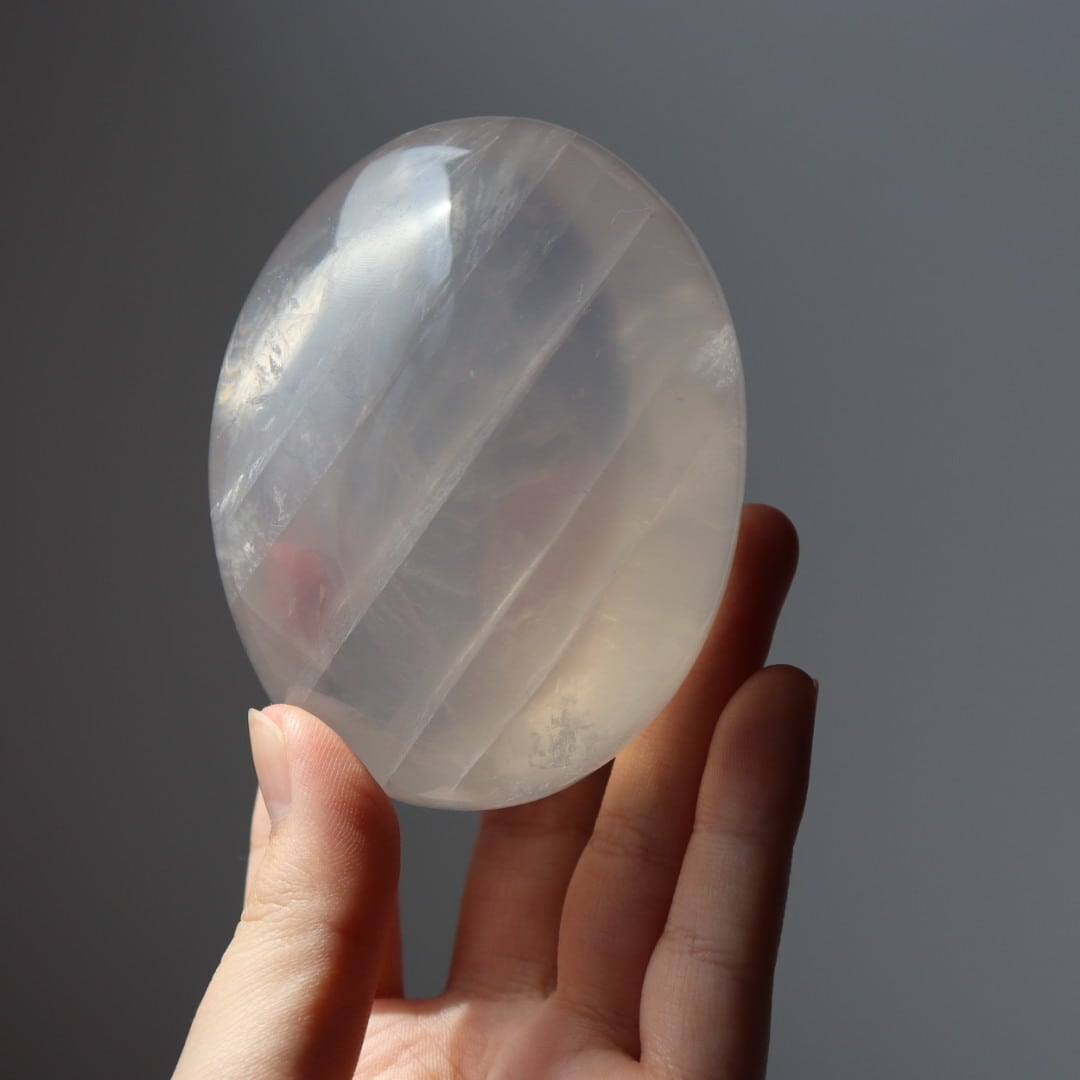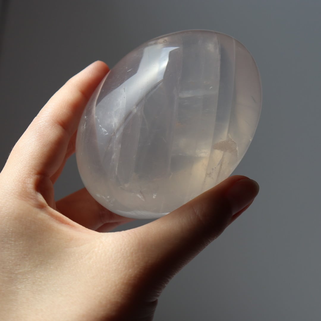 透き通る結晶が美しいアイスローズクォーツの握り石。