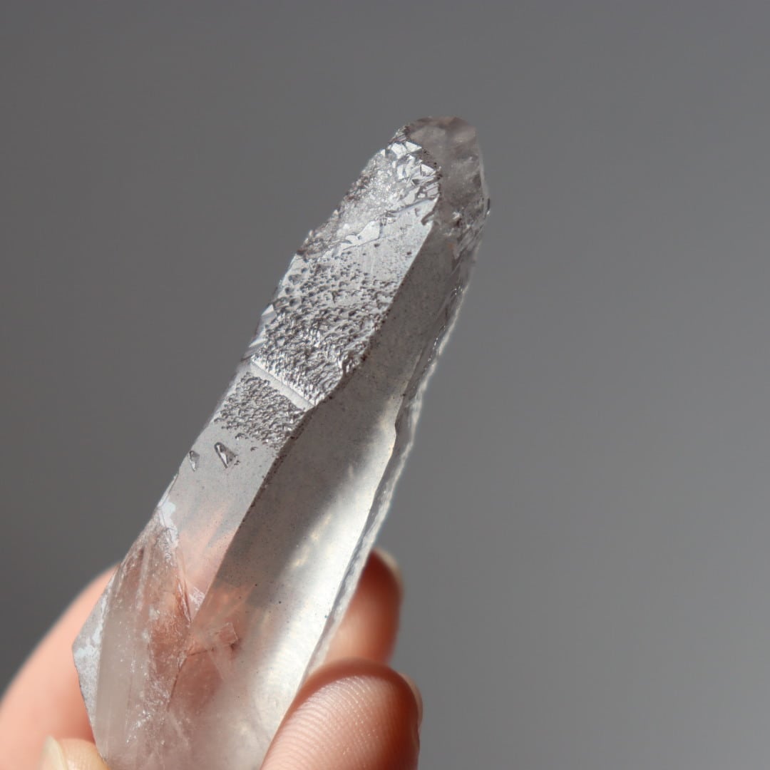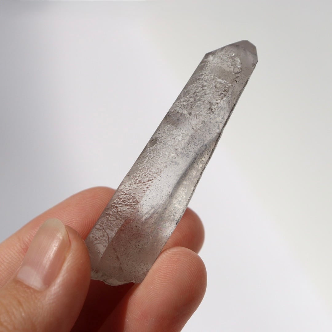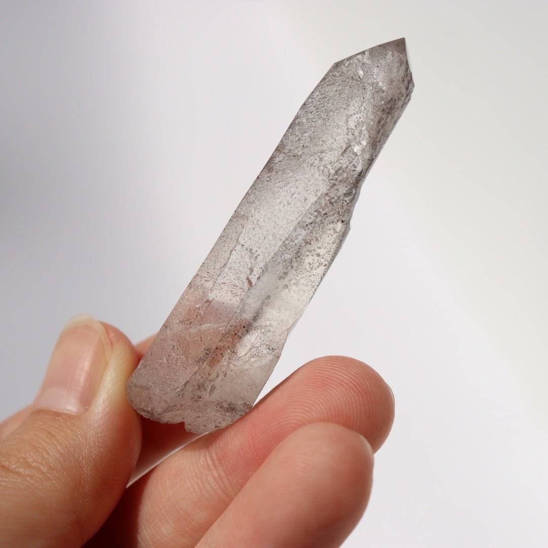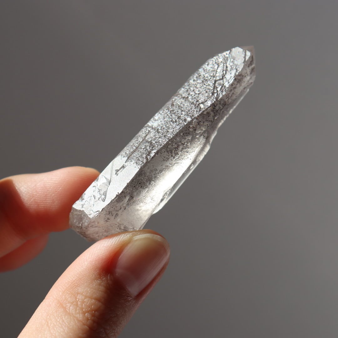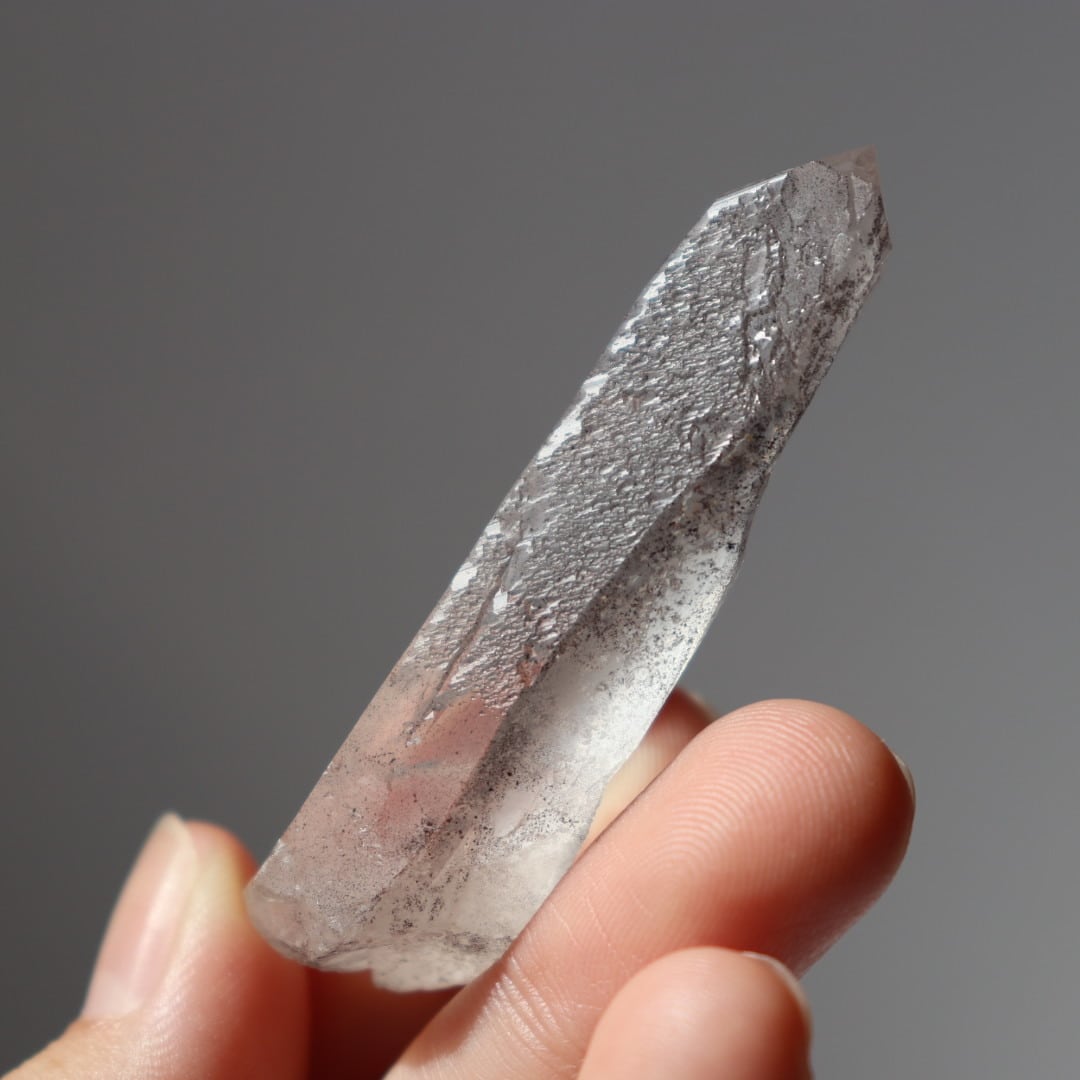 すっと伸びた美しい結晶に、星の名を宿す模様が浮かび上がる、スターブラリークォーツの原石ポイント。