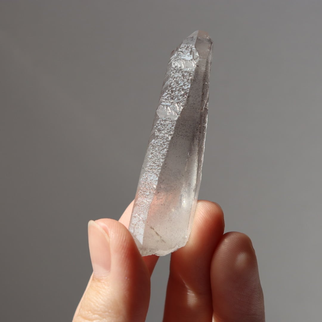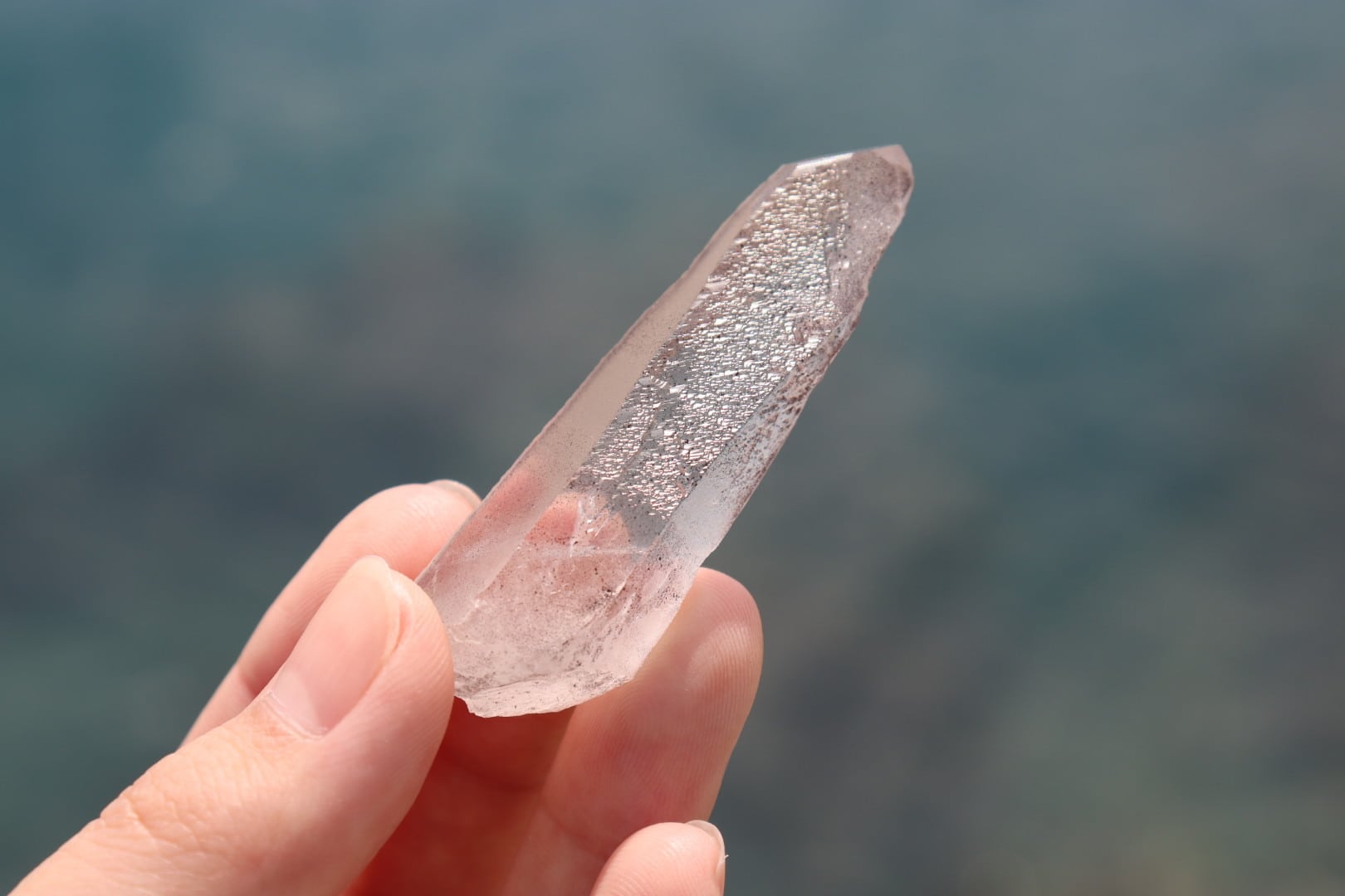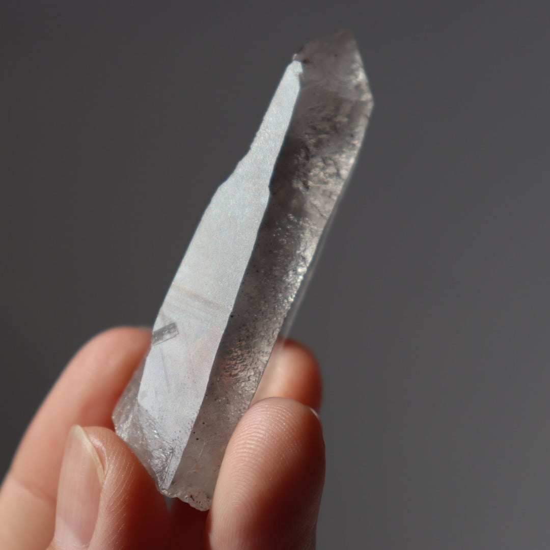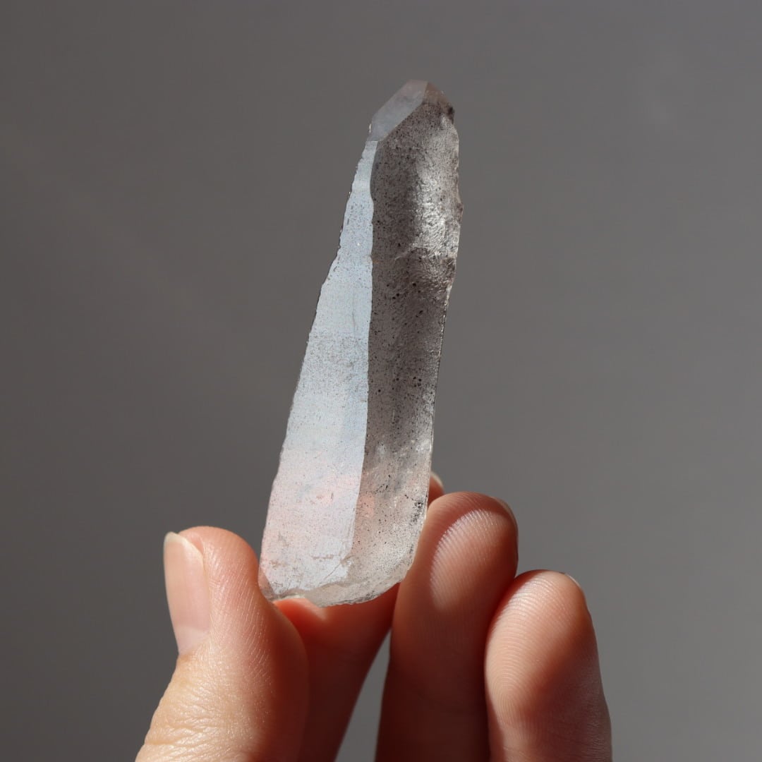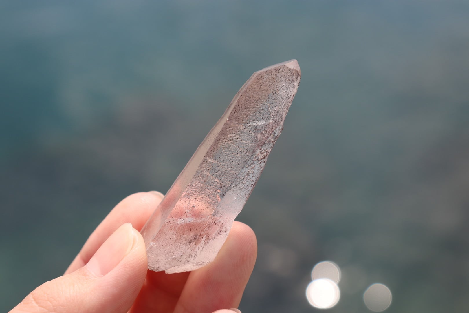 すっと伸びた美しい結晶に、星の名を宿す模様が浮かび上がる、スターブラリークォーツの原石ポイント。