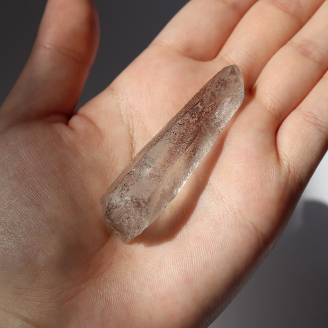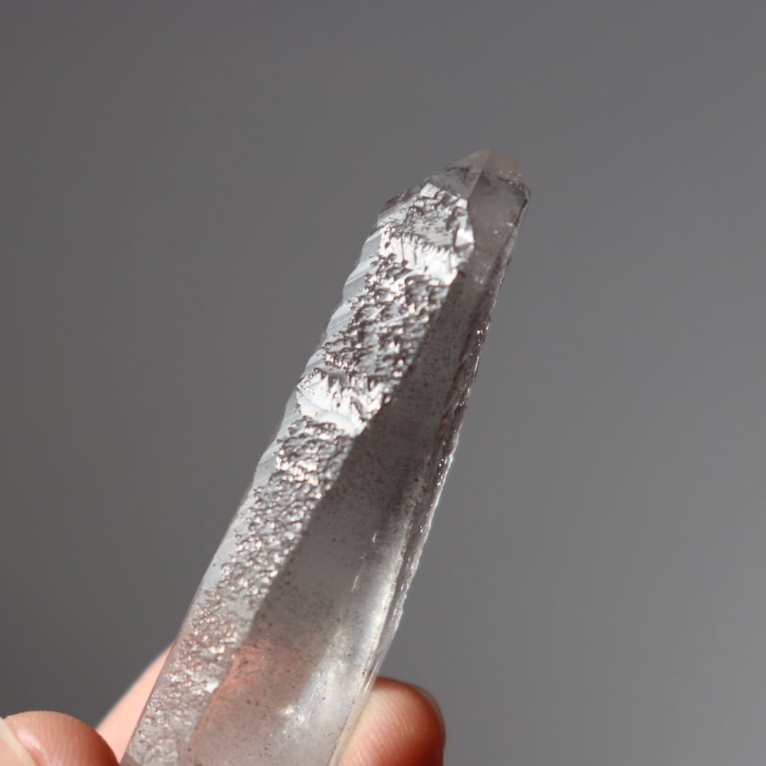 こちらは、圧倒的な透明感とほんのりブラウンの色味が美しいスターブラリークォーツのポイント。ファセットが磨かれたセミポリッシュ仕上げです。