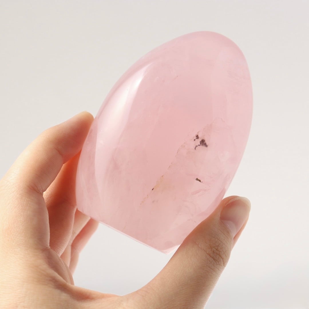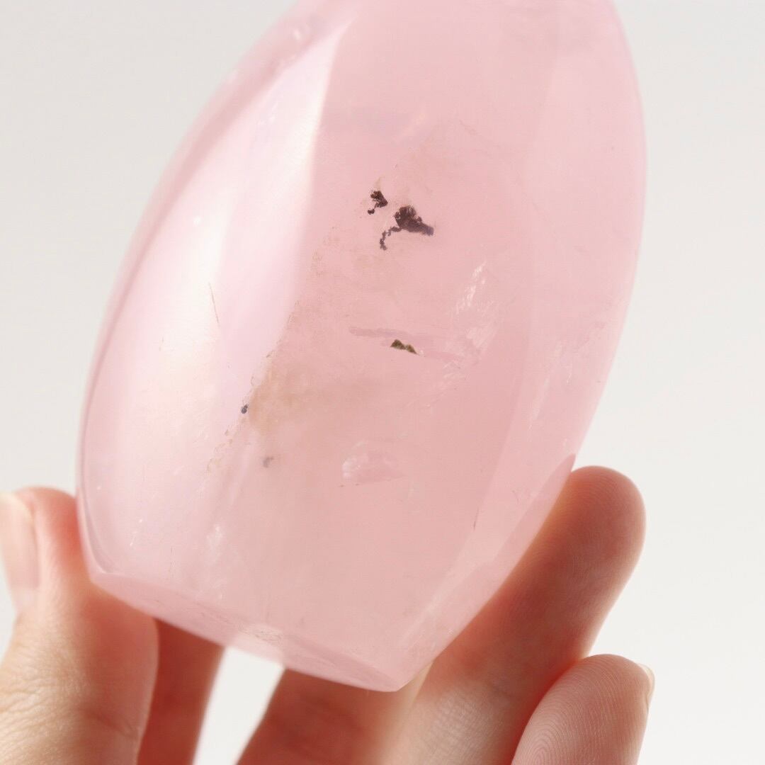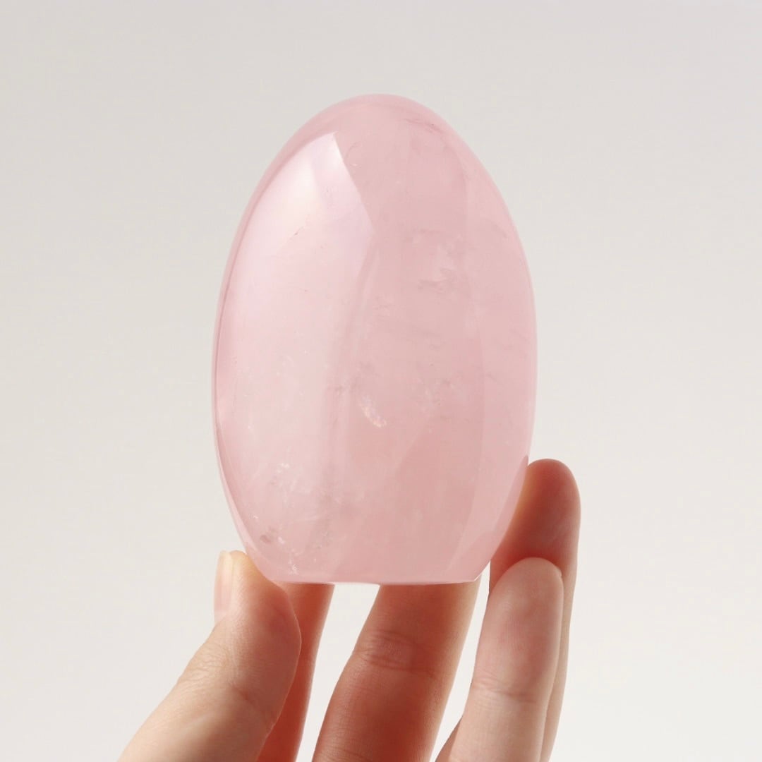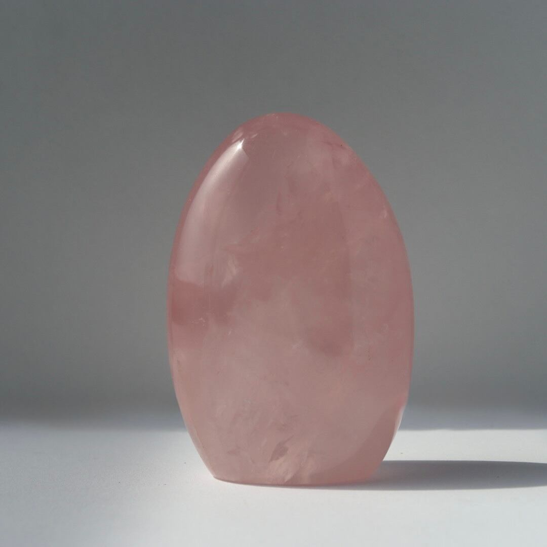 明るく濃い発色のベビーピンクが印象的な、ローズクォーツのフリーフォーム。