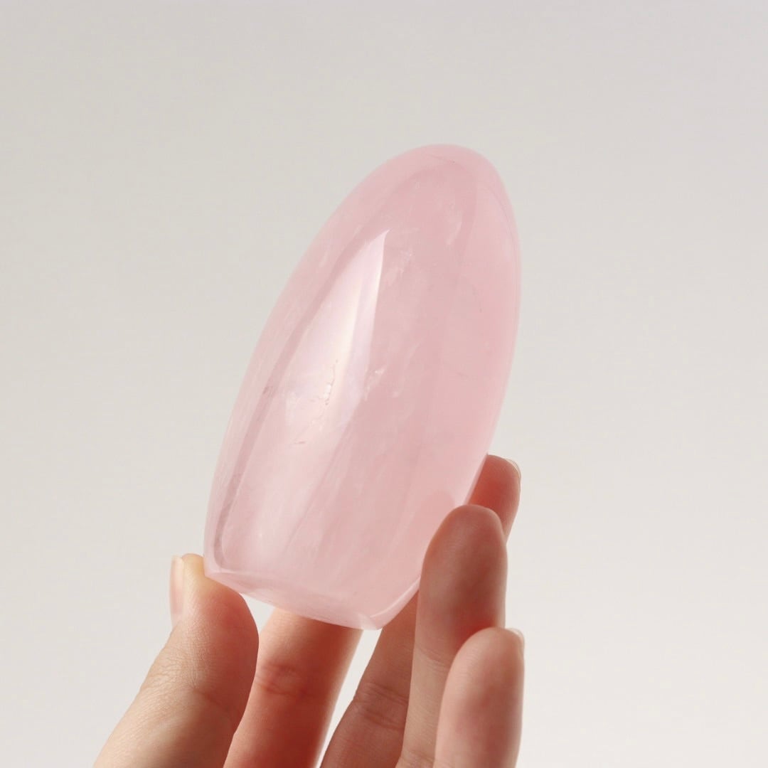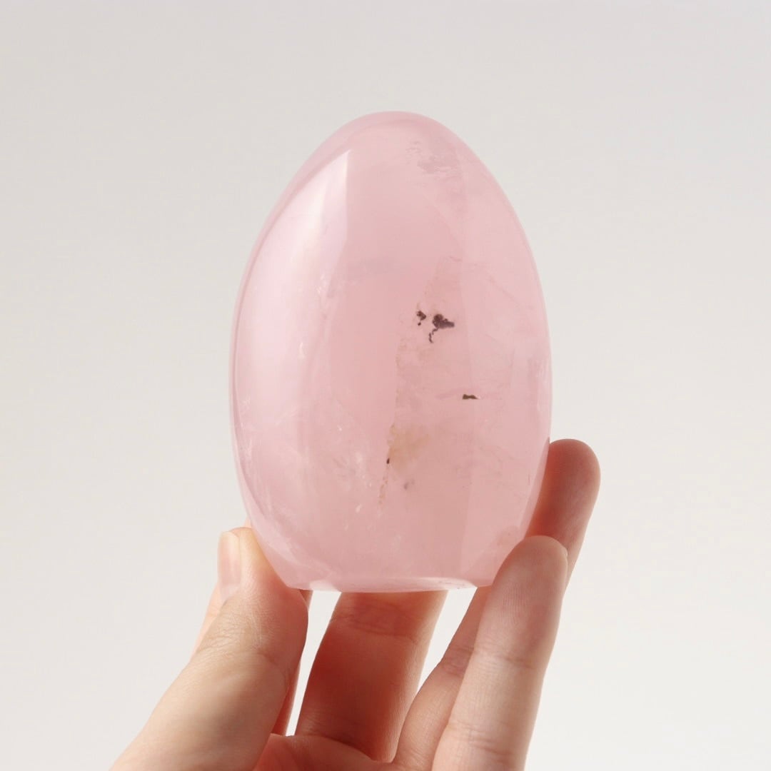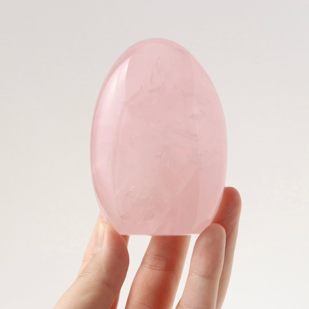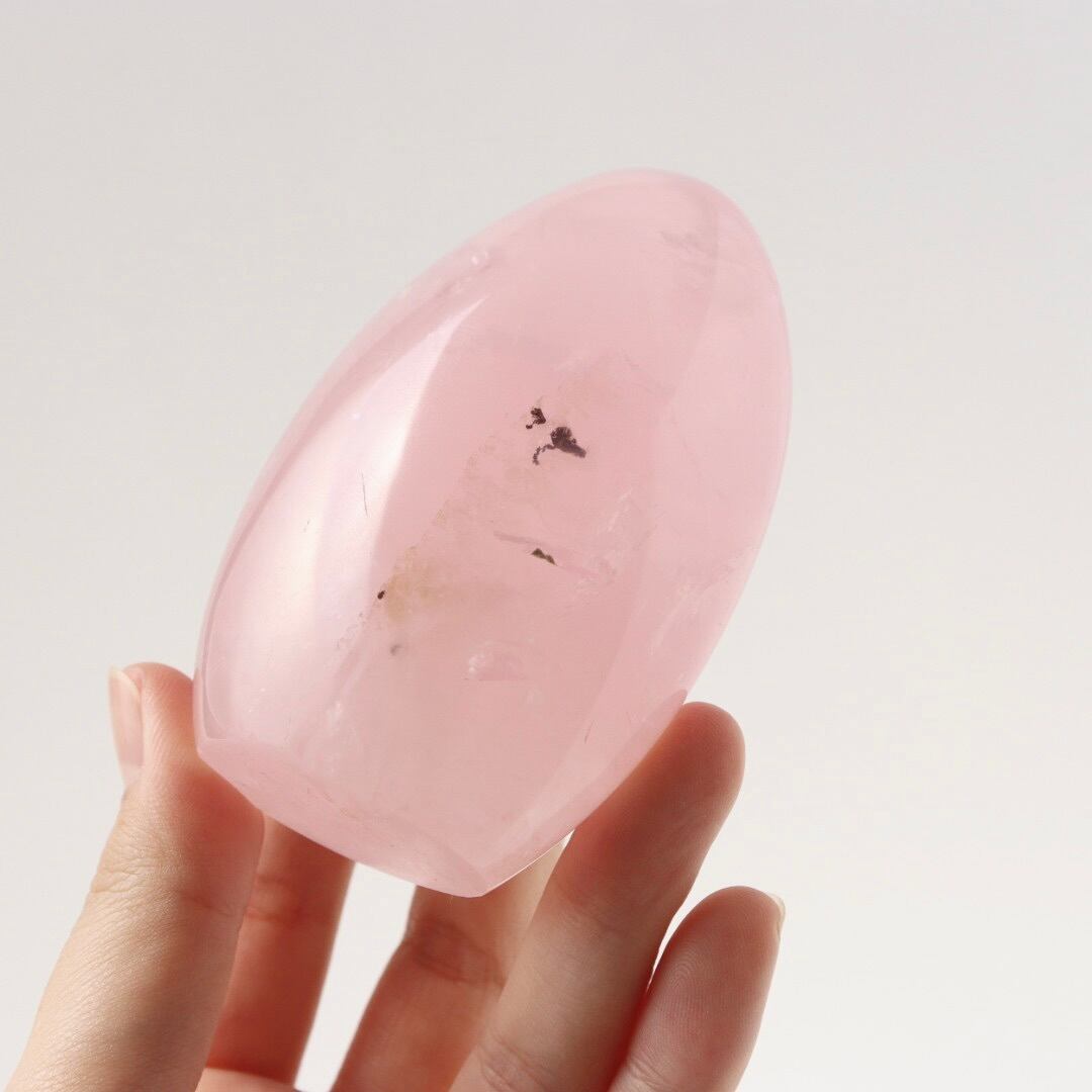 明るく濃い発色のベビーピンクが印象的な、ローズクォーツのフリーフォーム。