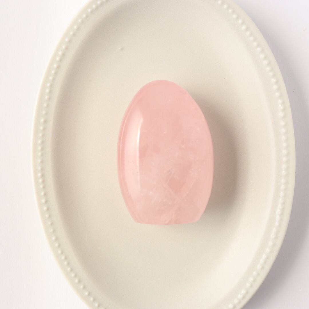 ローズクォーツは、和名を紅水晶といい、クォーツ(石英)の仲間に分類される天然石です。マンガンや鉄など他の鉱物の影響によって、やわらかなピンク色に発色するとされています。古くはビーズやカメオ、護符などに加工され、装飾品や祈りの道具として用いられていたそうです。愛情や優しさを象徴する石として広く知られており、透明度が高く発色の美しいものは宝石として扱われ、現在でも世界中で人気の高い天然石の一つです。